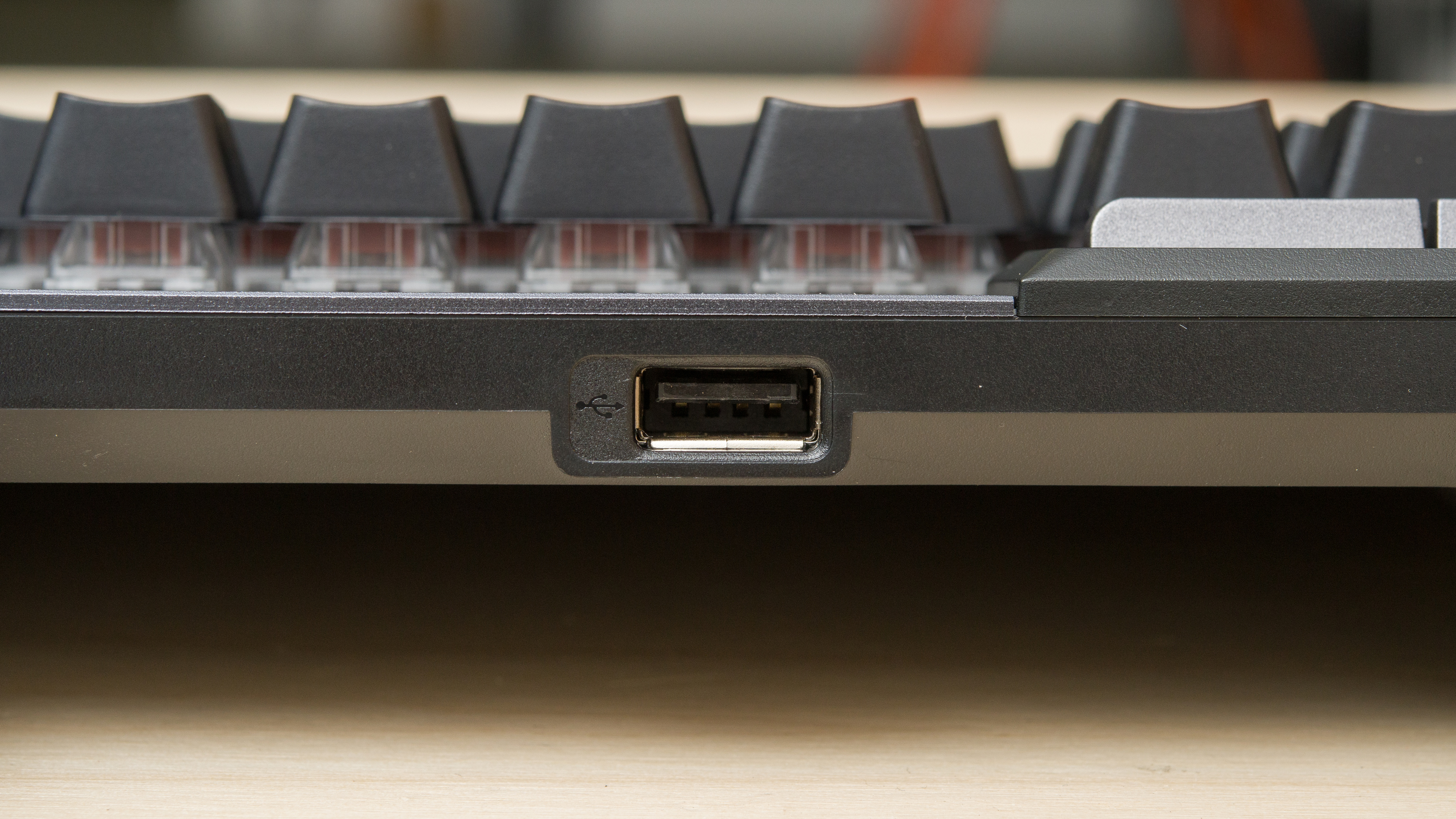 The ASUS ROG Strix Flare II Animate comes with a very thick cable with two USB-A plugs on the end. Both ends need to be connected to use the USB passthrough feature. The cable will require cable management as it's stiff and retains kinks easily.