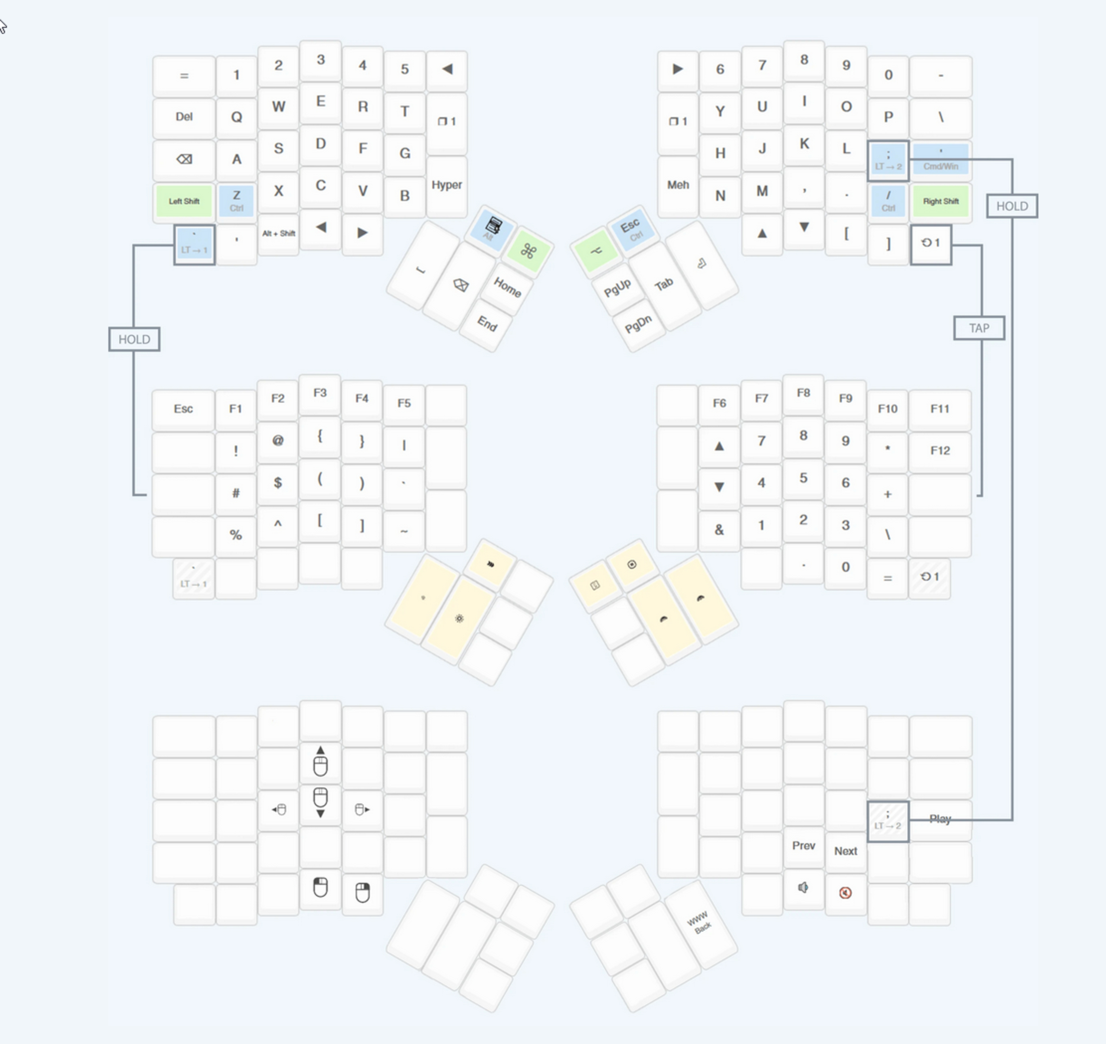 The ErgoDox EZ configurator isn't your typical software app for customization. You need to use an online configurator to reprogram keys, then export a .hex file through the 'Wally EZ Flash Tool' and then use a paperclip to click the reset button of the keyboard to install the new programmed layouts. Technically, only one profile can be set on the keyboard's onboard memory, but this profile can have up to 32 different layers of different keybinds. You can also set it to perform different commands depending on whether you use a single press or hold down a key. The keyboard also has Hyper and Meh keys, which are just additional modifier functions to give you even more programmability.