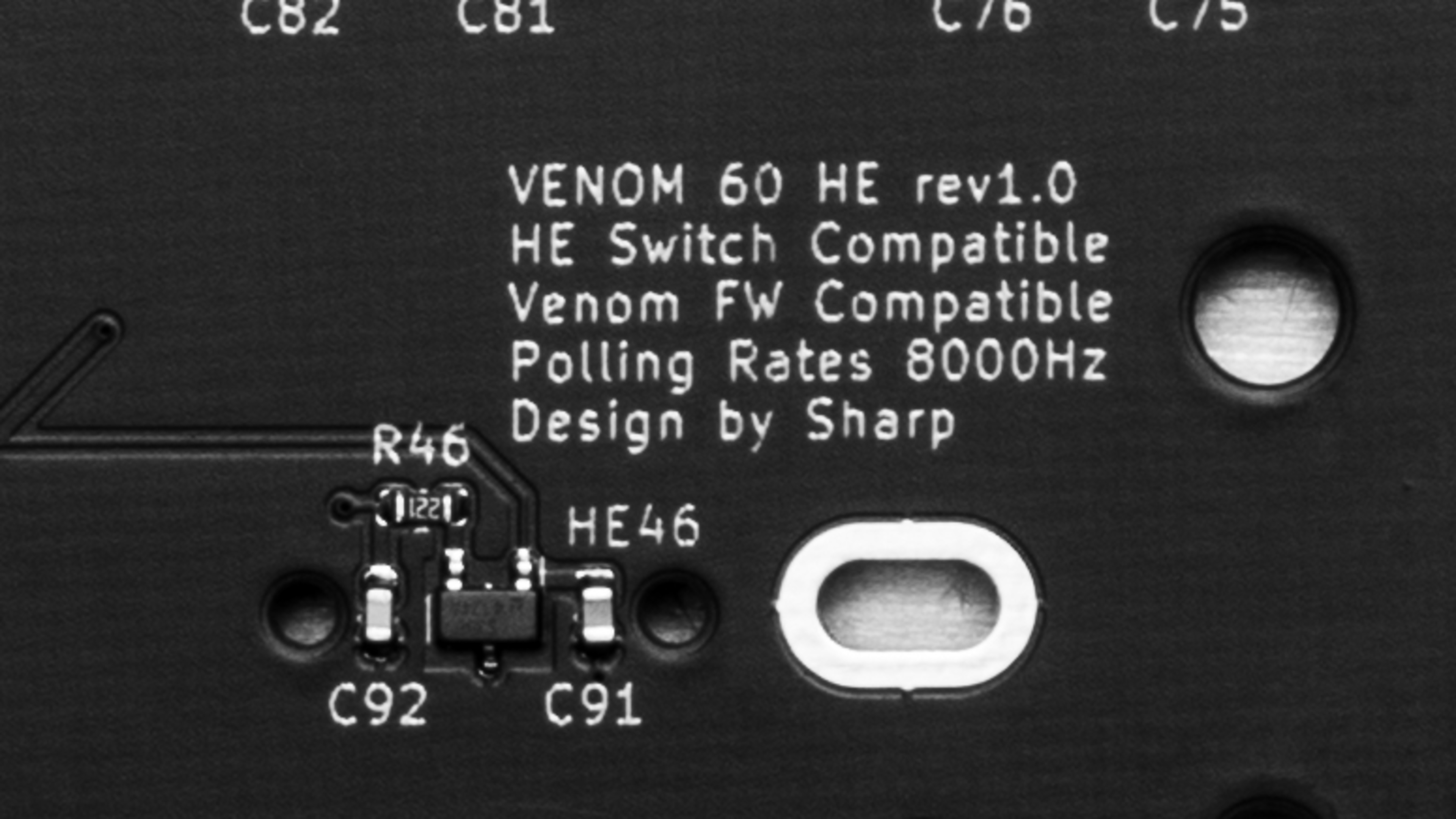 The Geonworks Venom 60 HE is a custom PCB that's available in two different layouts. While not required for building your keyboard, we've also included a list of compatible plates and switches that Geonworks sells. See an image of the label on the PCB we bought.