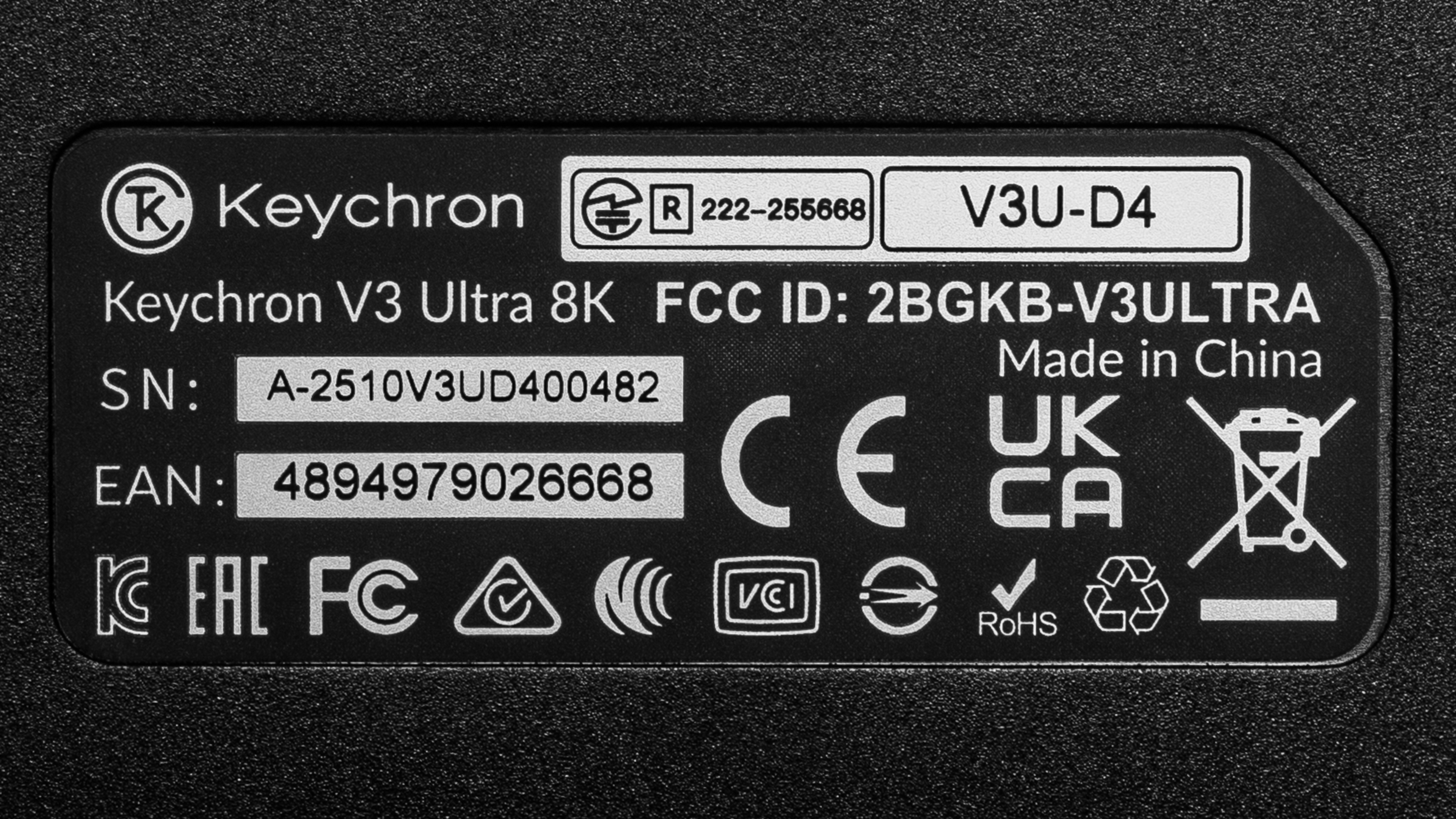 The Keychron V Ultra 8K series keyboards are available fully assembled with Keychron Silk POM switches. We bought and tested the Keychron V3 Ultra 8K with Keychron Silk POM Banana switches. Here's the label on the keyboard we bought.