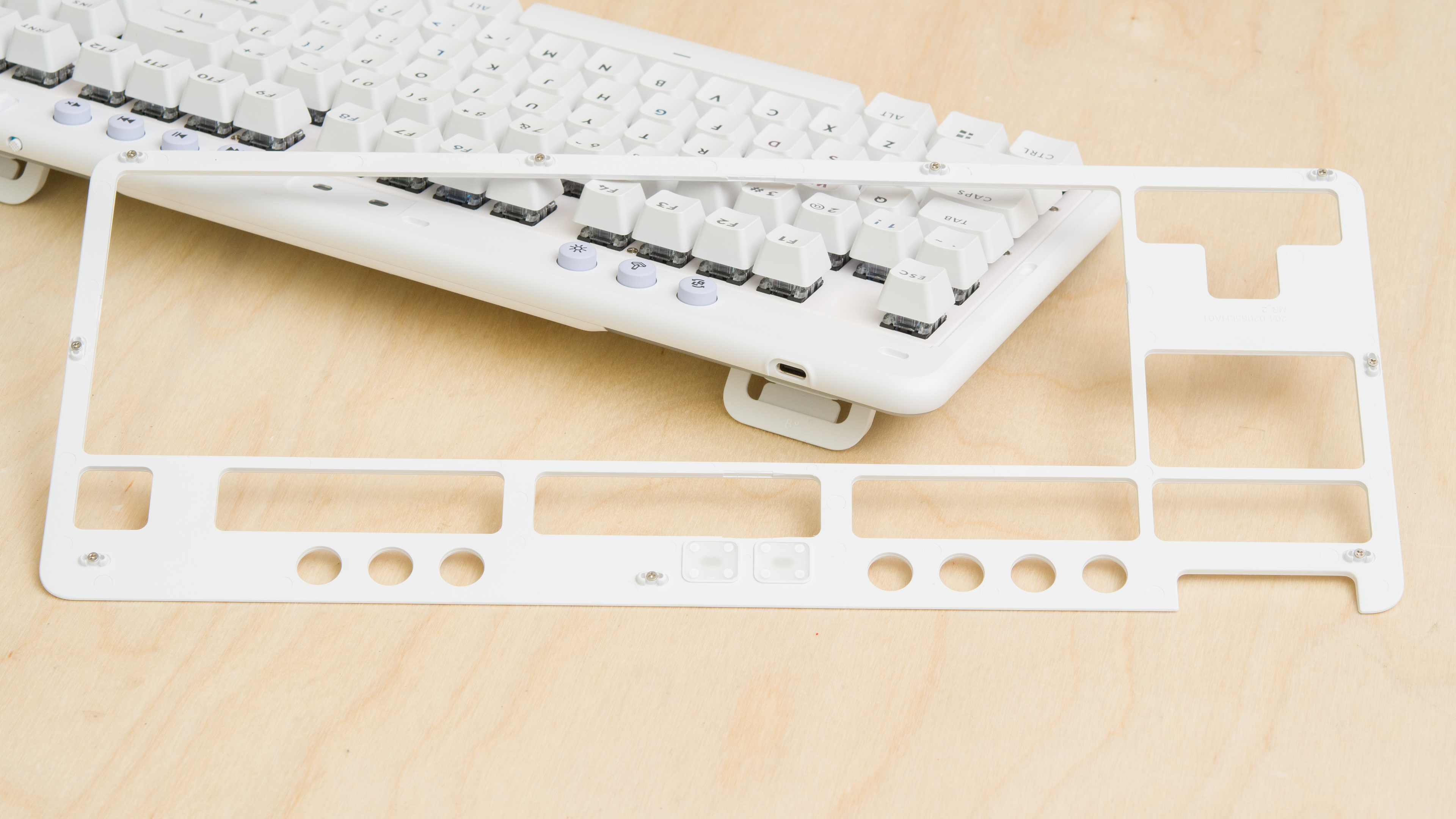 This keyboard also has a plastic modular plate that covers the top plate. Logitech offers this top plate in three different colors for some personalization. It attaches using a series of magnets, so it's easy to remove and replace, but it does feel a bit flimsy.