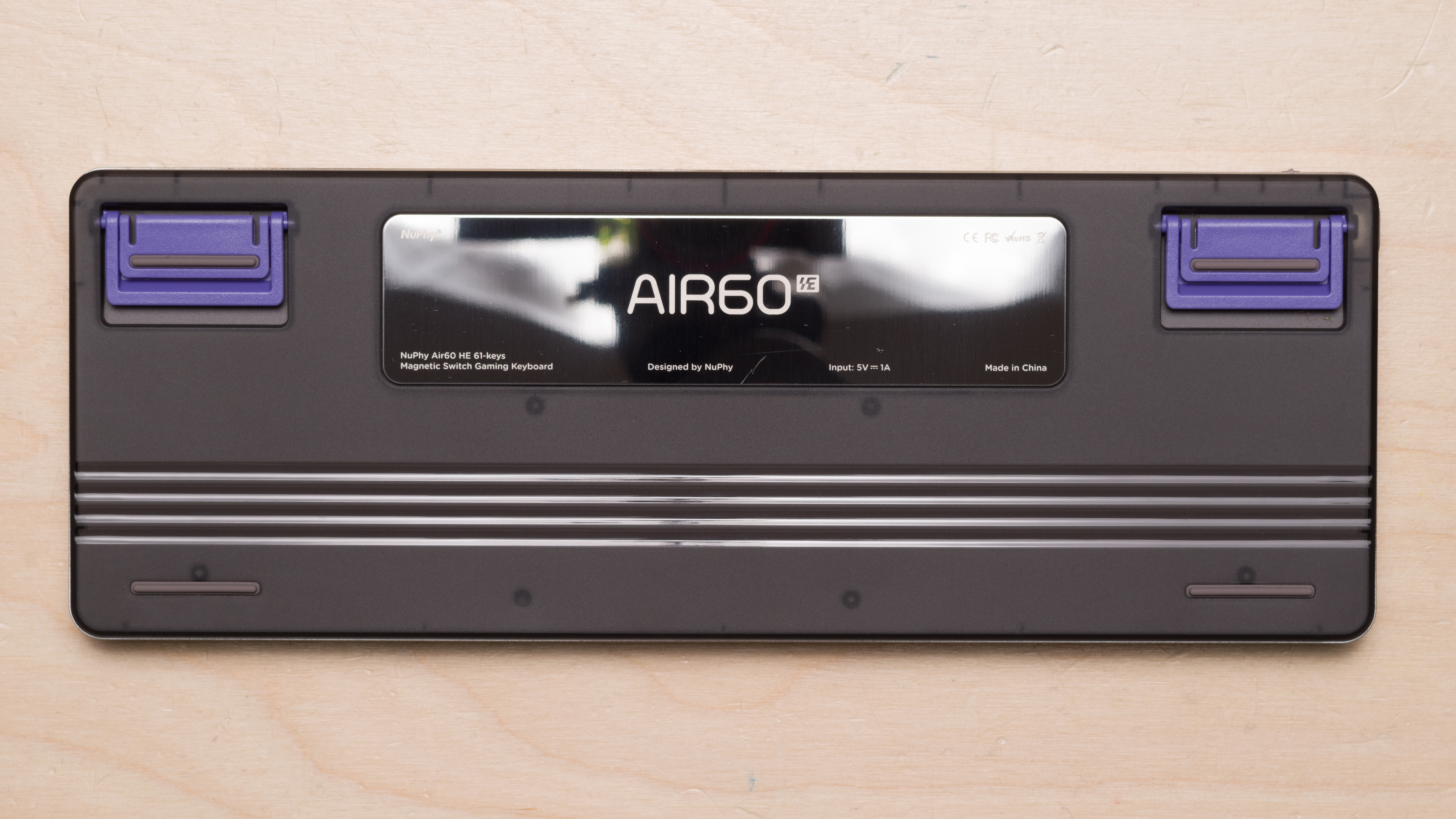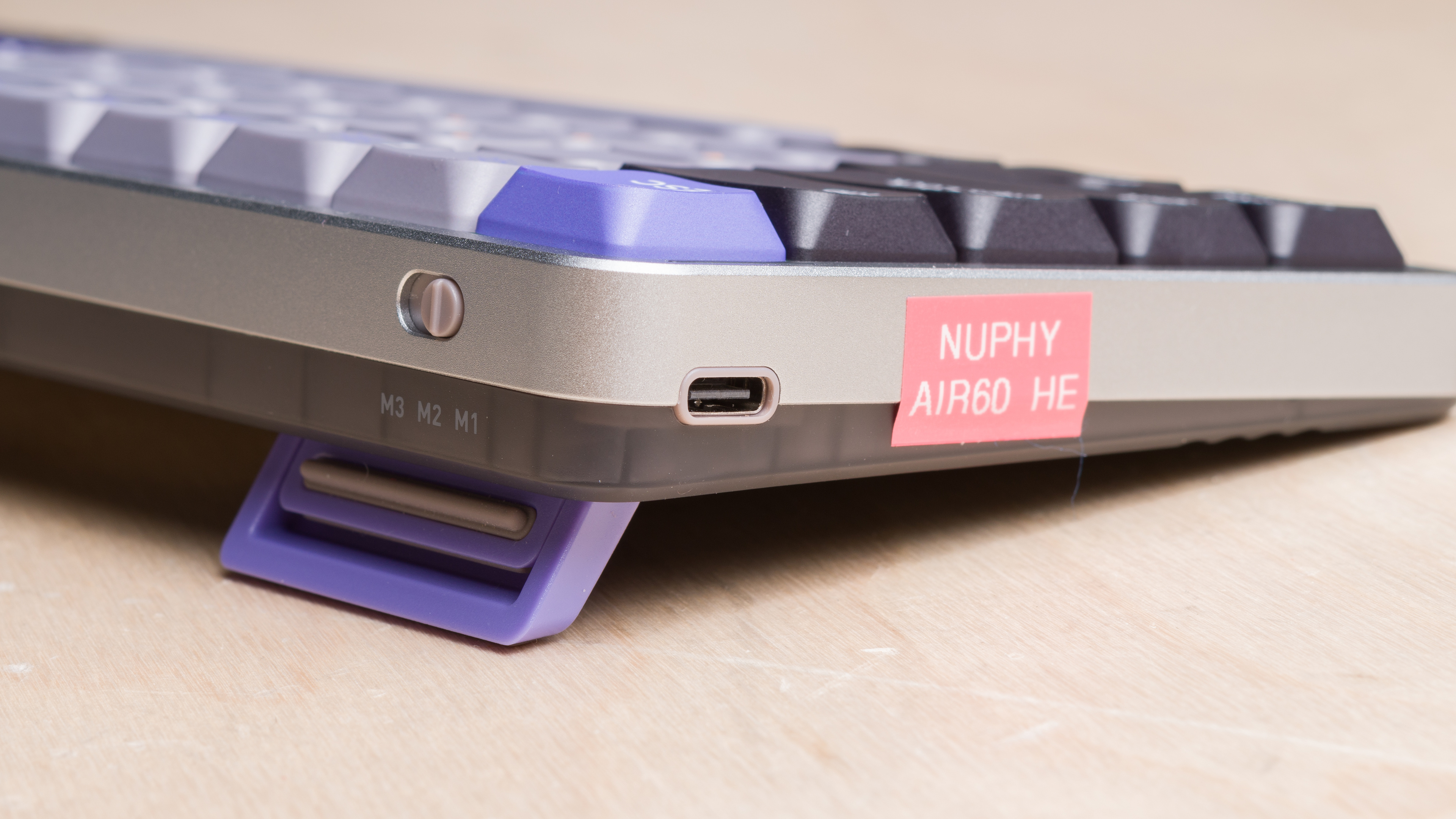 The NuPhy Air60 HE has a low-profile design with sets of flip-out feet on the underside that offer two additional incline angles.