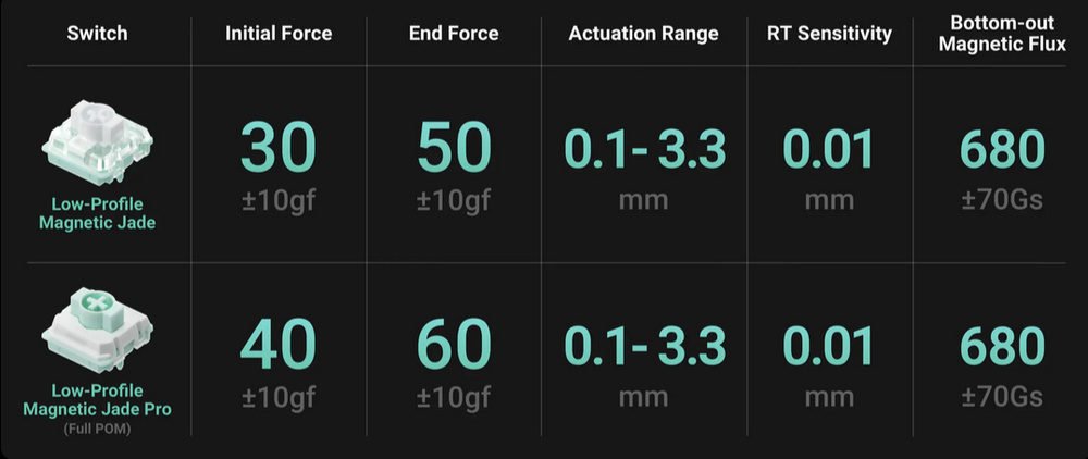 We bought this keyboard with Gateron Low-Profile Magnetic Jade Pro switches.