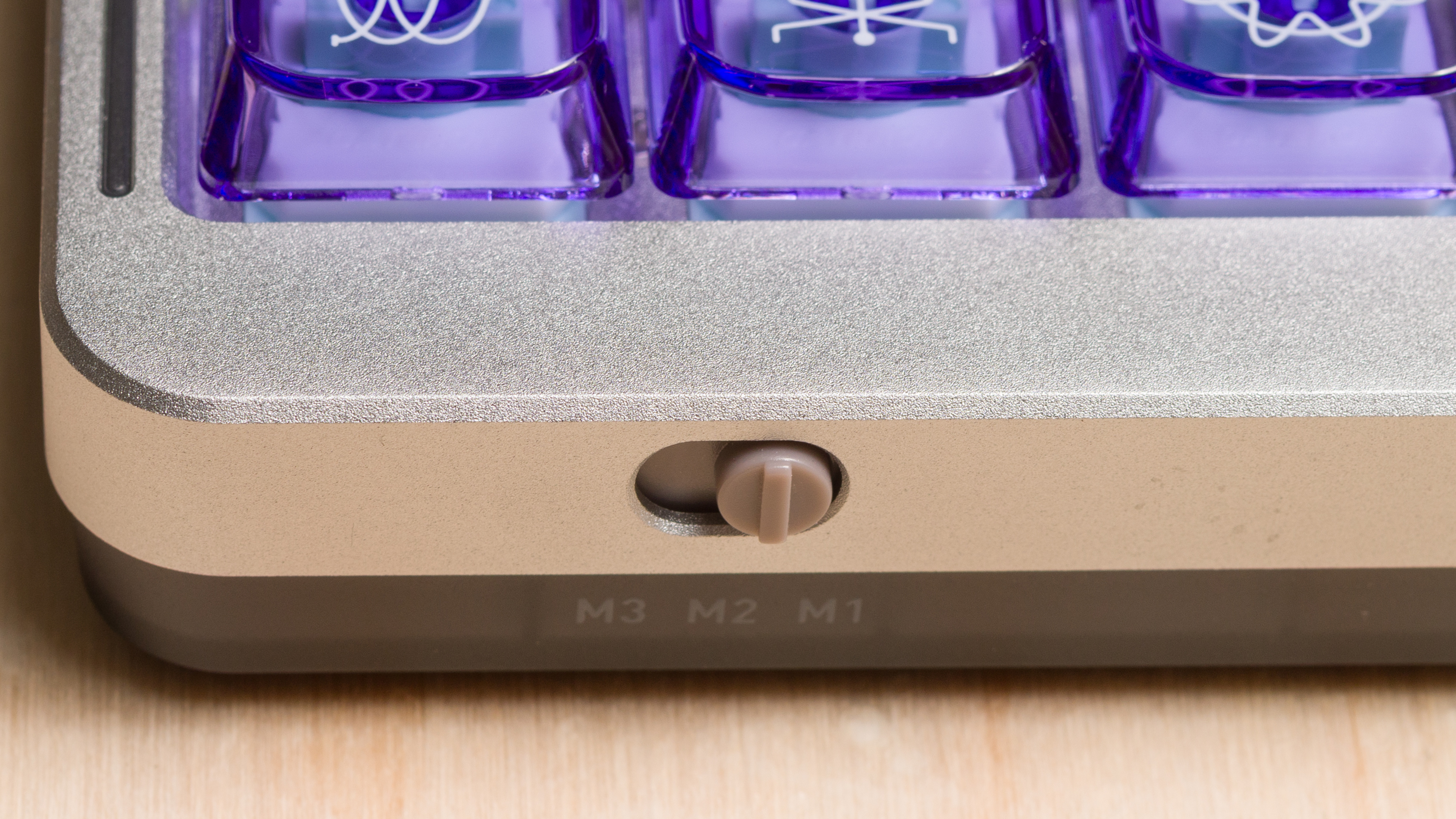 There's a compatibility switch to toggle between Windows (M2) and Mac (M3) keyboard layouts on the back edge.