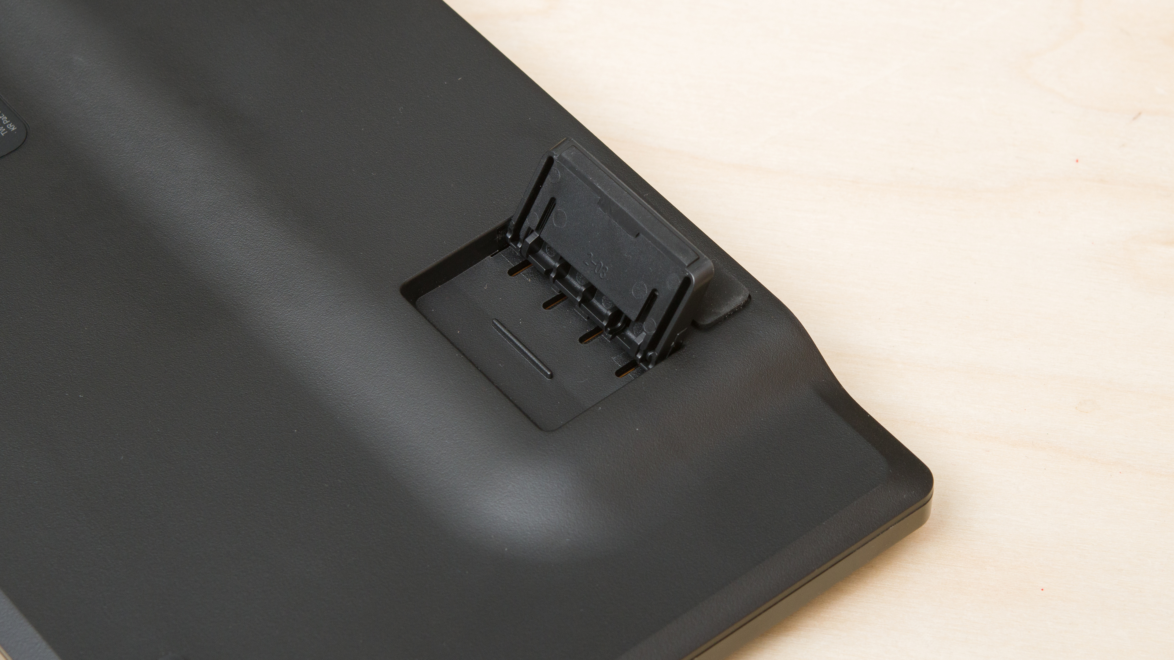 The Razer DeathStalker V2 Pro is fairly comfortable to use, even without a wrist rest, due to its low-profile design. It also has plastic feet on the underside which flip out to provide two incline settings.