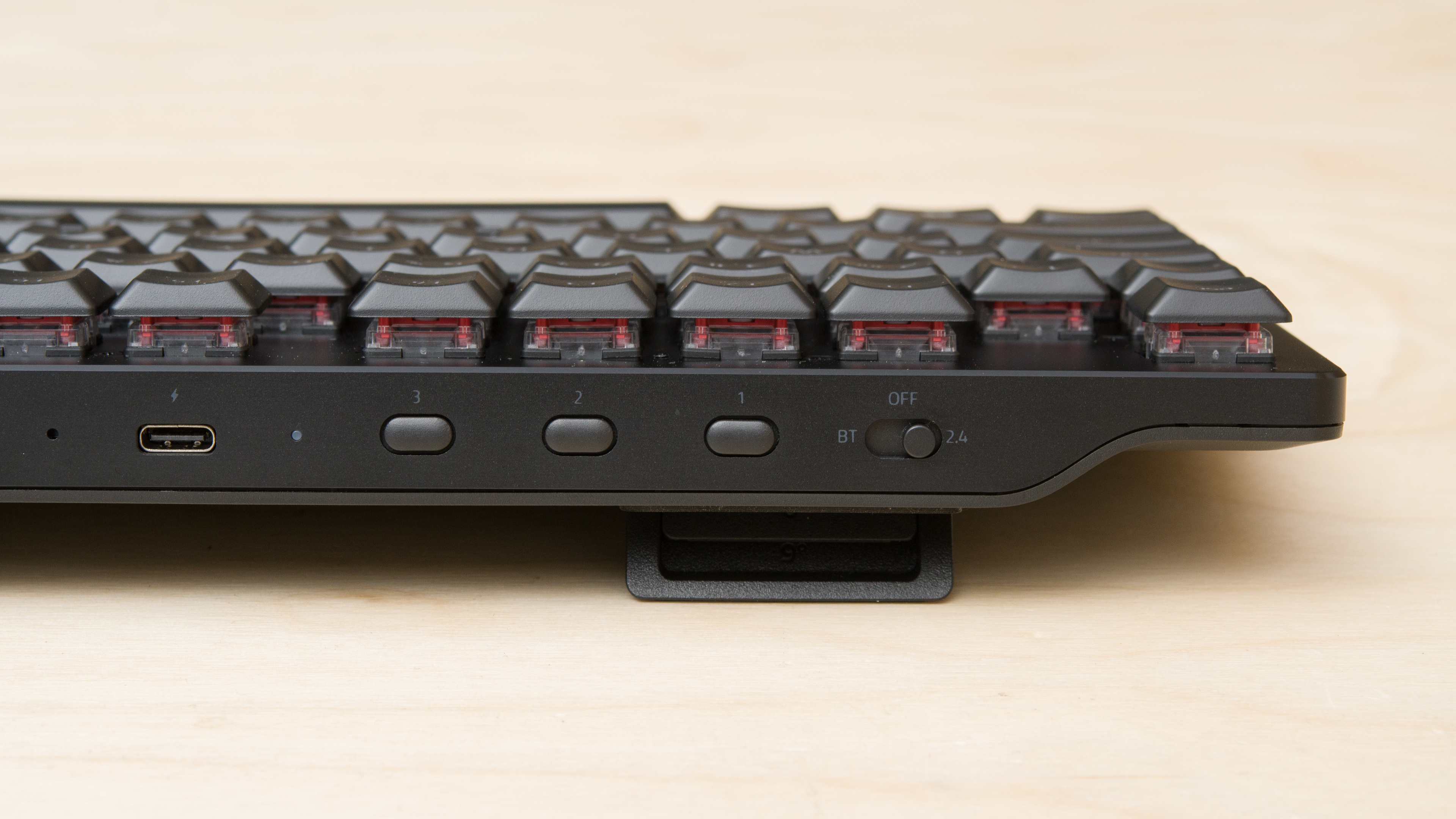 This keyboard connects wirelessly using Razer's HyperSpeed 2.4 GHz USB receiver or Bluetooth. You can also pair up to three devices simultaneously via Bluetooth.