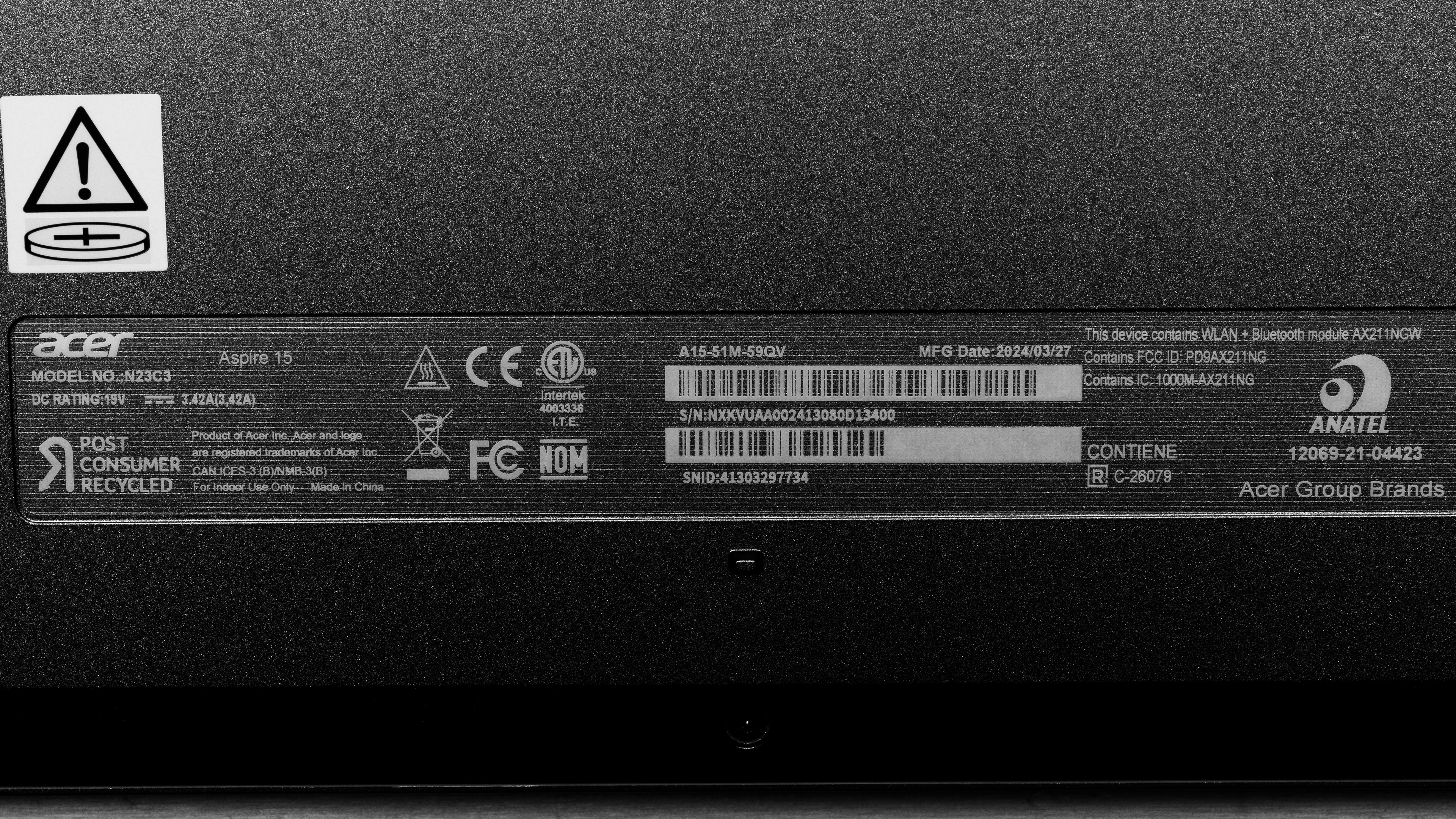 We tested the Acer Aspire 15 (model A15-51M-59QV) with an FHD IPS display, an Intel Core 5 120U CPU, 16GB of RAM, and 512GB of storage. The screen, CPU, memory, and storage are configurable; see the available options below. This review only applies to models with a model number starting with 'A15-51M.'