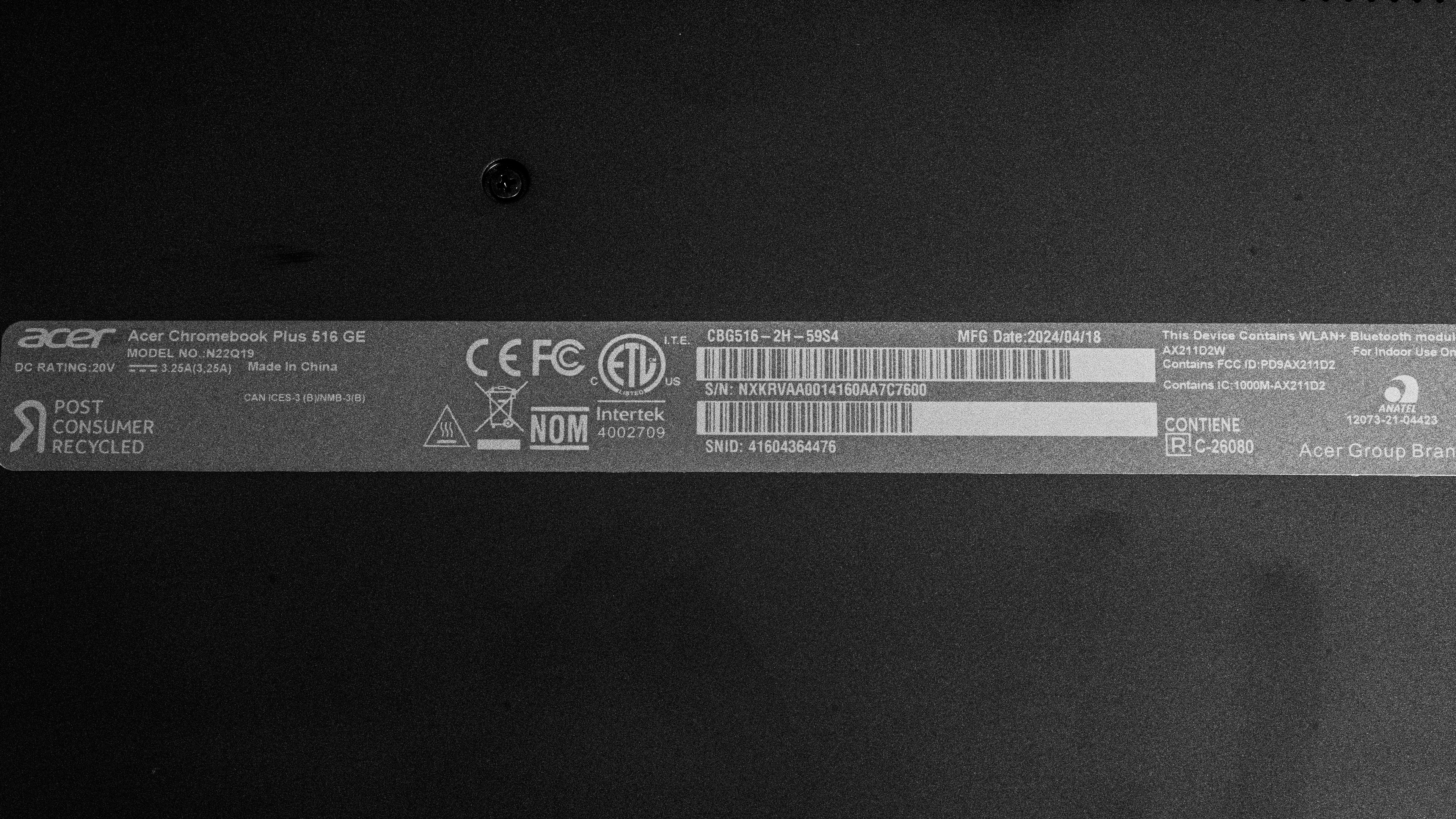 The Acer Chromebook Plus 516 GE (2024) is only available in Obsidian Black. Here's a photo of the bottom of the laptop.
