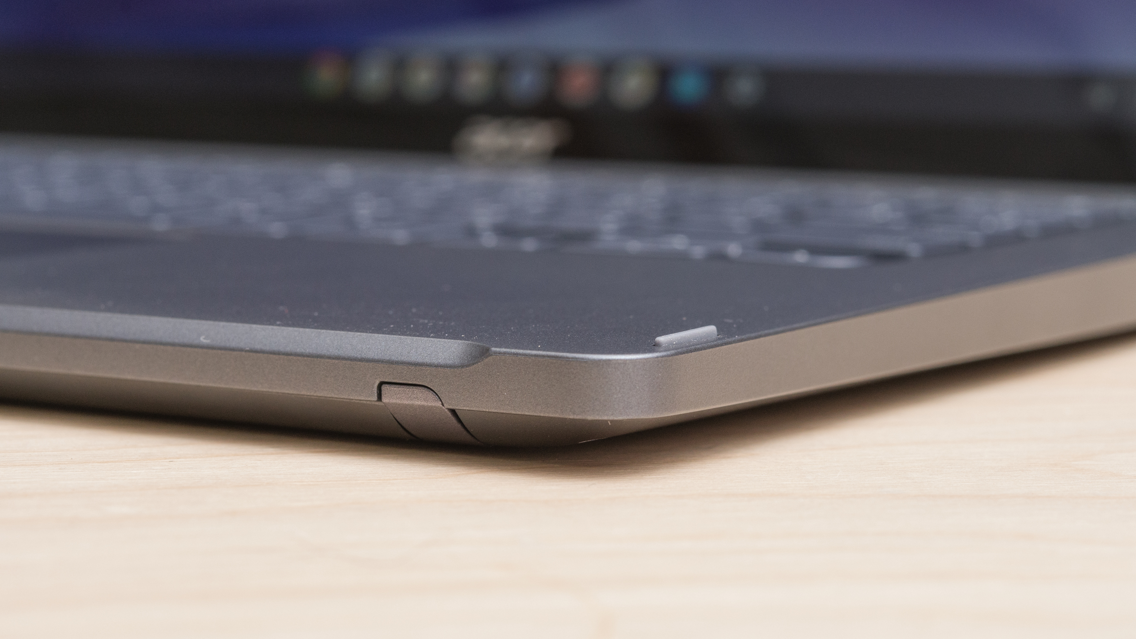The Acer Chromebook Spin 714 feels well-built. The construction is a mix of metal and plastic (metal on top, plastic on the bottom). It feels very sturdy; there's a little bit of flex in the display but none on the keyboard deck. The whole device feels hefty, with evenly distributed weight. The finish doesn't scratch or pick up fingerprints easily, and the feet are solid and adhere firmly to the bottom.