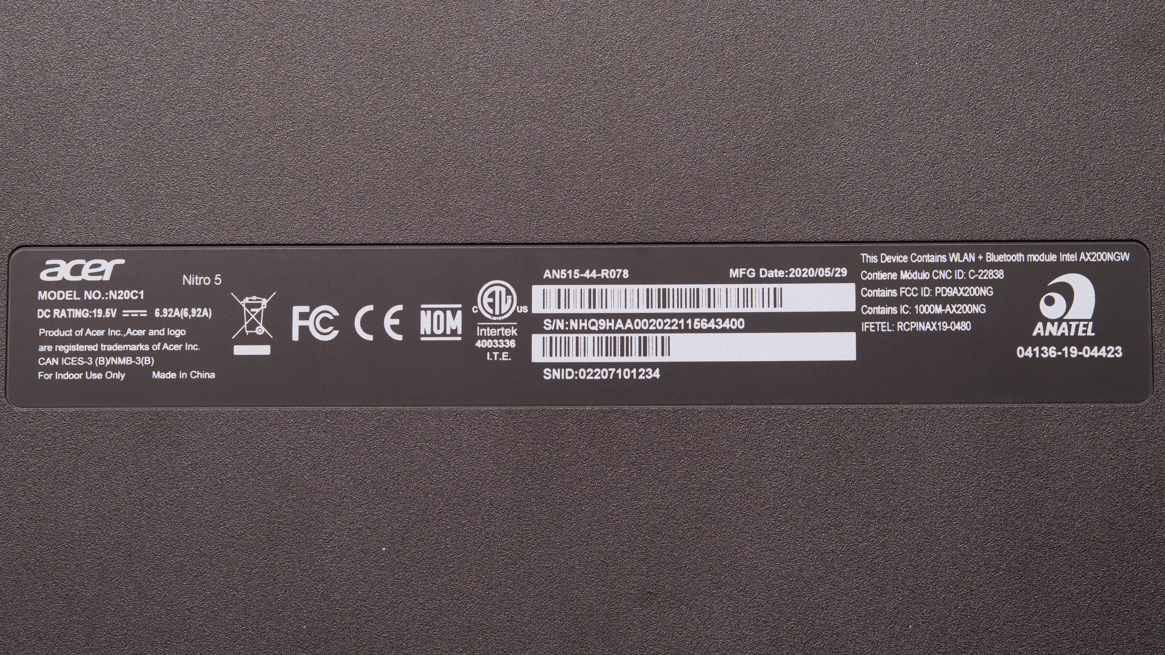 The Acer Nitro 5's wireless adapter is an Intel Wi-Fi 6 AX200. The Ethernet adapter is a Killer E2600 Gigabit Ethernet Controller.