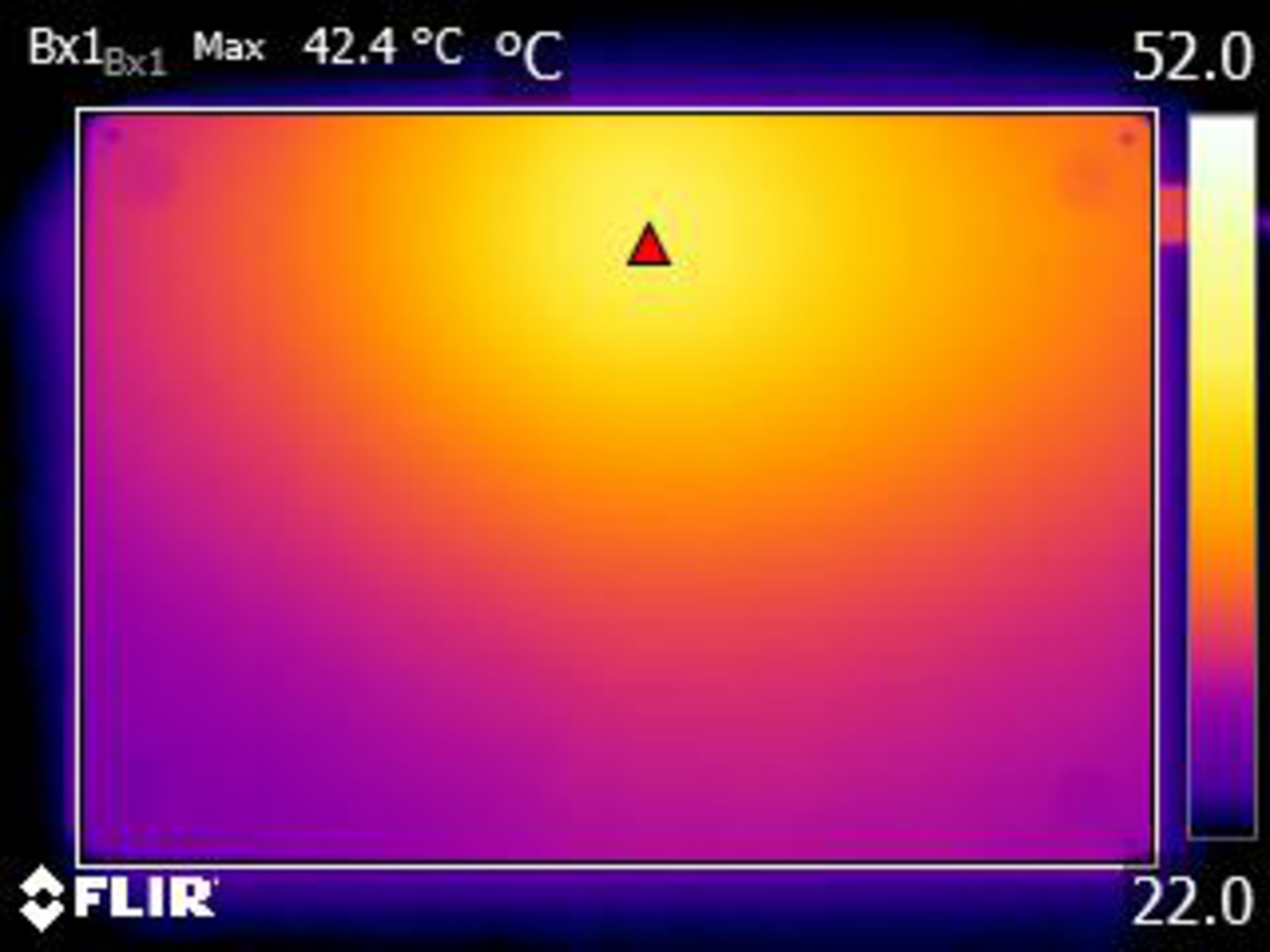 The laptop is silent while in use, thanks to its fanless design. However, the keyboard gets hot under load and can be uncomfortable to use. While the bottom of the laptop also gets warm, reaching 42.4 °C (108.3 °F), it's much better than the keyboard. You may want to keep the laptop on a table rather than your lap if you plan to use it for extended periods while under load.