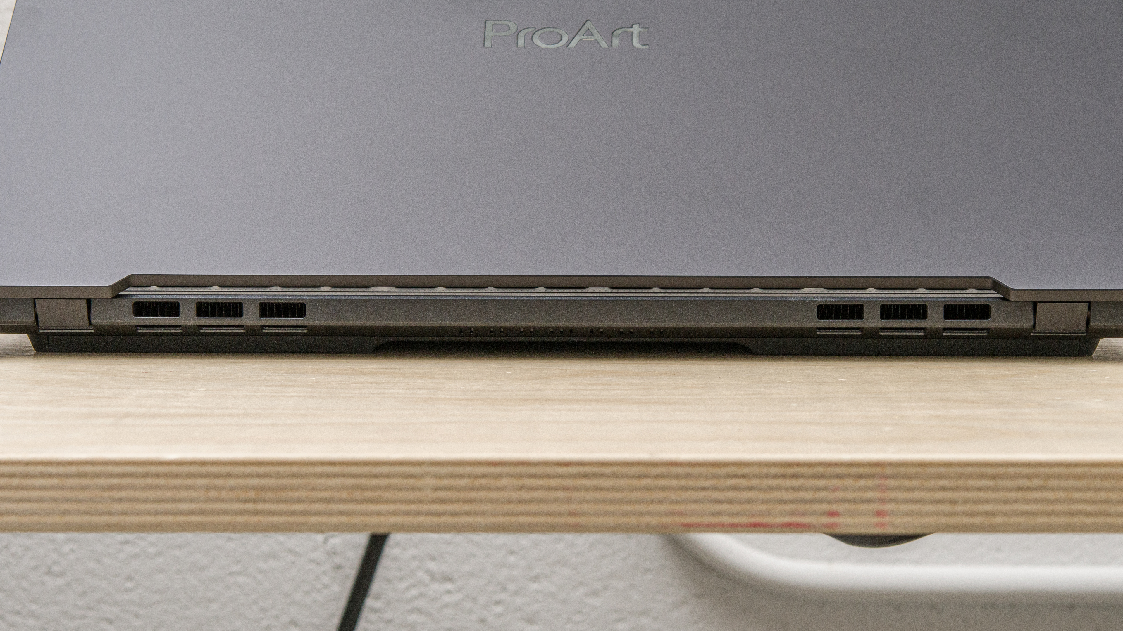 The ASUS ProArt Studiobook 16 OLED has good thermal and noise handling. When idle in the 'Standard' power mode, the fans are silent, and the keyboard is only mildly warm. Under load, the fans are audible but aren't annoying or distracting, and while the keyboard does get warmer, it still isn't uncomfortable. If you don't mind louder fans, you can change the power mode to 'Performance' or 'Full Speed'. 'Full Speed' increases fan noise to 60dBA.