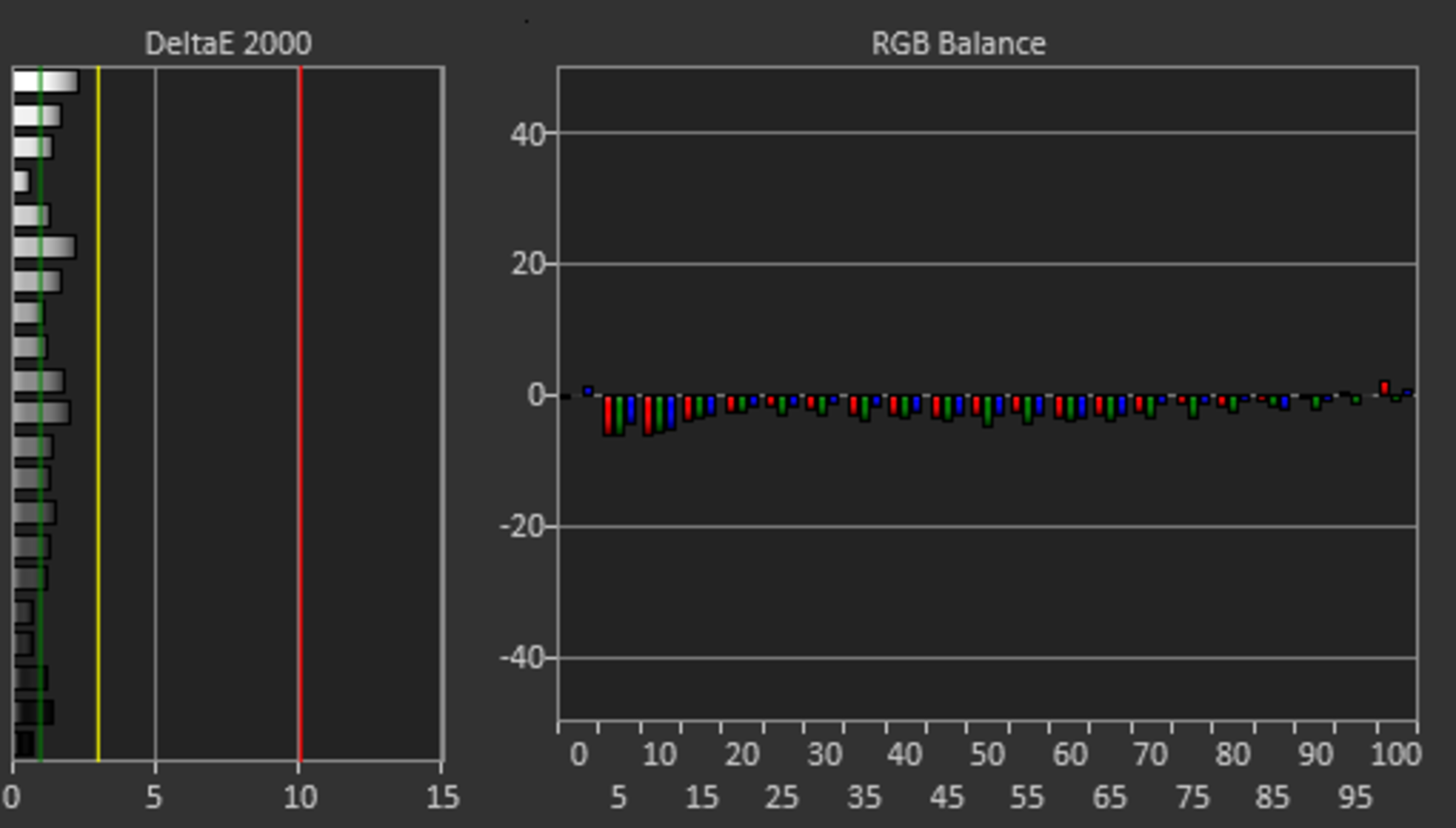 The display's accuracy is great out of the box. The white balance inaccuracies are hard to spot with the naked eye, as they're extremely minor. Color accuracy depends on the content; sRGB content looks oversaturated because the default color profile targets the DCI P3 color space, but P3 content looks much more accurate, with an average dE of 1.62. The gamma is too high throughout, making most scenes a tad too dark.