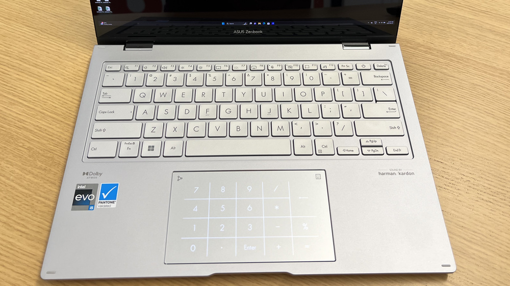 As you can see in the photo, two icons are at the top of the touchpad. The right one toggles the number keys, turning the touchpad into a virtual NumPad. You can adjust the Numpad's brightness by pressing on the left icon, and a longer press will launch the calculator app on Windows.