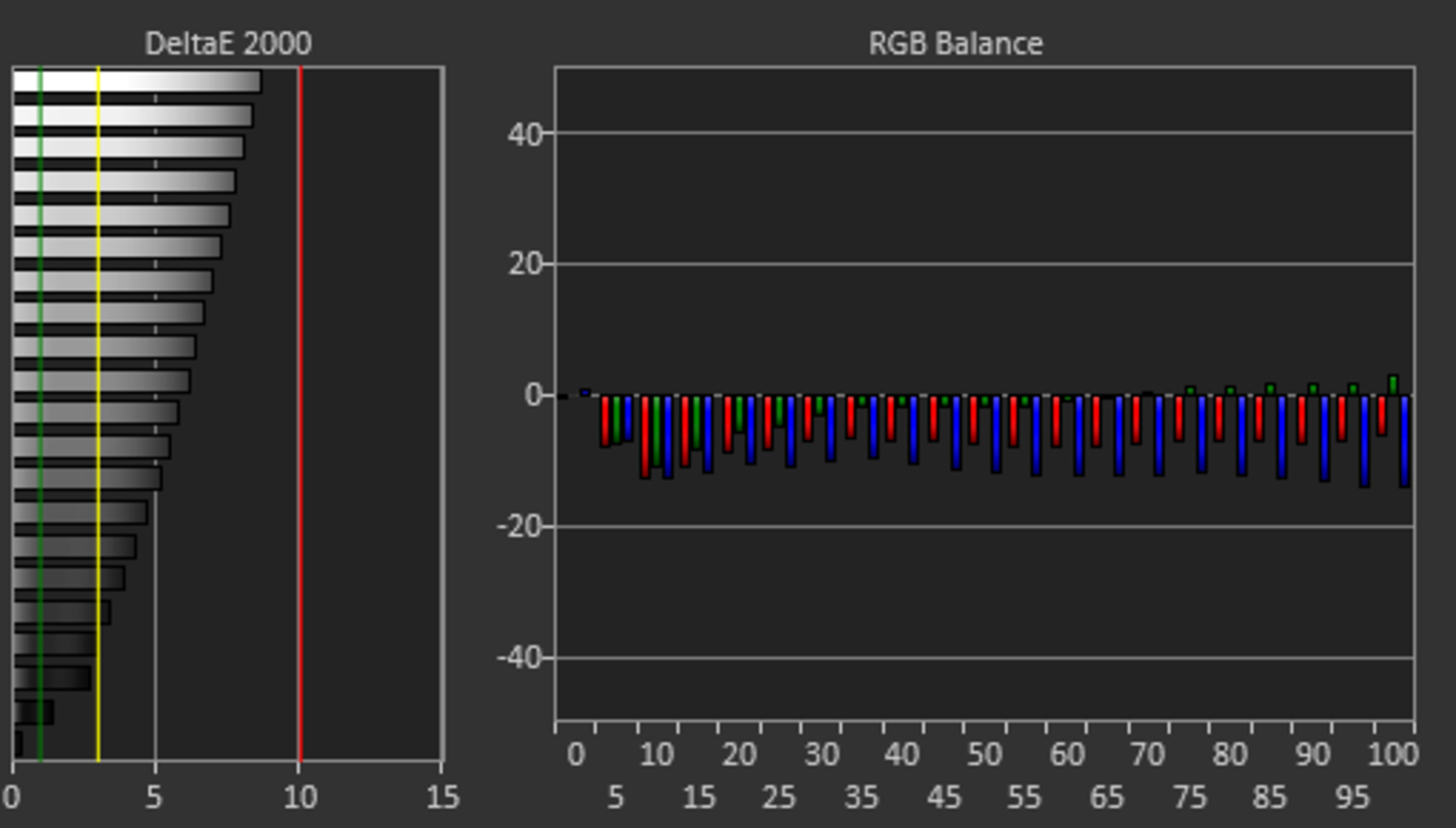 The 120Hz QHD+ display has poor accuracy out of the box. Its white balance is noticeably off, especially at higher brightness levels, and the gamma is too high throughout, making all scenes look too dark. Color accuracy is decent, though, as most inaccuracies are minor and hard to spot with the naked eye.