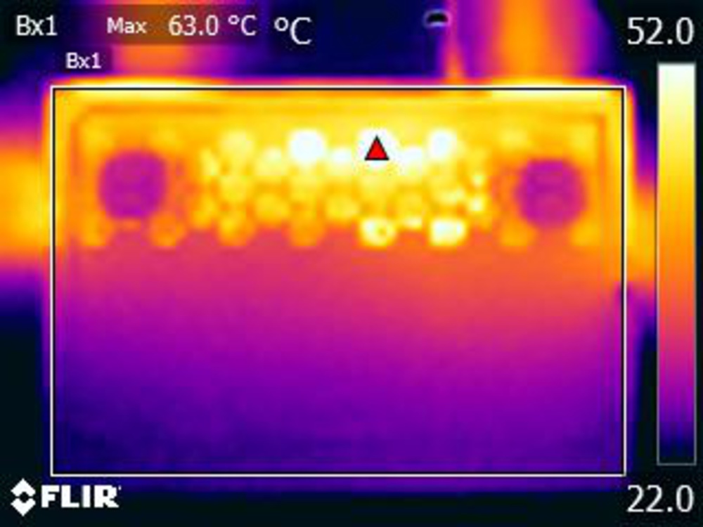 The Dell m16 R2 gets hot and loud under load. The hot spot is closer to the top of the keyboard deck, so it doesn't cause discomfort when typing. However, you might want to think twice before using the laptop on your lap because the bottom gets even hotter, reaching a temperature of 63 °C (145 °F). The posted fan noise level is a measurement taken in the Balanced profile. Switching to the Overdrive mode increases it to 56.5 dBA.