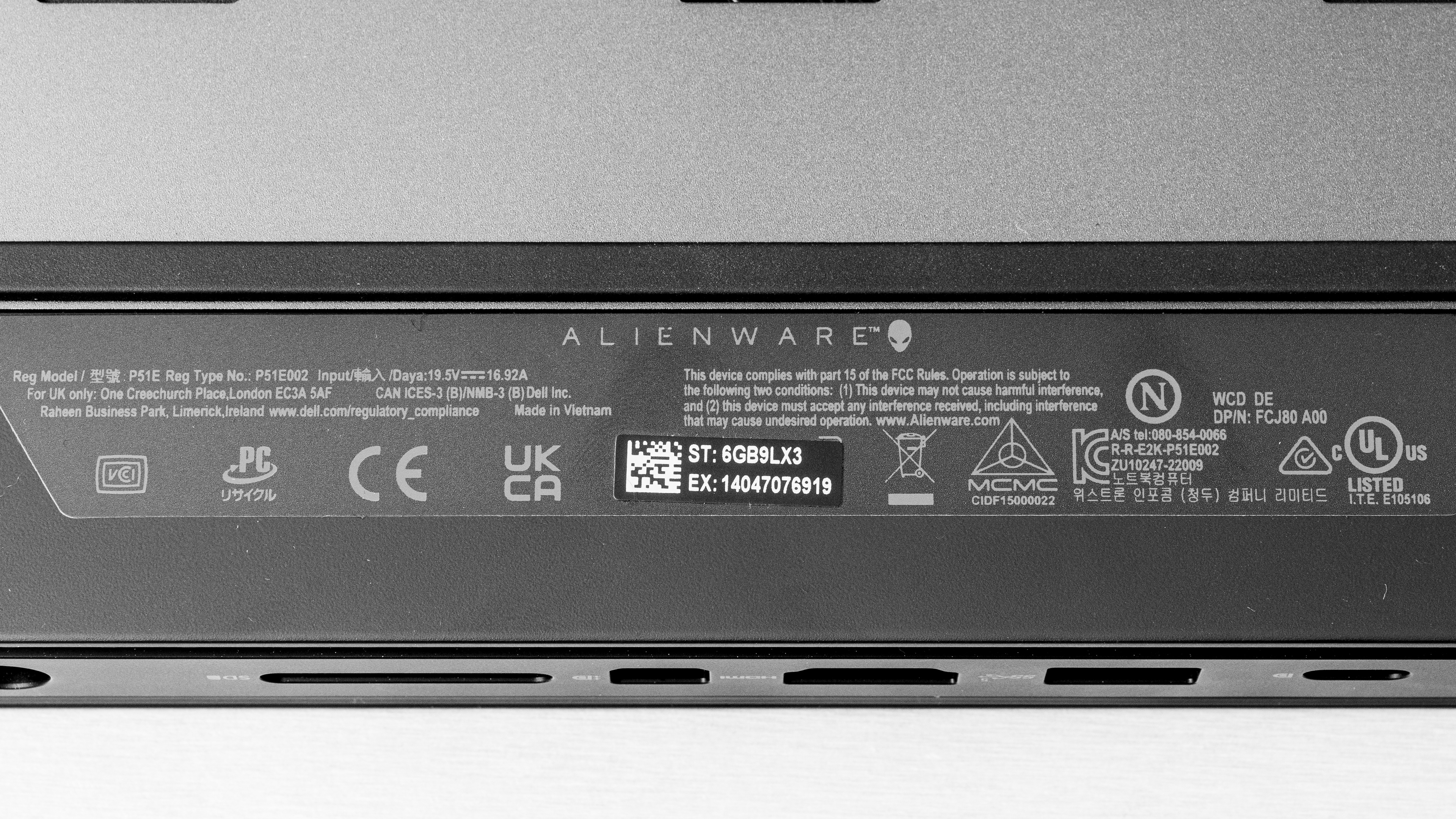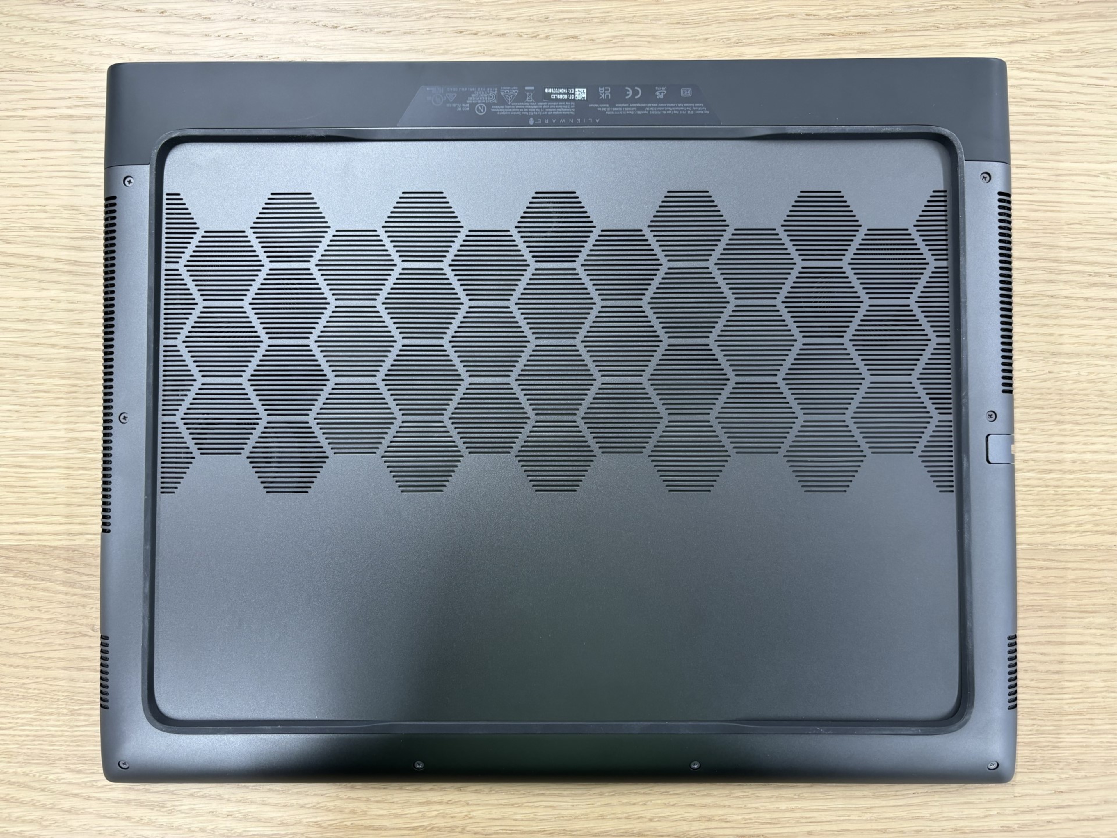 The Dell Alienware m18 is only available in this Dark Metallic Moon color. You can see the bottom of the laptop here.