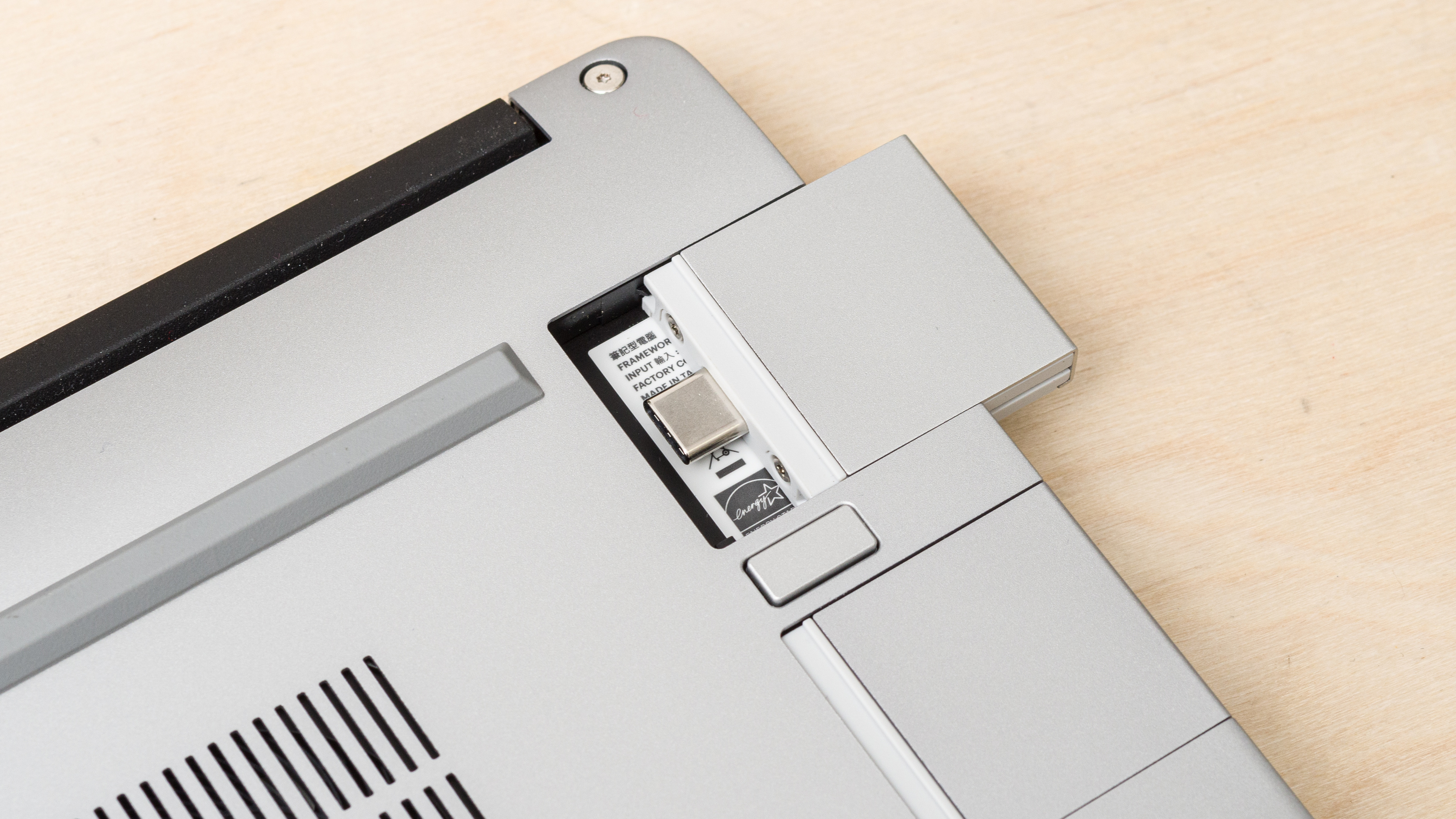 Everything is replaceable in the Framework Laptop 13 AMD, even the motherboard, display, fan, and speakers. Accessing the internals is very easy; you only need to remove a few torque screws and remove the keyboard. Just ensure you disconnect the keyboard cable. The screws are captive, meaning they remain attached to the panel to facilitate reassembly. While most parts are proprietary, meaning you must get them from Framework, the RAM and storage slots accept off-the-shelf parts.