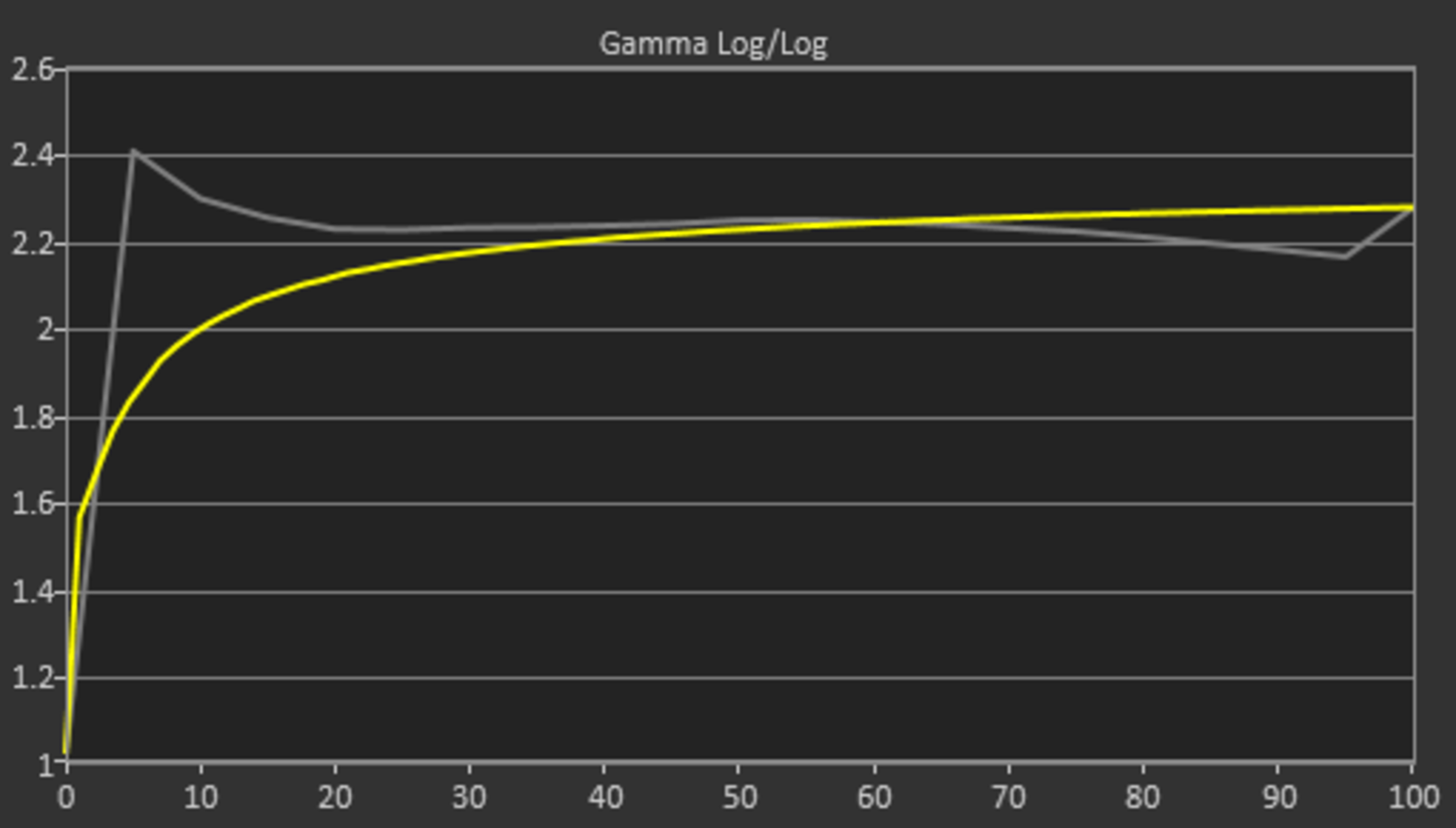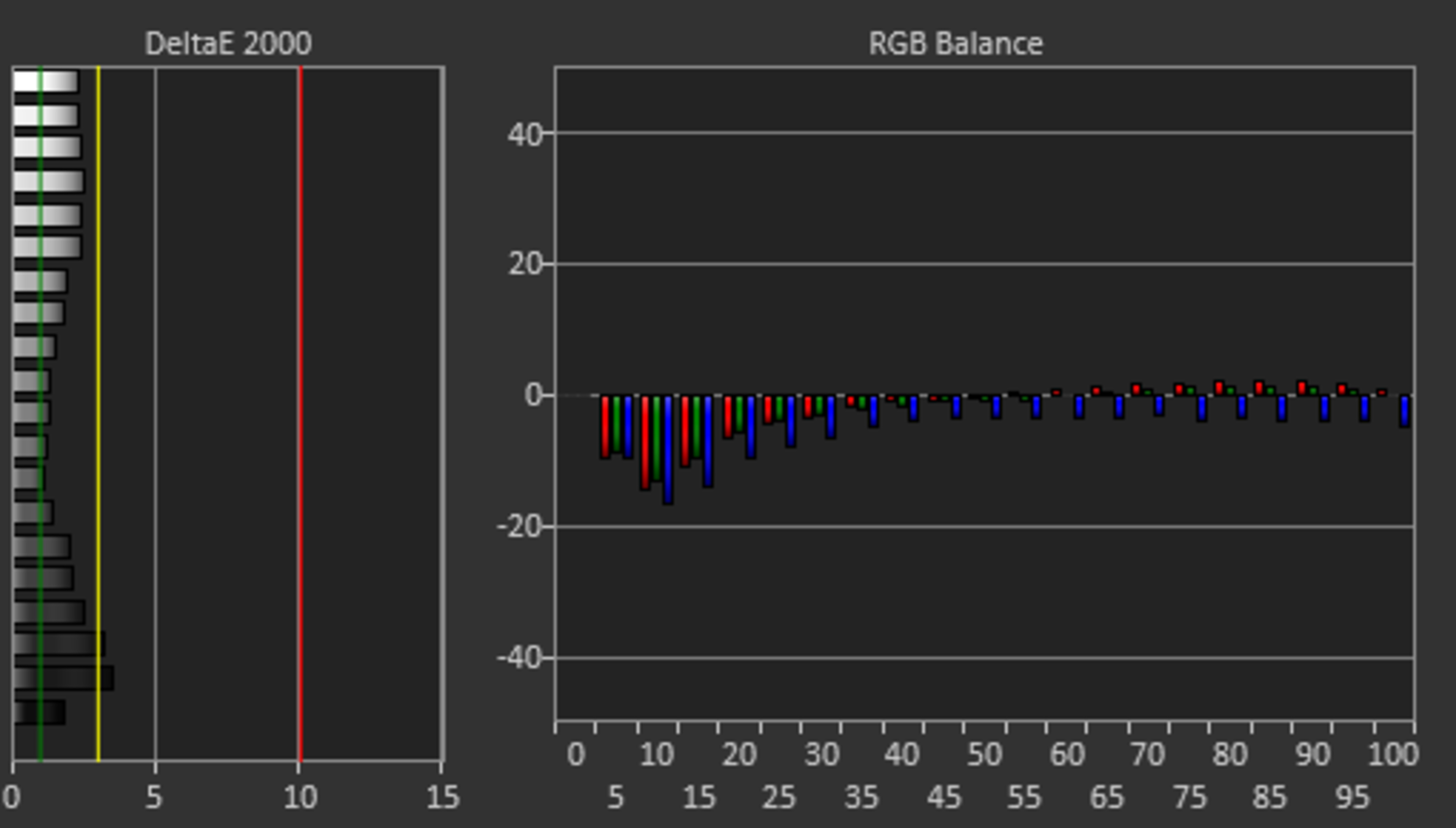 The OLED display's accuracy is excellent out of the box. Most white balance and color inaccuracies are minor and hard to spot. The color temperature is a tad on the warmer side, giving the image a slight reddish tint. The average gamma isn't bad; bright scenes are a little too bright, while dark scenes are too dark, crushing blacks.