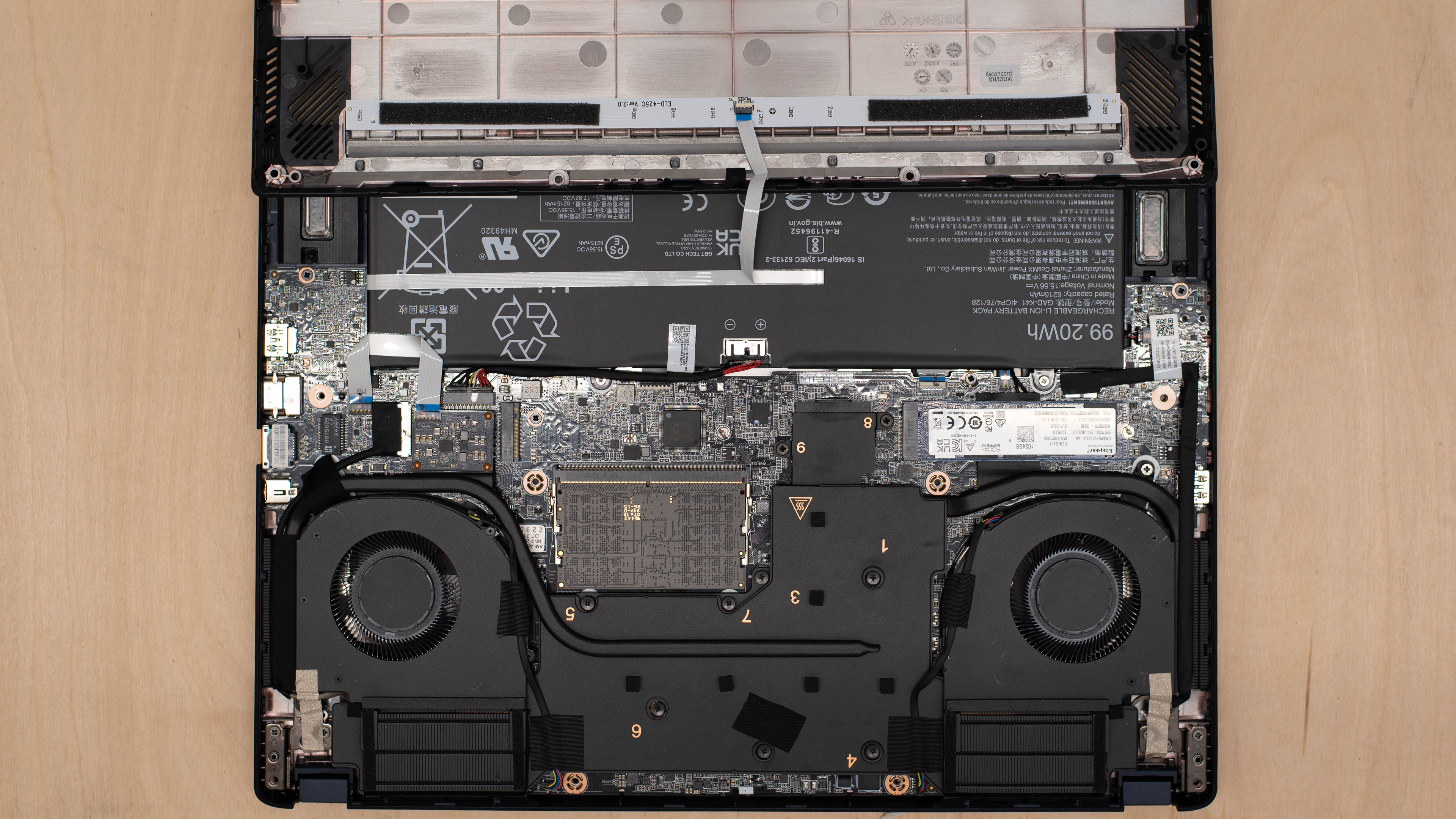 You can get this laptop with 1TB or 2TB of storage. The storage drive is user-replaceable. There are two M.2 2280 SSD slots: one is PCIe Gen 5 and the other is PCIe Gen 4x4.