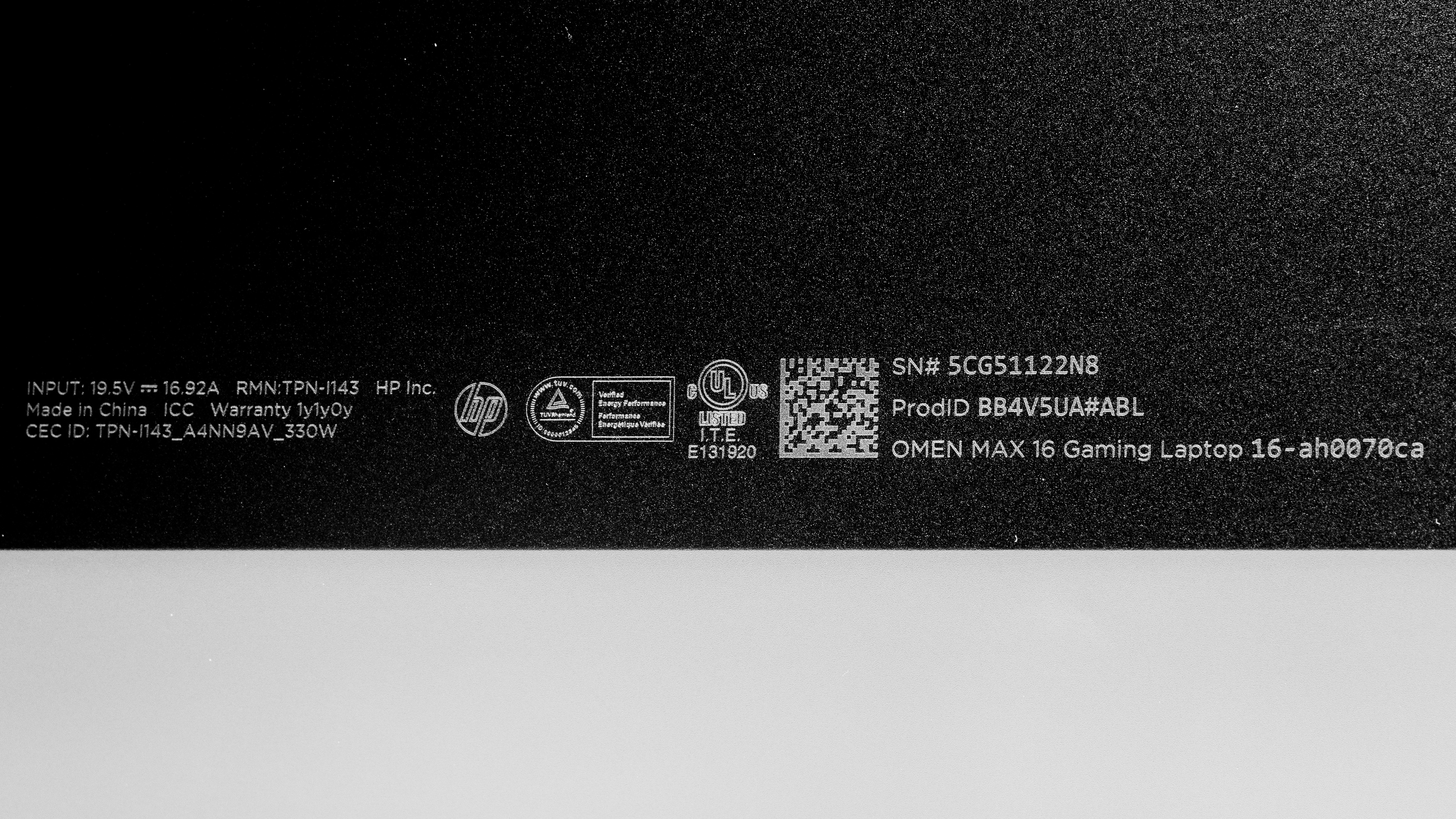 The HP OMEN MAX 16 is available in a Shadow Black or Ceramic White colorway. See the bottom of the laptop.