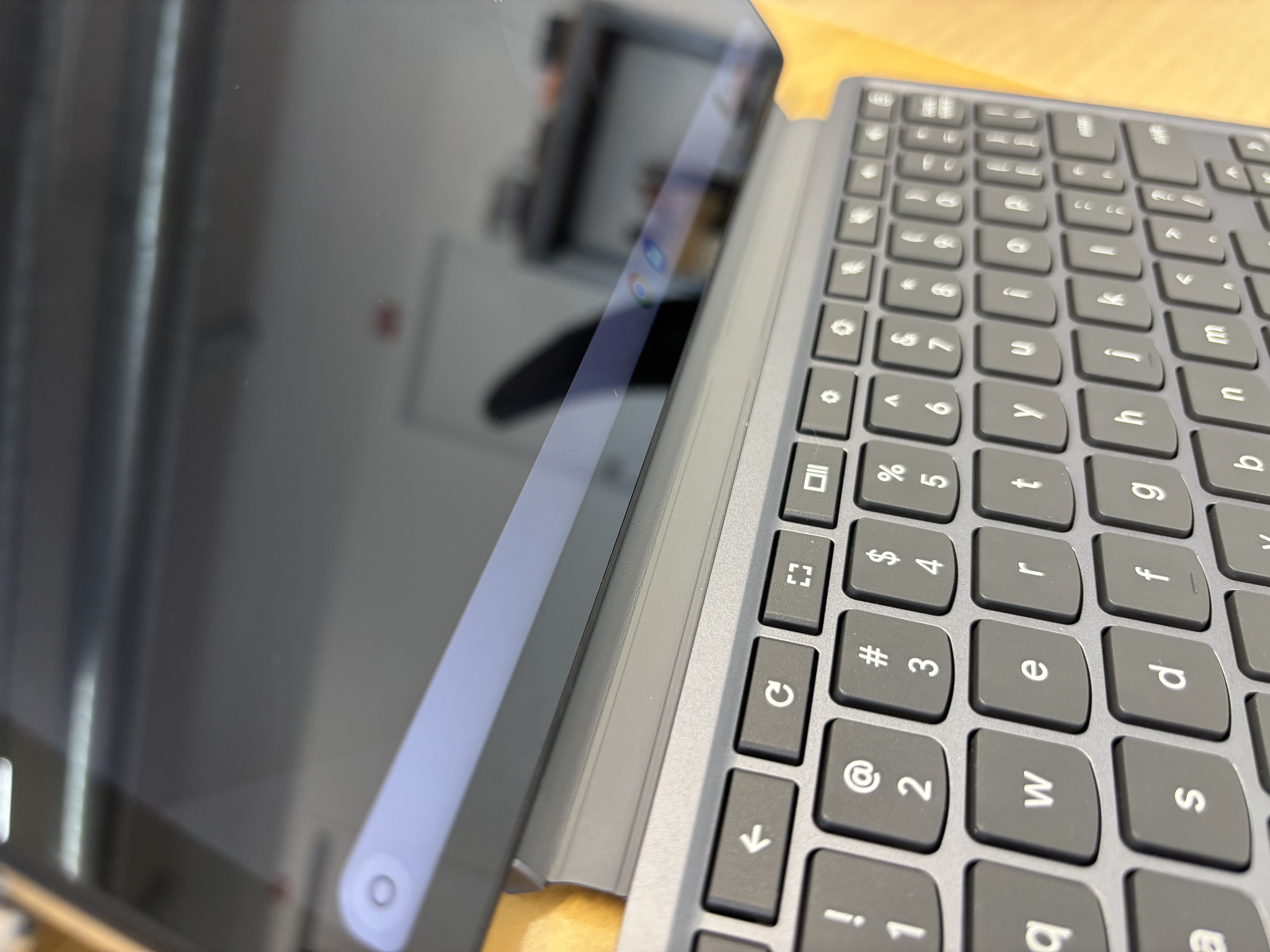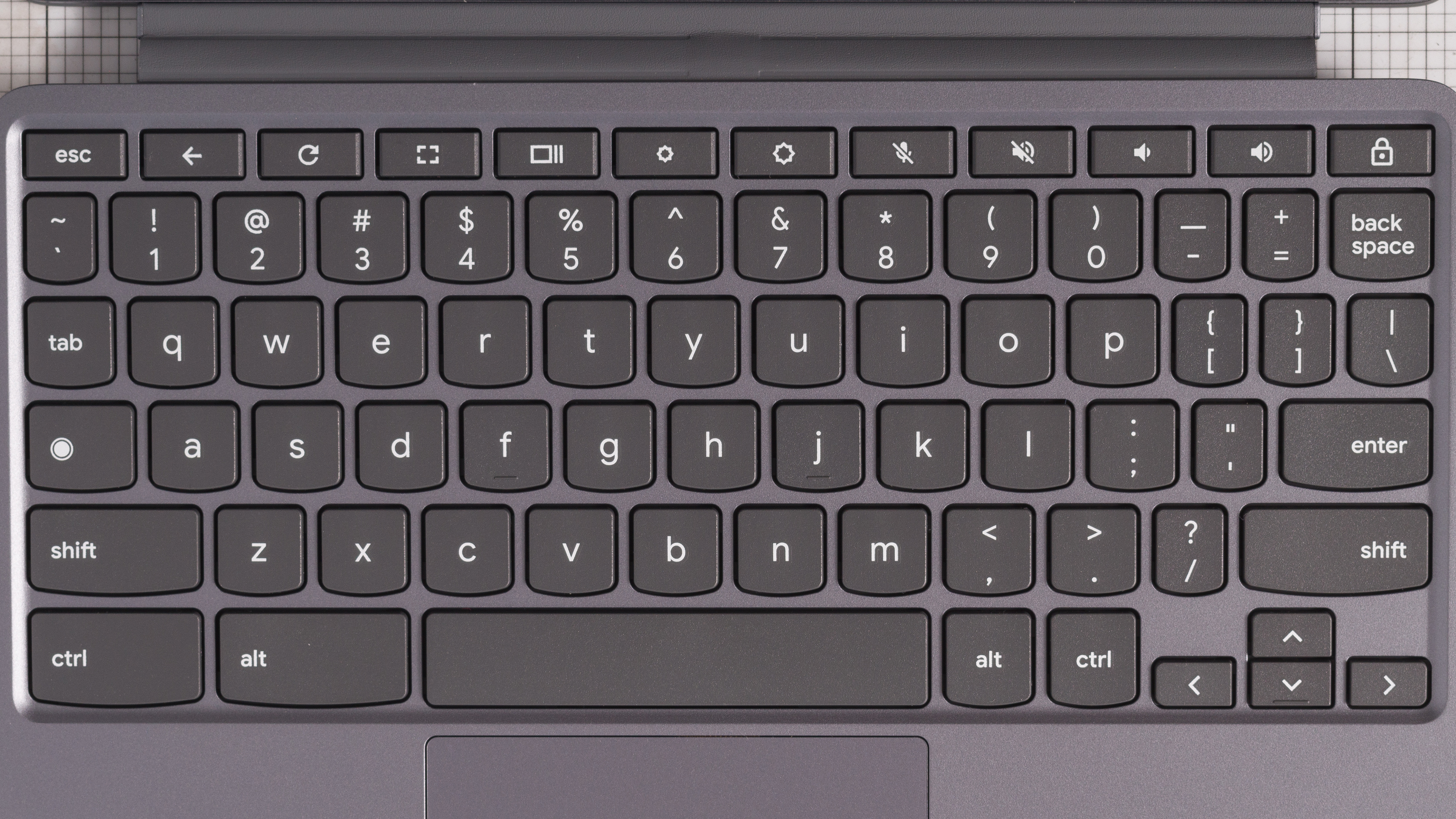The Lenovo Chromebook Duet Gen 9's folio keyboard provides a decent typing experience. The keys have a fair amount of travel and are easy to actuate; however, they aren't the most stable keys (especially the larger ones) and feel rather mushy. This is a pretty small keyboard with a tight layout, which is fine if you only use it to write short documents or emails here and there but not ideal for long typing sessions, especially if you have large hands.