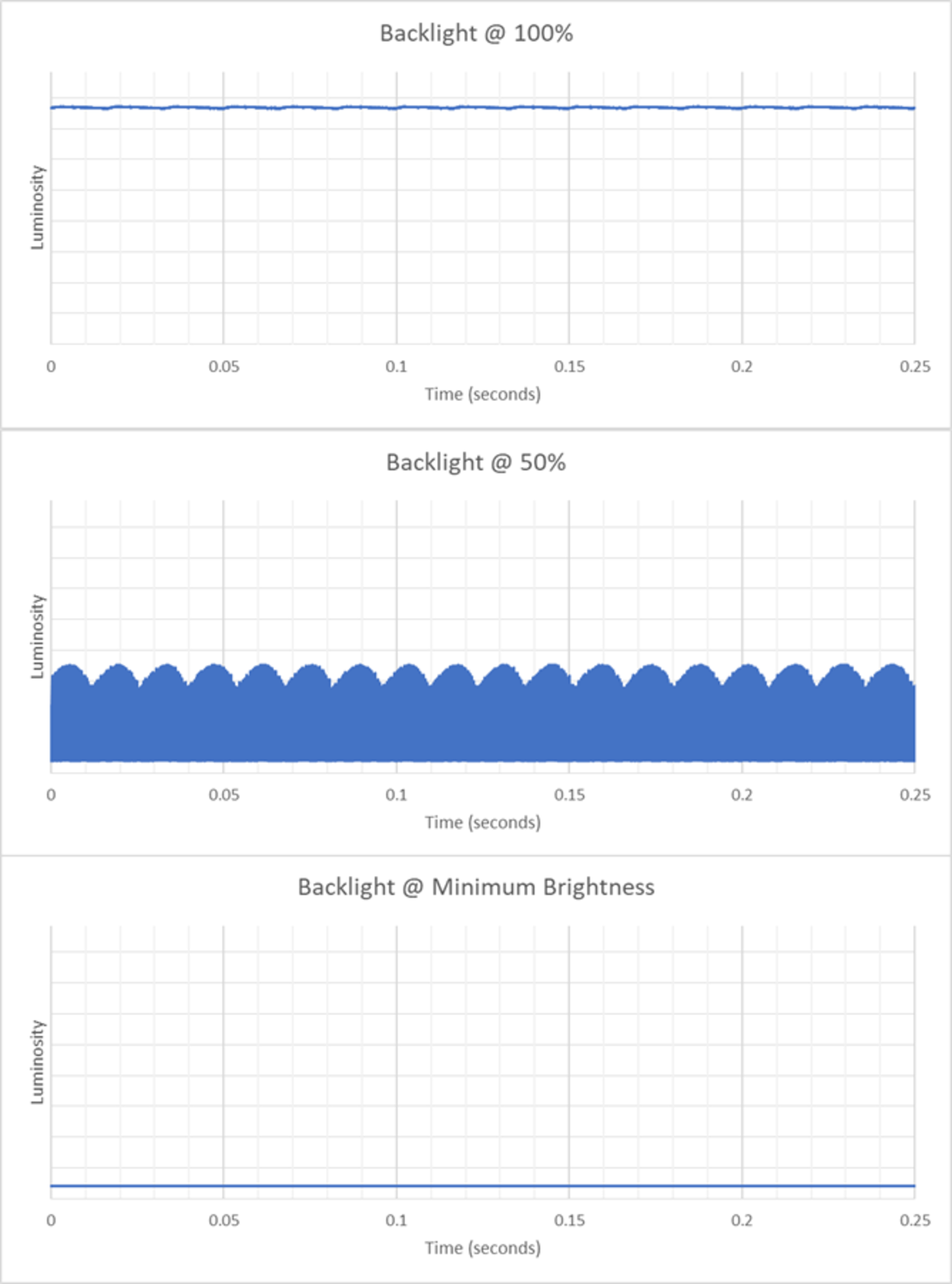 The display's contrast ratio is very good, measuring a little higher than the typical 1000-1500:1 contrast of most IPS panels. That said, it's still low compared to other display technologies like OLEDs and Mini LEDs. This contrast level makes blacks look gray in dim settings.