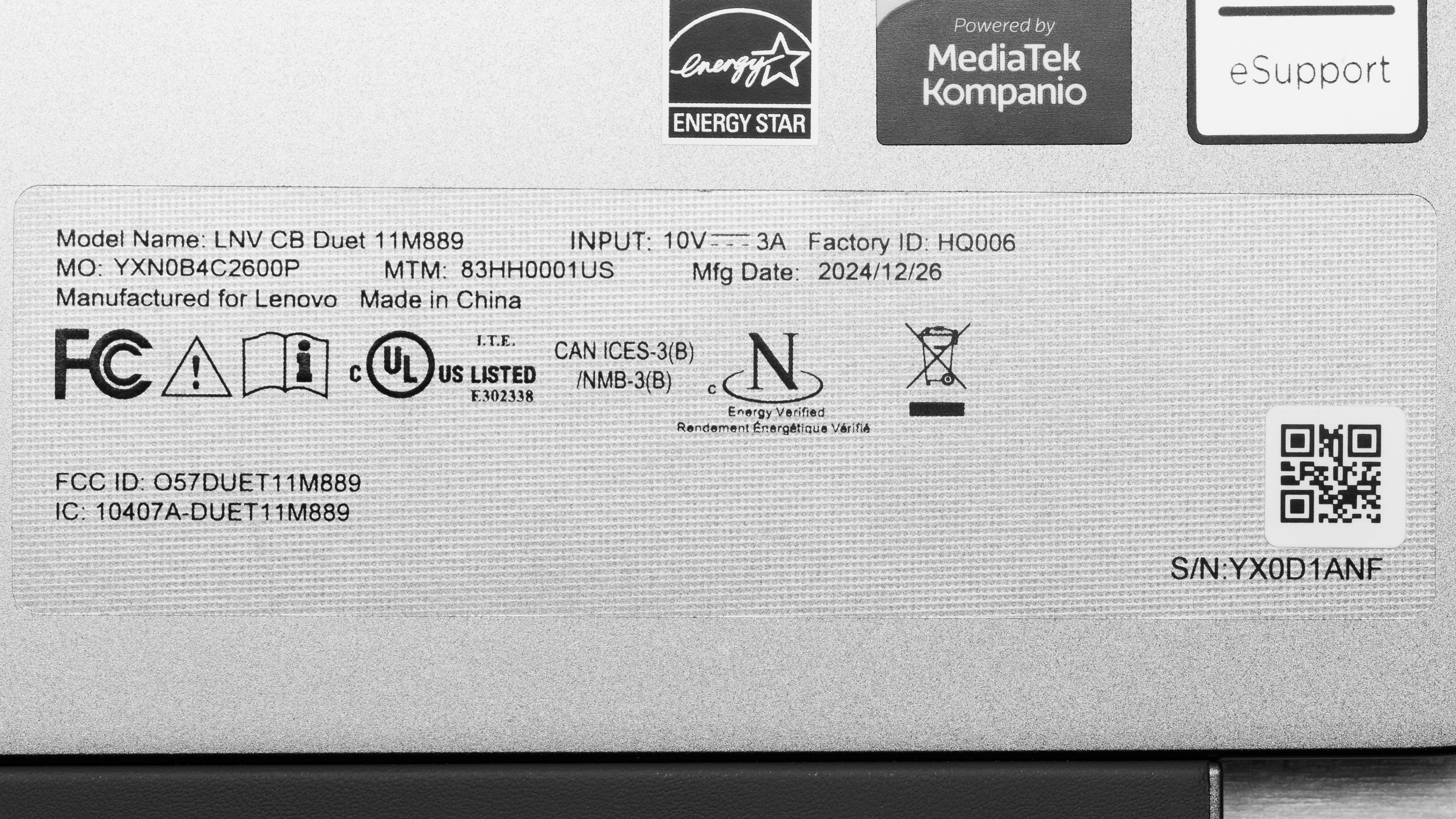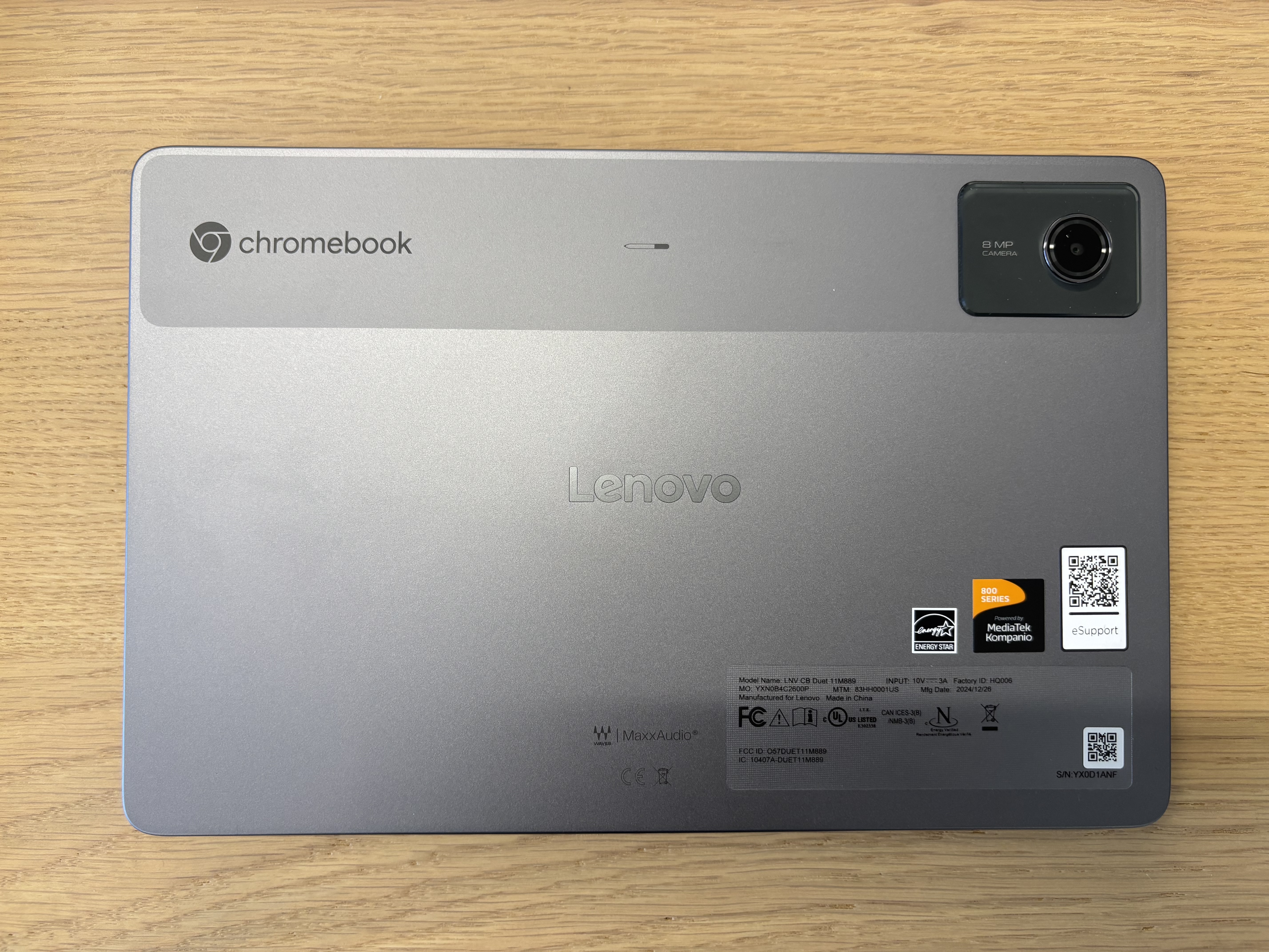 We tested the Lenovo Chromebook Duet 11 (83HH0001US) with a MediaTek Kompanio 838 SoC, 8GB of RAM, and 128GB of storage. Only the memory and storage are configurable; see below for the available options.