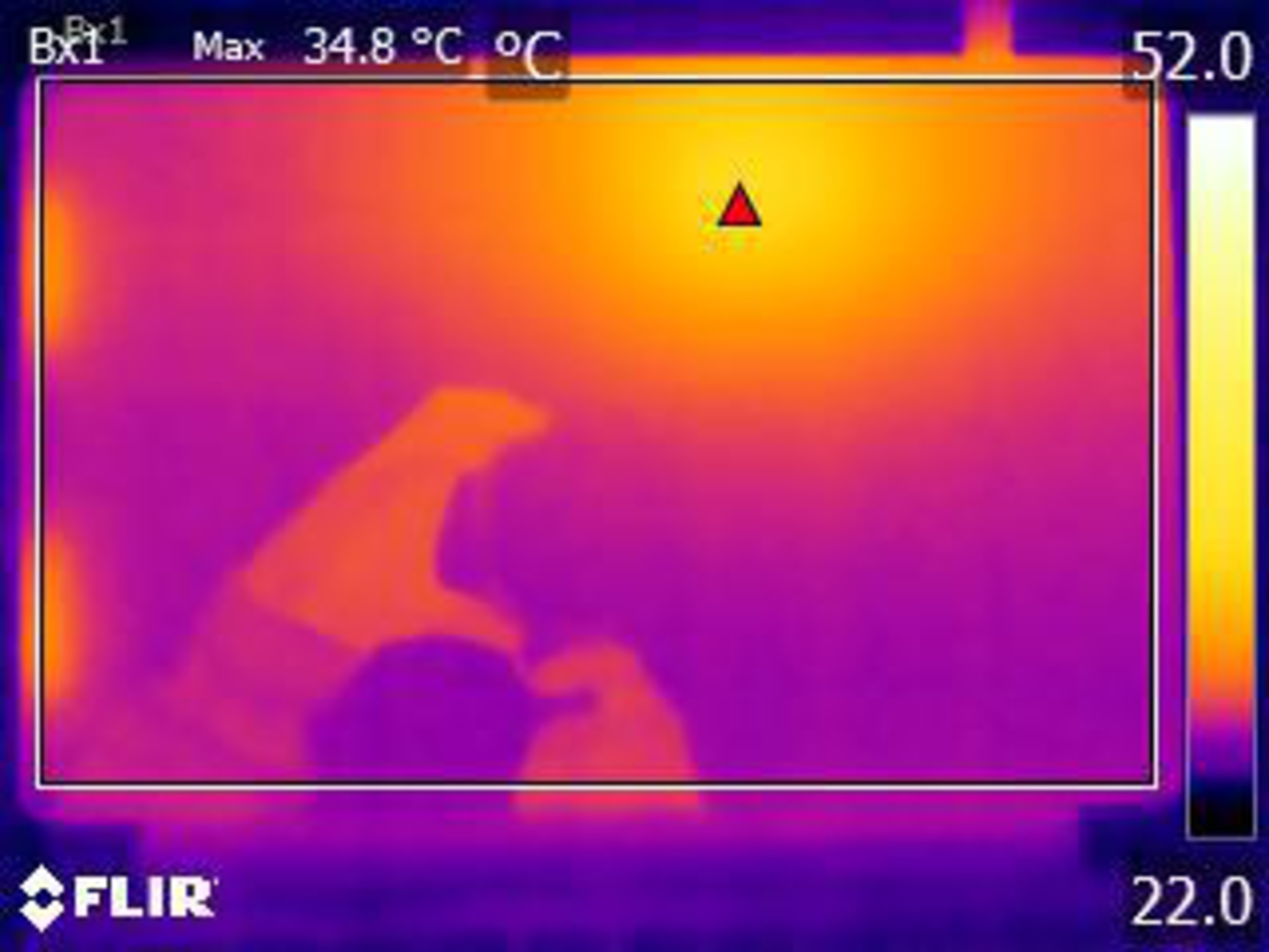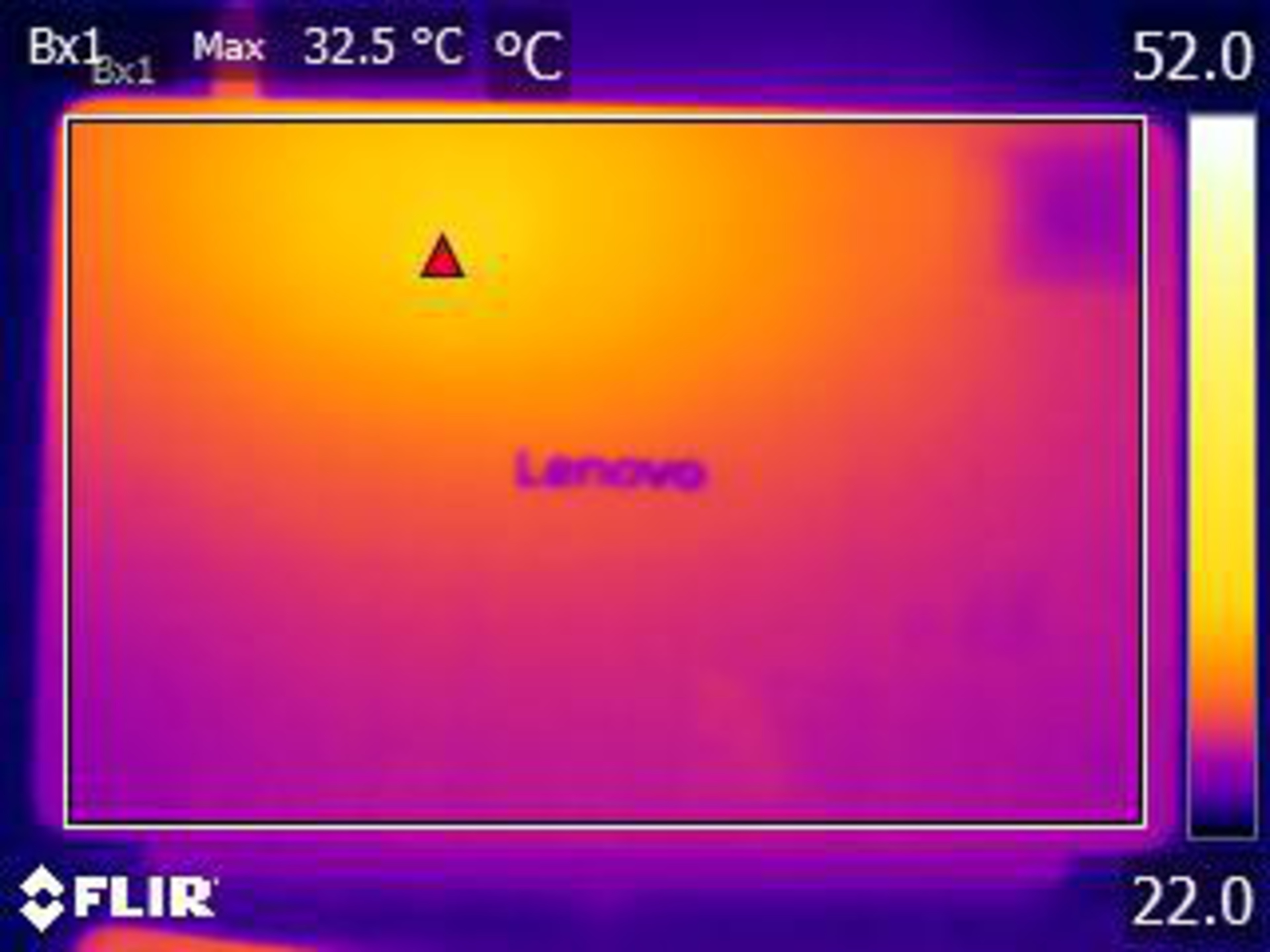 Heat isn't a problem on the Lenovo Duet 11 Chromebook since all the components are on the screen side, leaving the keyboard relatively cool to the touch. The screen and the back of the tablet are only mildly warm under load, with the former reaching 34.8 °C (94.64 °F) and the latter reaching 32.5 °C (90.5 °F), so you shouldn't experience any discomfort when holding the tablet (without the folio back cover) or when using touch or pen input. You won't hear any fan noise since this is a fanless device.