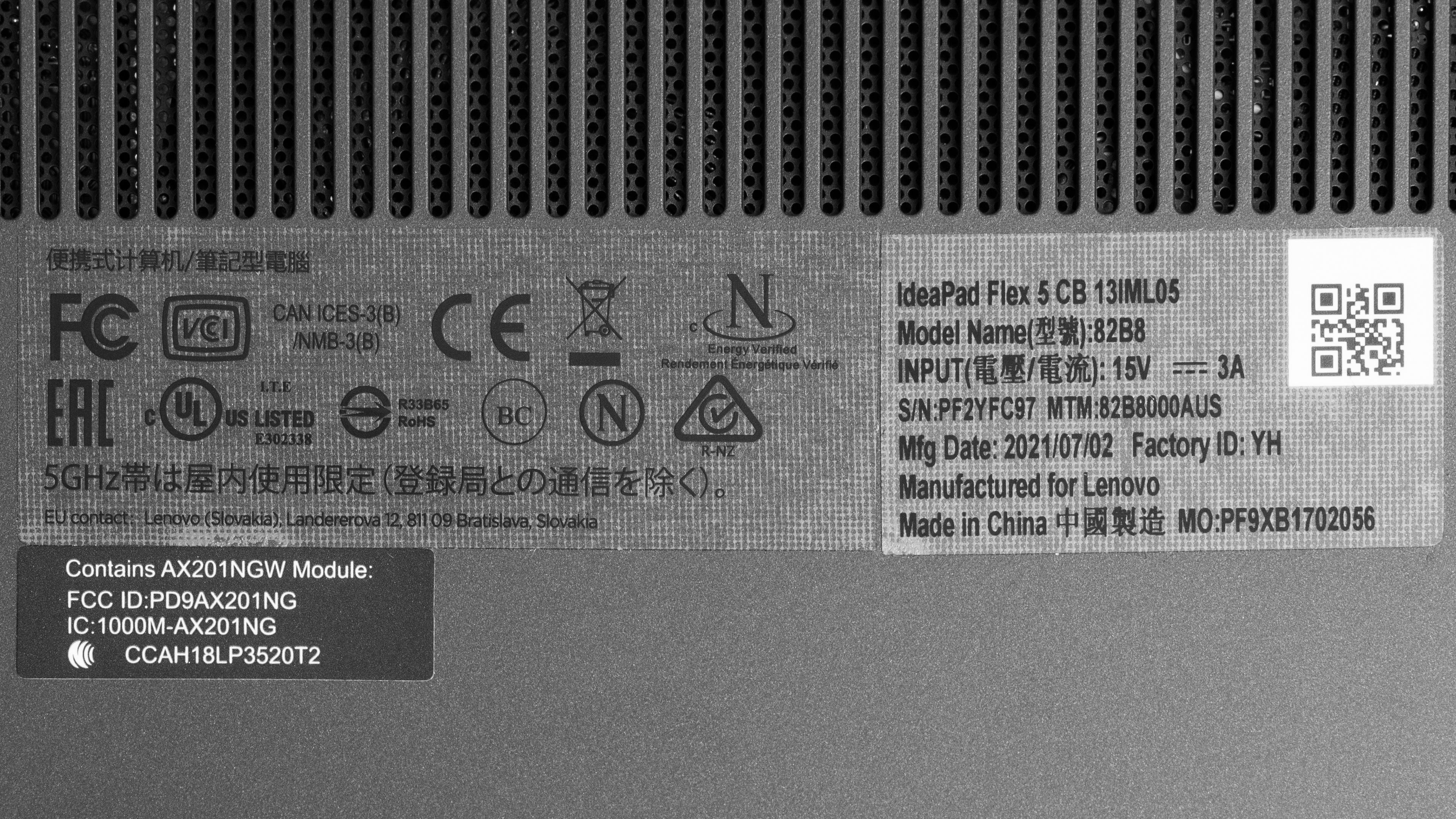 The Lenovo Chromebook Flex 5's wireless adapter is an Intel Wi-Fi 6 AX201NGW.