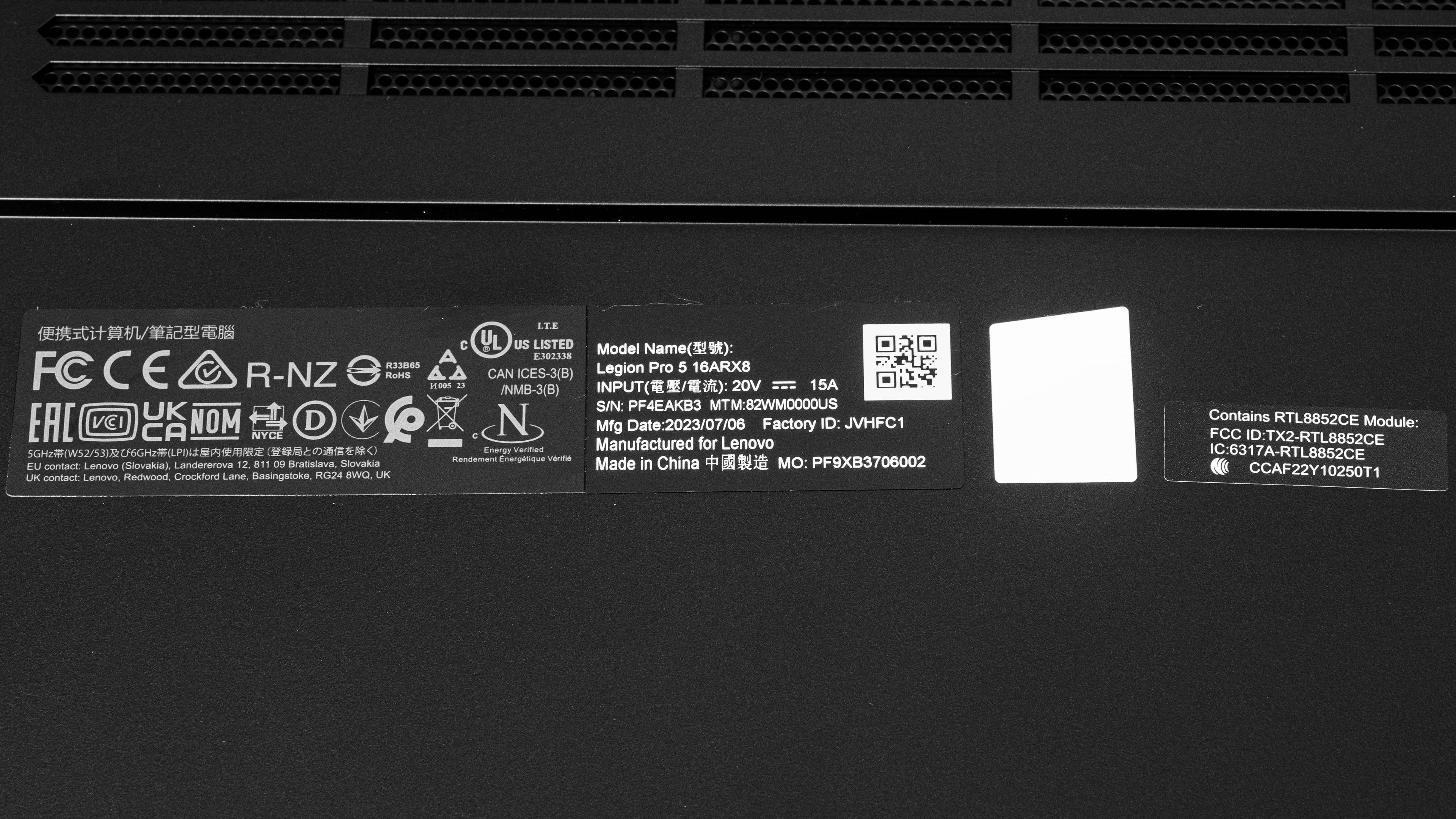 We tested the Lenovo Legion Pro 5 Gen 8 (model 82WM0000US) with a 165Hz QHD+ display, an AMD Ryzen 5 7645HX CPU, an NVIDIA GeForce RTX 4050 discrete GPU, 16GB of RAM, and 512GB of storage. The display, CPU, GPU, memory, and storage are configurable; the available options are in the table below. Our review applies only to variants with a model number starting with '82WM'.