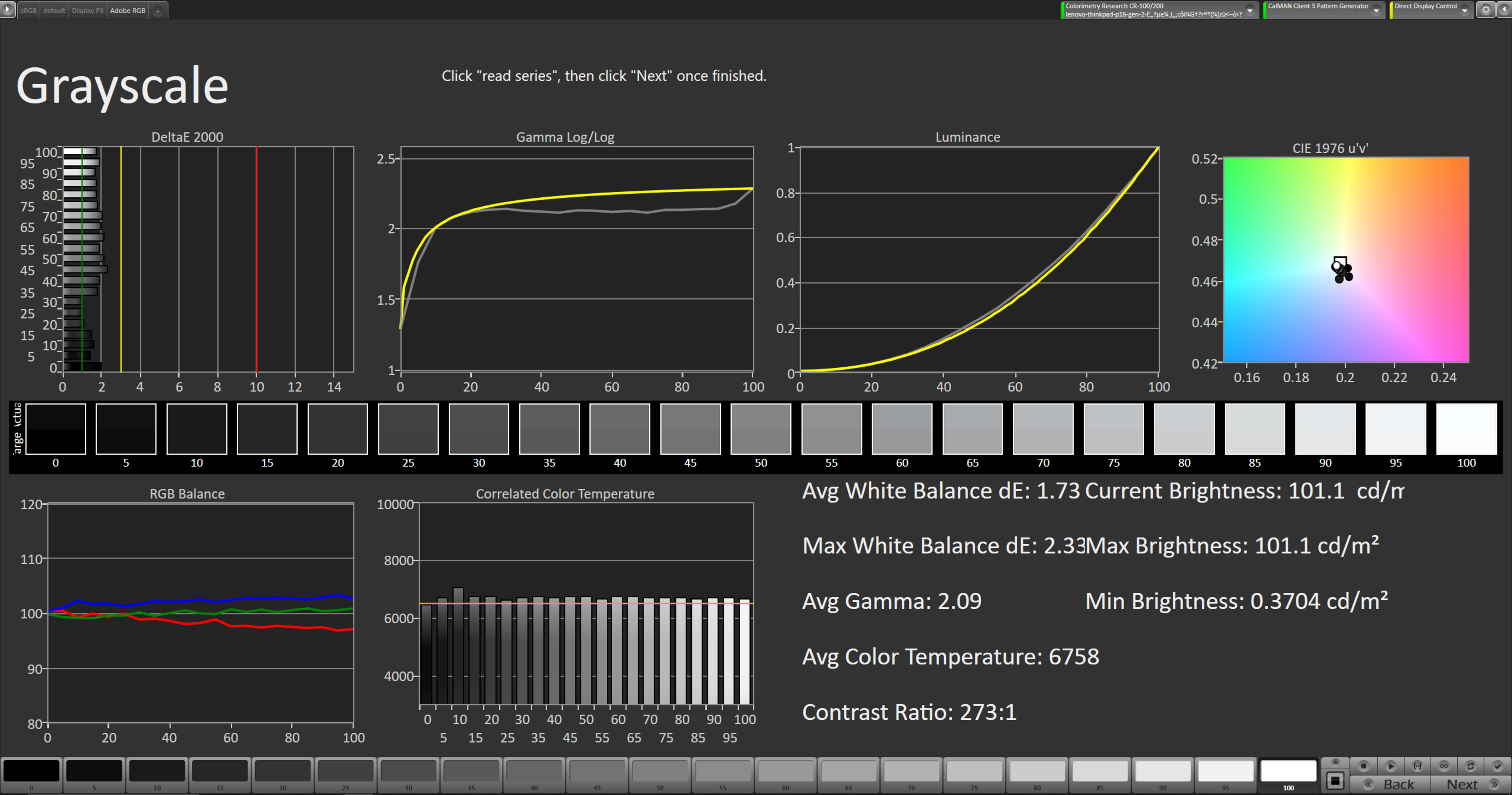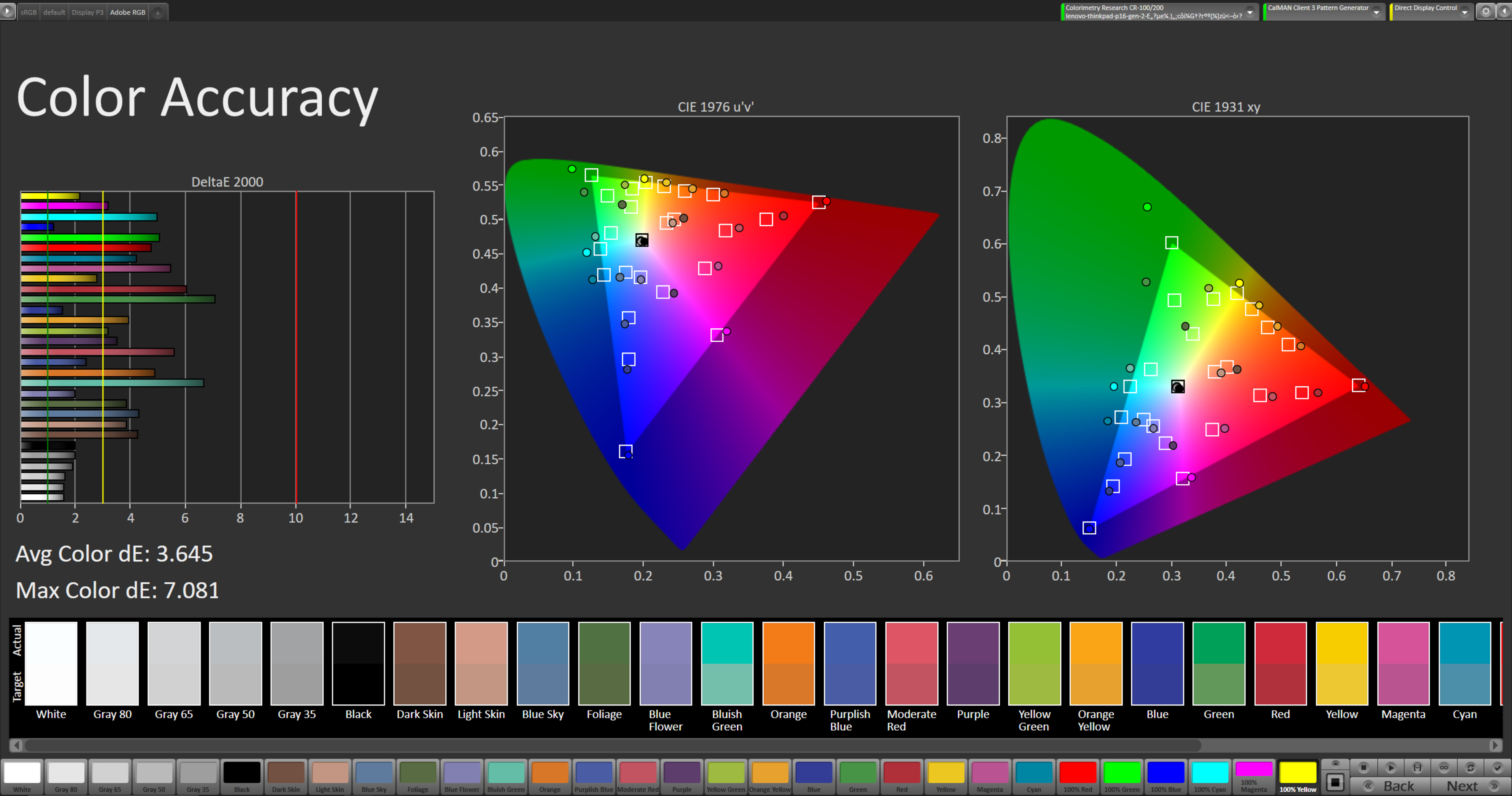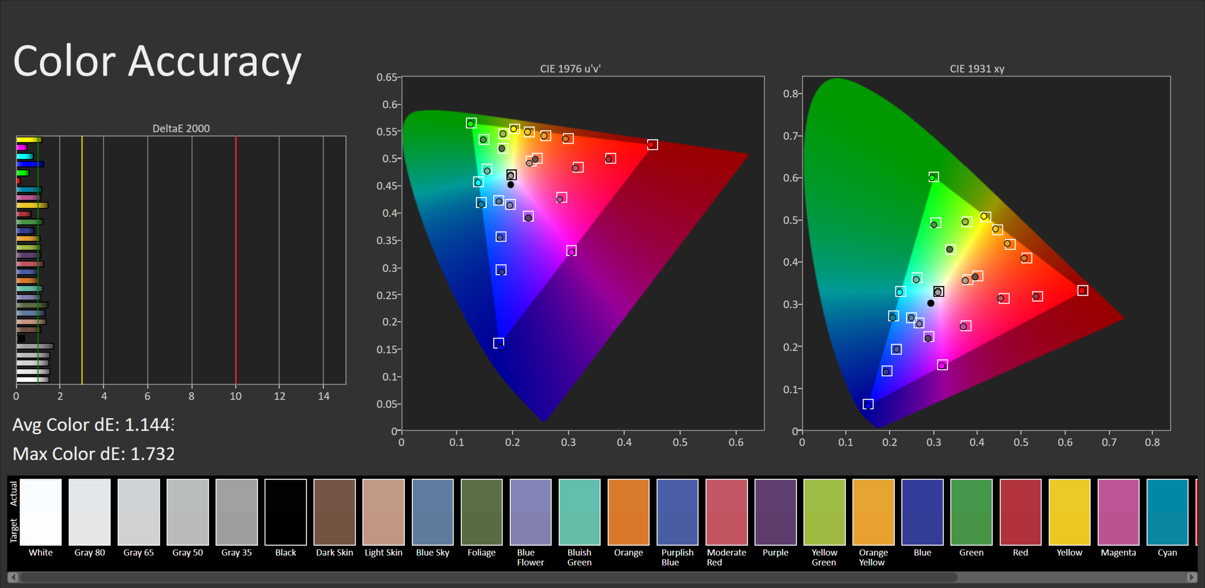 Here are additional measurements in the Default, sRGB, DCI P3, and Adobe RGB color profiles: