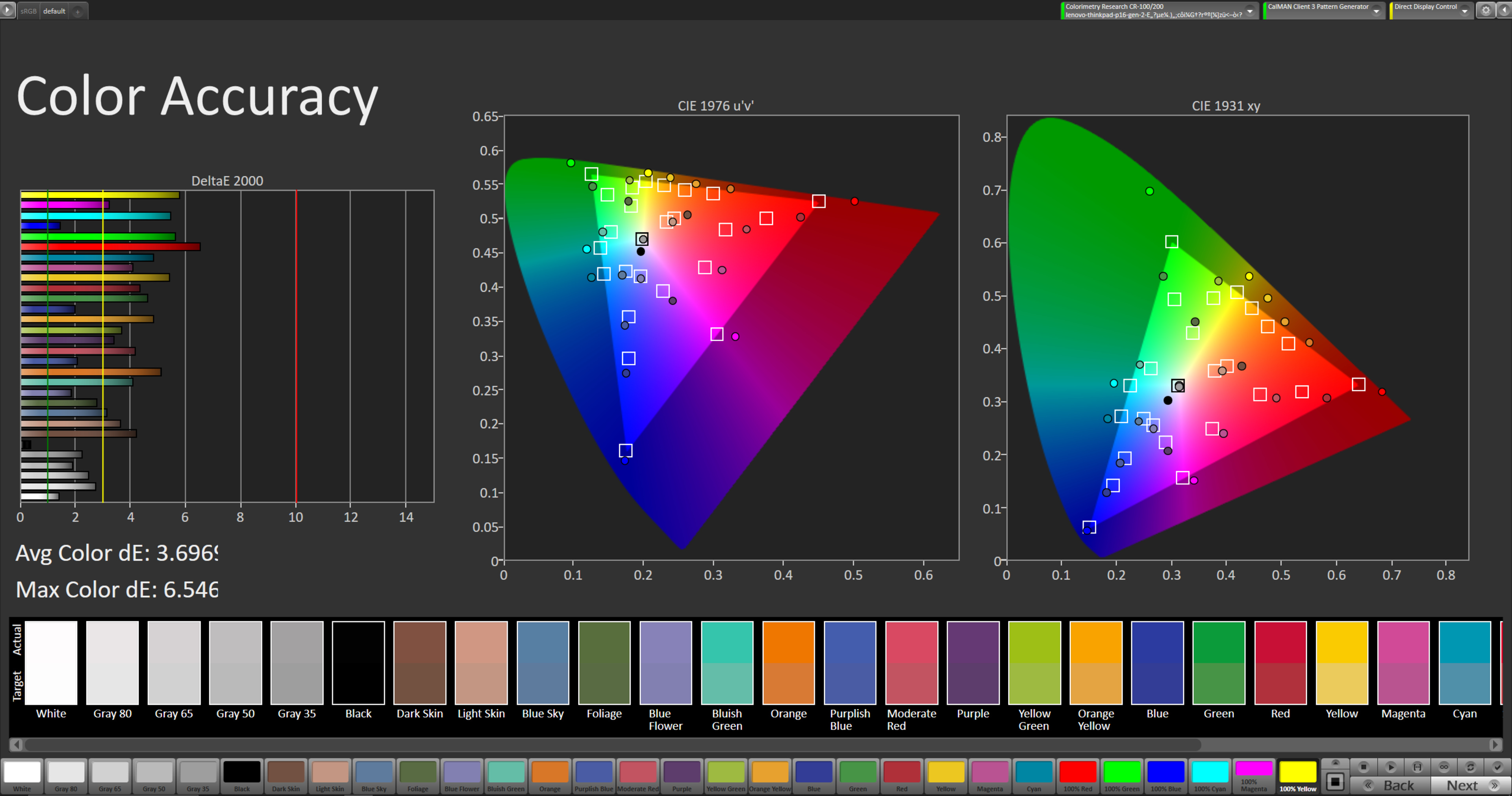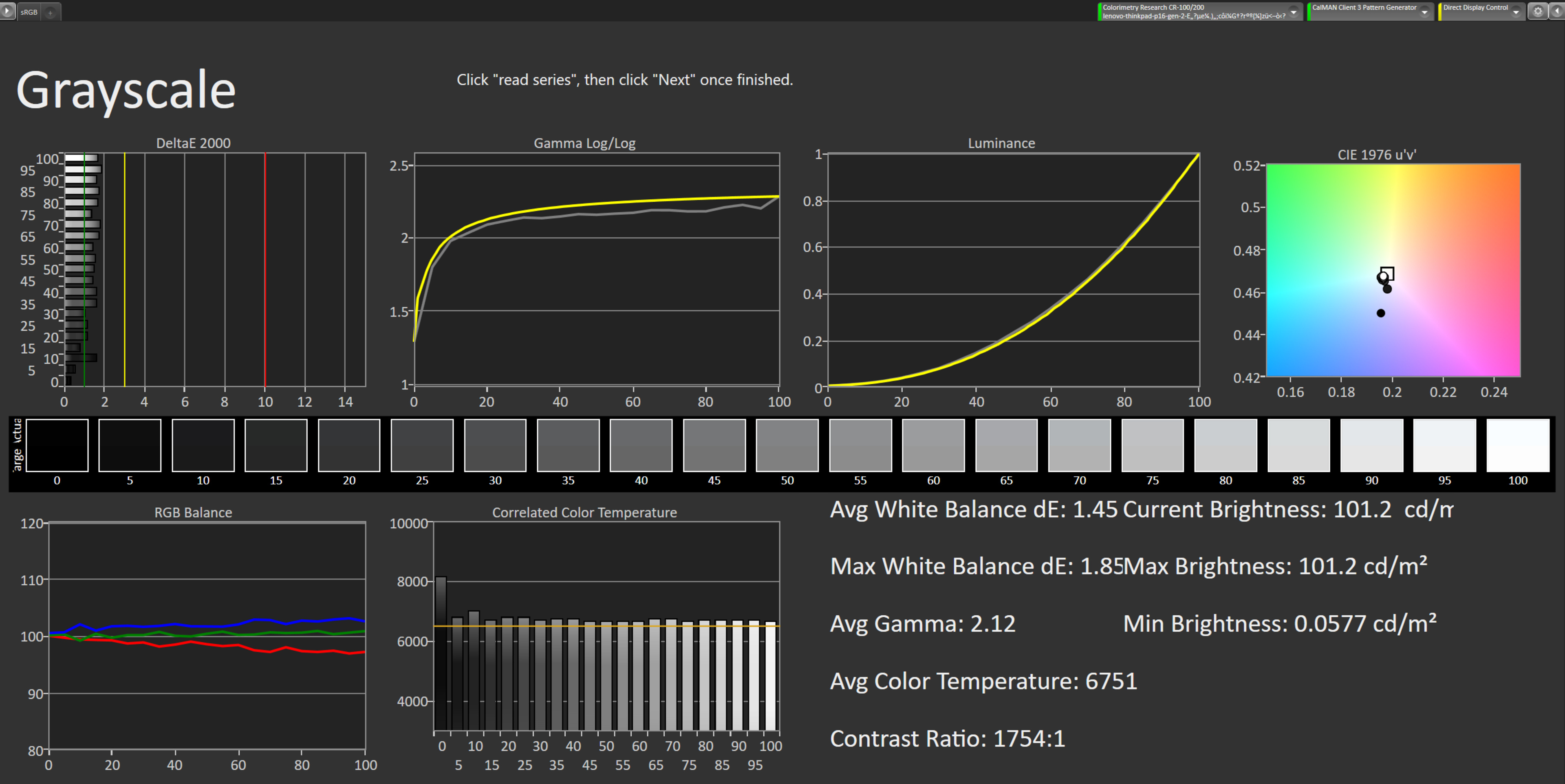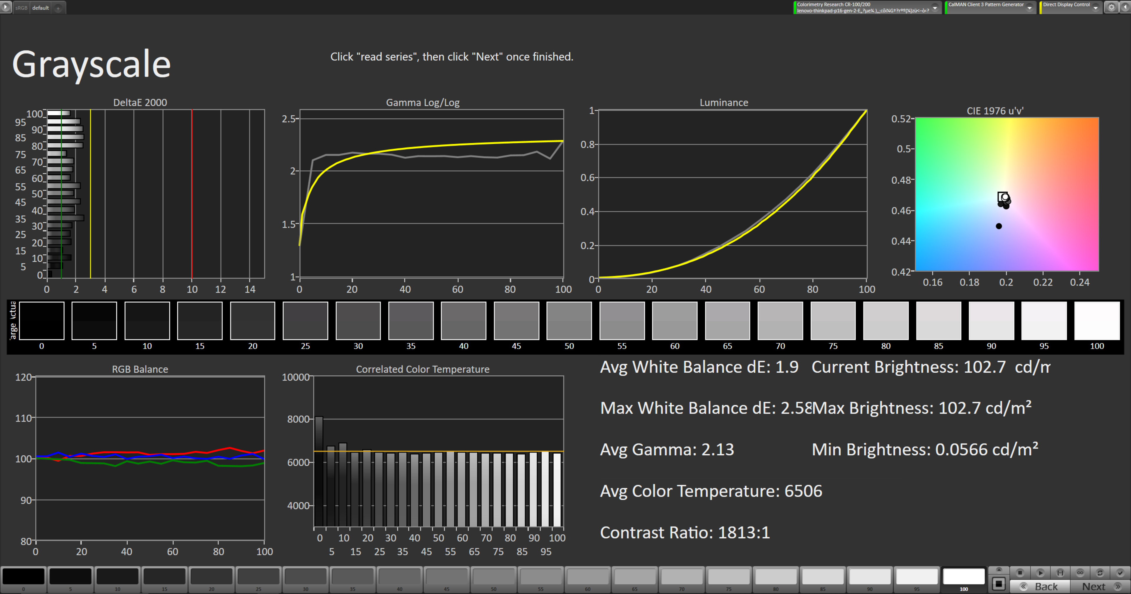 Here are additional measurements in the Default, sRGB, DCI P3, and Adobe RGB color profiles: