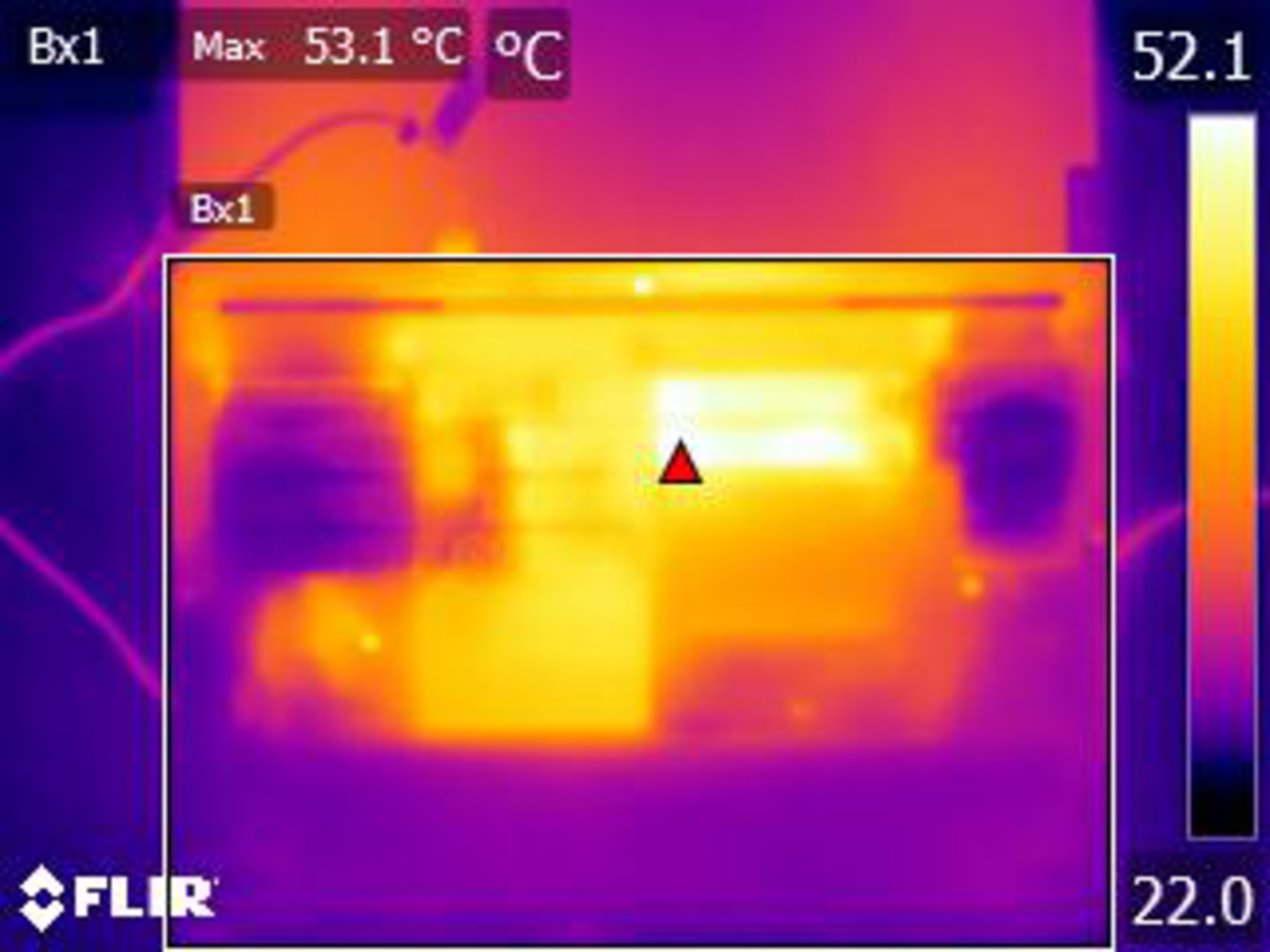 The keyboard deck gets a little toasty under load and can cause some discomfort, as the hot spot is near the center of the keyboard. Unfortunately, the bottom of the laptop gets even hotter, reaching 53.1 °C (127.58 °F). The laptop's feet prevent the bottom from making direct contact with your legs, but still, you might want to get a lap desk if you absolutely need to use the device on your lap.