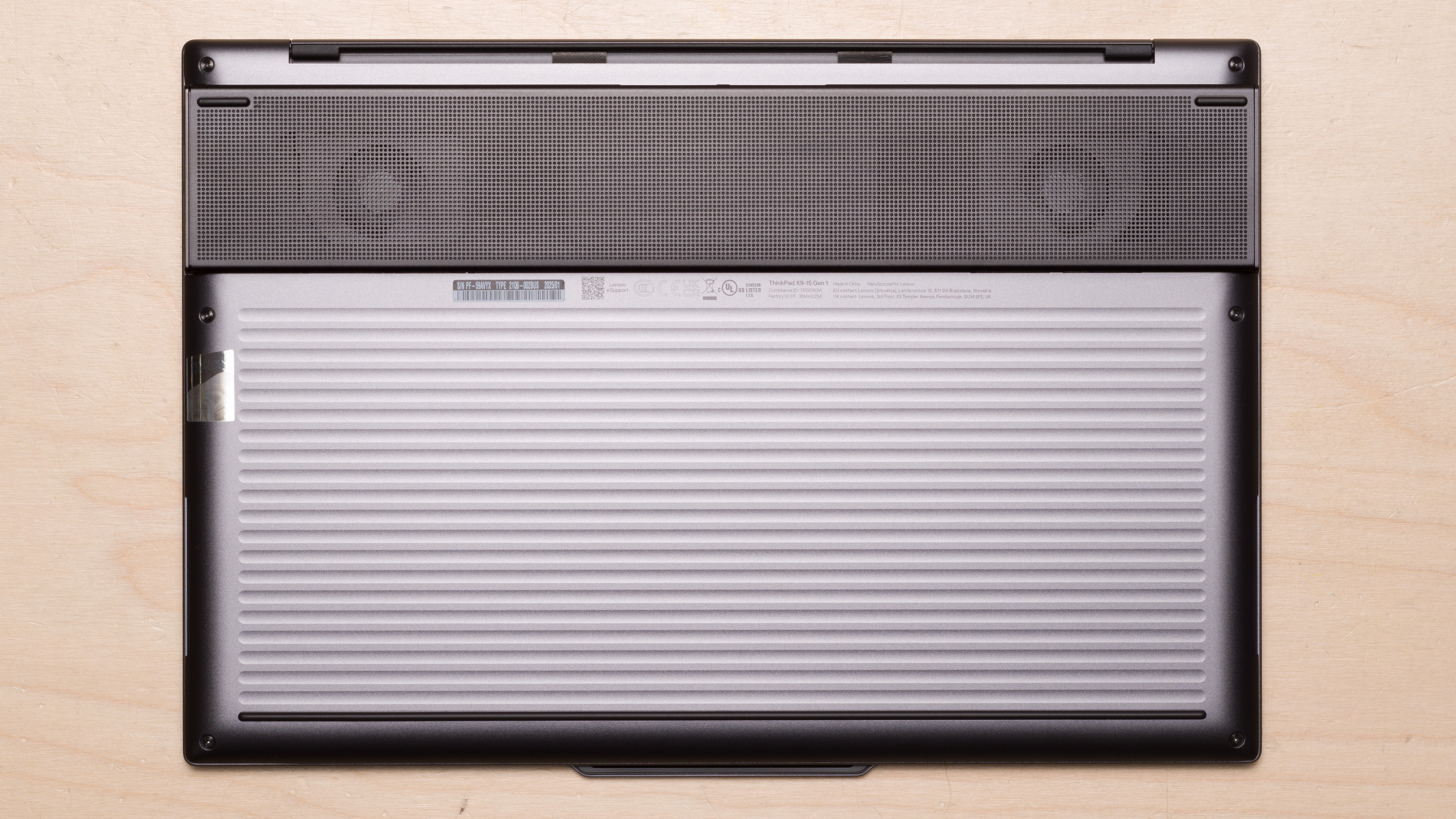 The Lenovo ThinkPad X9's build quality is outstanding. Its full-aluminum chassis feels very sturdy—not quite as rigid as, say, the Apple MacBook Pro 14 (2024), but pretty close, exhibiting very little flex on the lid and keyboard deck. The finish doesn't scratch easily; it picks up some fingerprints and smudges, which you can wipe off with a microfiber cloth with relative ease, though this will likely be a little harder as the smudges accumulate with more regular use. The feet feel solid and stick firmly to the bottom.