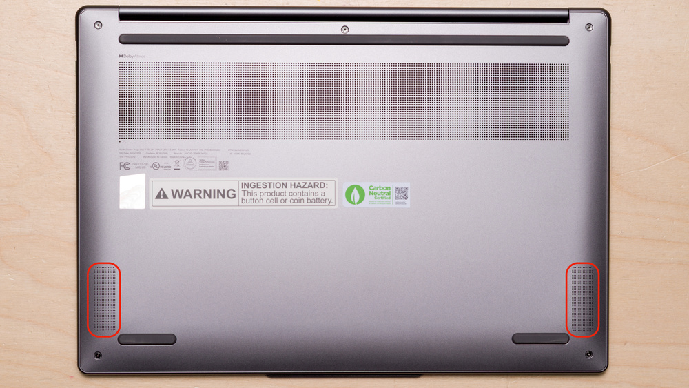 The Lenovo Slim 7i has a quad-speaker system with two drivers flanking the keyboard and two more at the bottom of the laptop, near the front. The speakers sound relatively full and well-balanced, with a good amount of bass and instrument separation. They get very loud, though there's compression at max volume, causing some harshness in the sound.