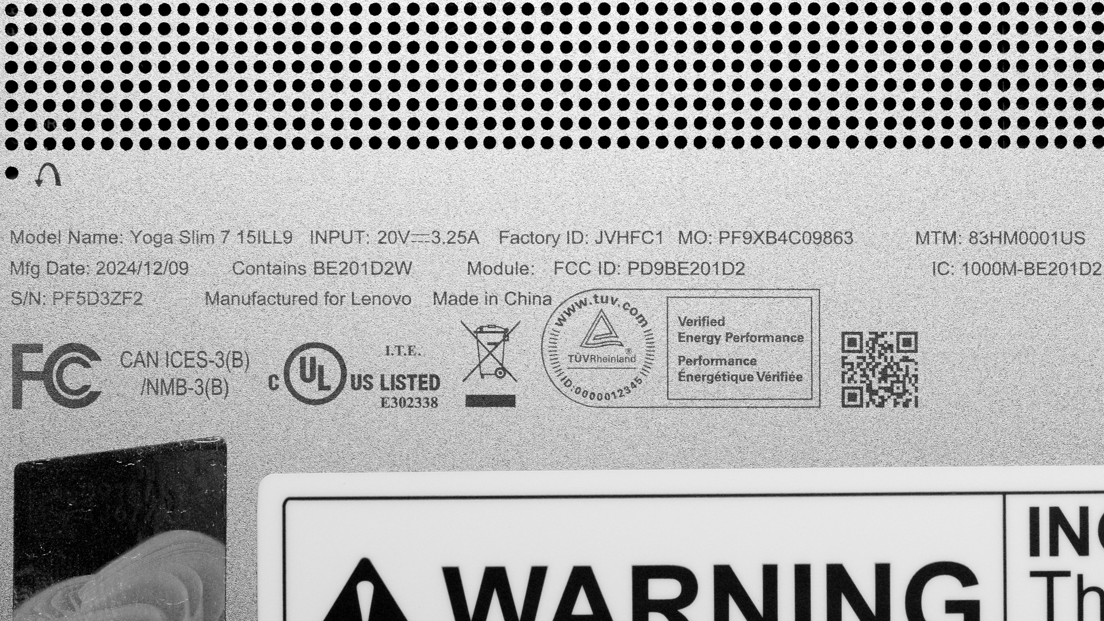 We tested the Lenovo Yoga Slim 7i Aura Edition 15 (model 15ILL9) with a 120Hz 2.8k IPS display, an Intel Core Ultra 7 256V SoC, and 1TB of storage. The display, SoC, and storage are configurable; see below for the available options.