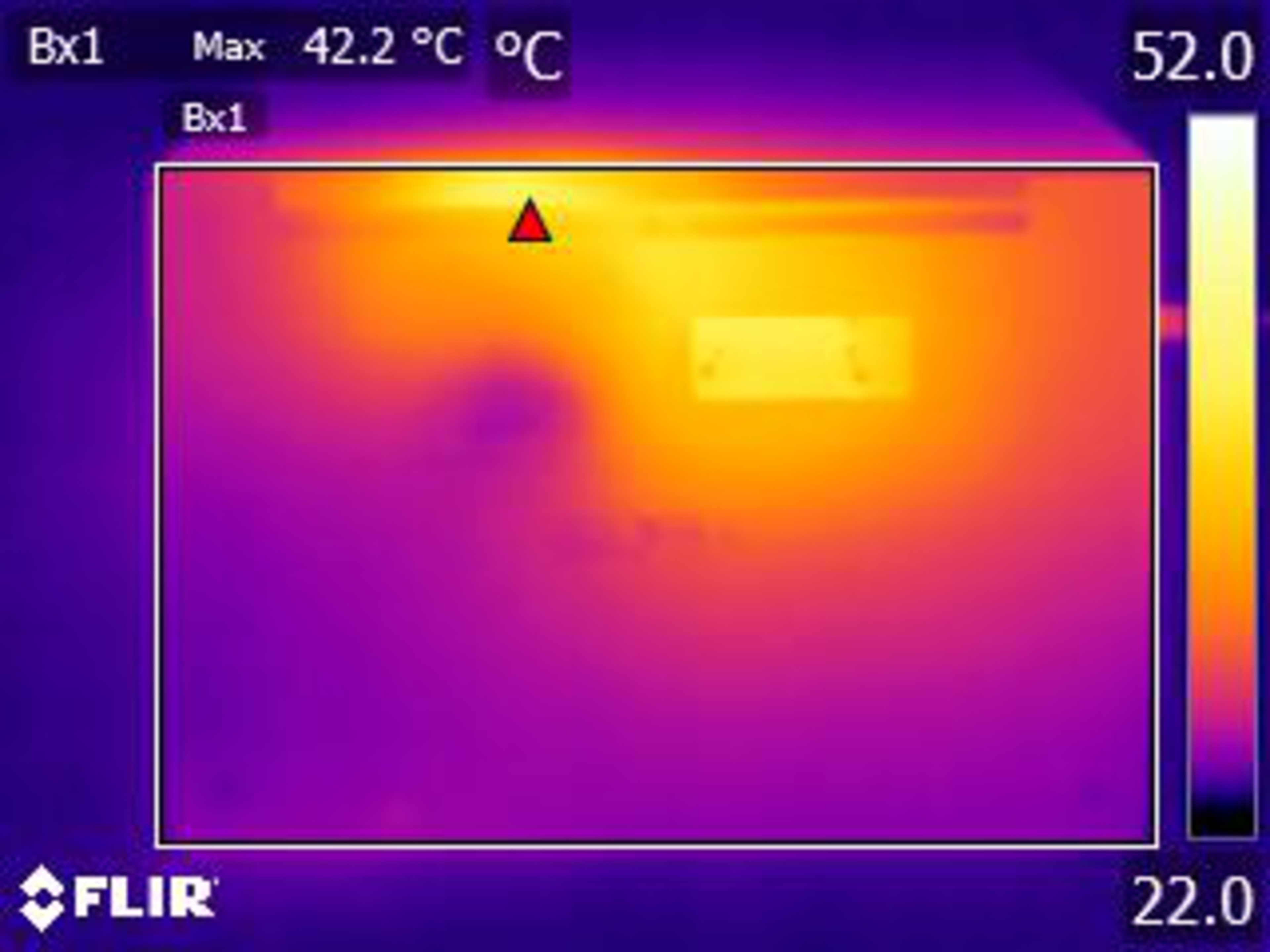 You can change the fan profile via the LG Smart Assistant app. All testing was done using the default Normal profile. While the fans are moderately noisy under load, they aren't distracting. The keyboard gets a little warm under load, but despite the hotspot being at the top of the keyboard, it isn't uncomfortable to use. The bottom of the laptop doesn't get much hotter under load, measuring just 42.2 °C (108 °F).