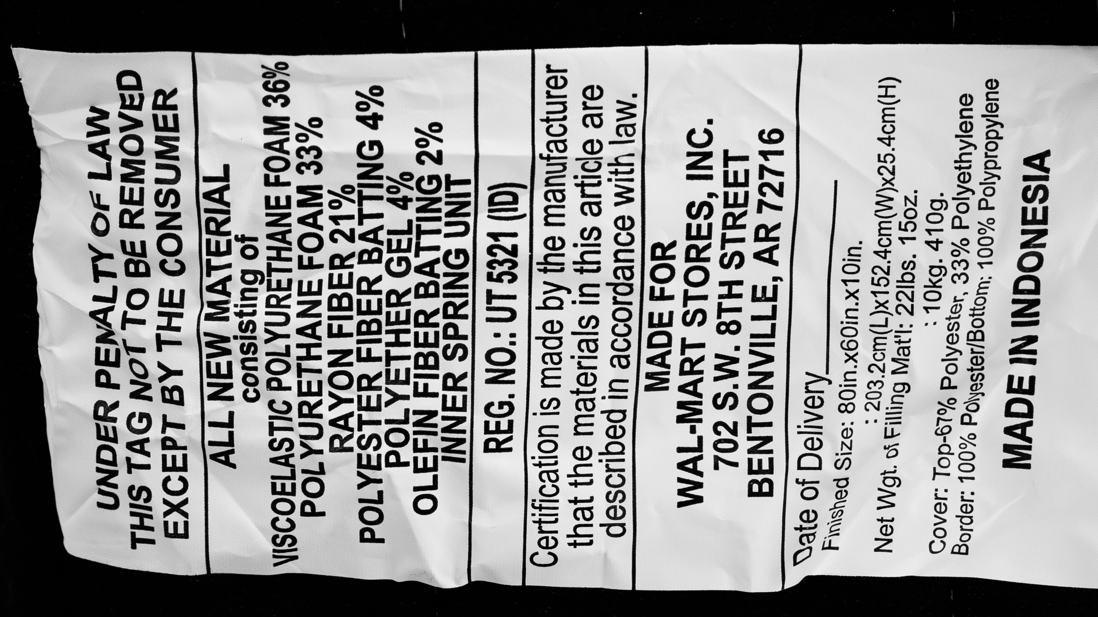 The Allswell Hybrid comes in only one Medium-Firm variant and is available in standard sizes, including Twin, Twin XL, Full, Queen, King, and California King. Here's a picture of our unit's label.
