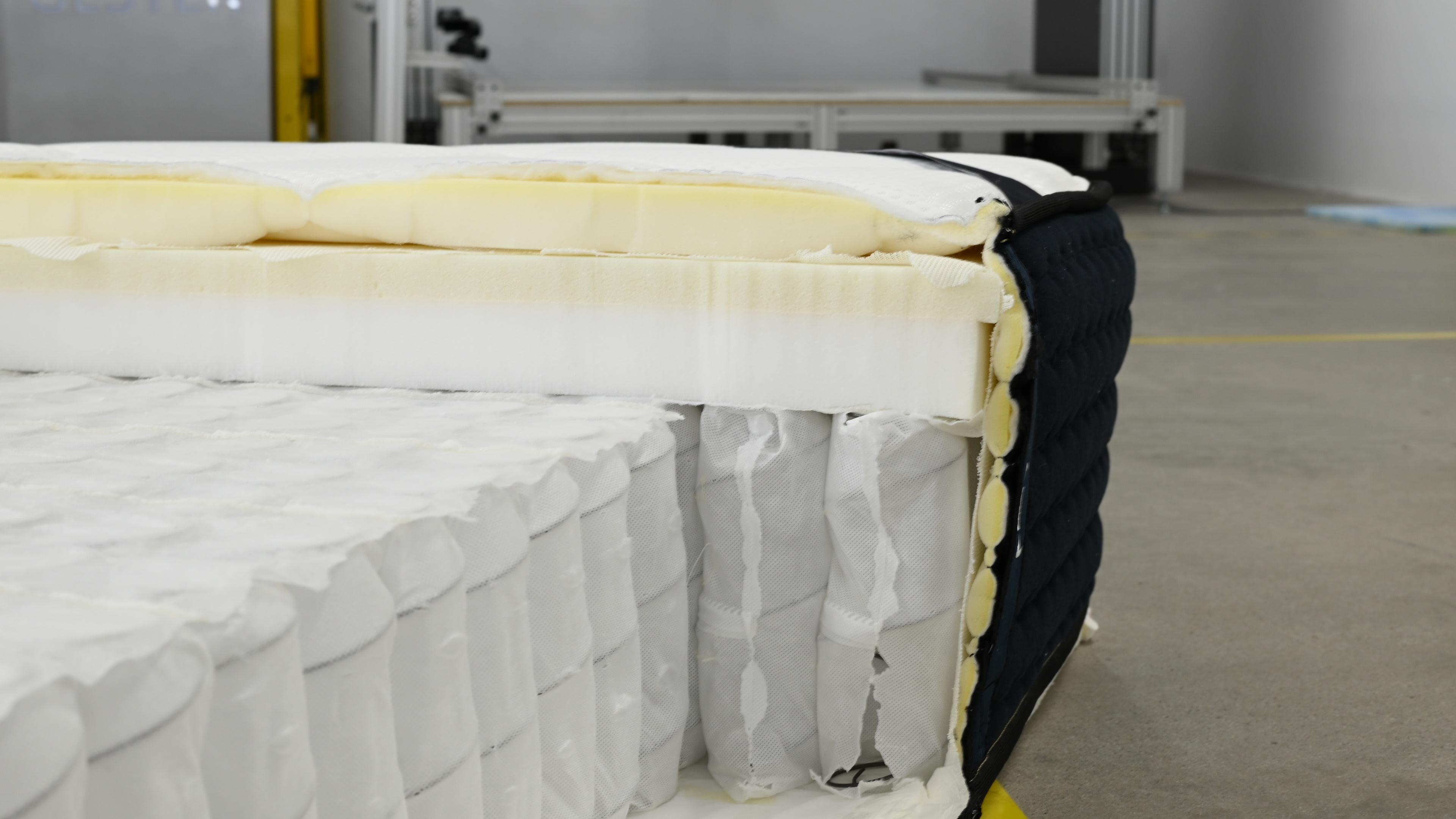 There's 4.5" (11.3 cm) of foam above the pocket springs. The quilted top includes a 1.5" (3.8 cm) layer of polyfoam, which helps give the mattress its high responsiveness. The next layer down is a 1" (2.5 cm) layer of memory foam, which adds a bit of contouring. Below that is a 2" (5 cm) transition layer of polyfoam, which makes the mattress a bit more bouncy and helps distribute weight for more even support.
