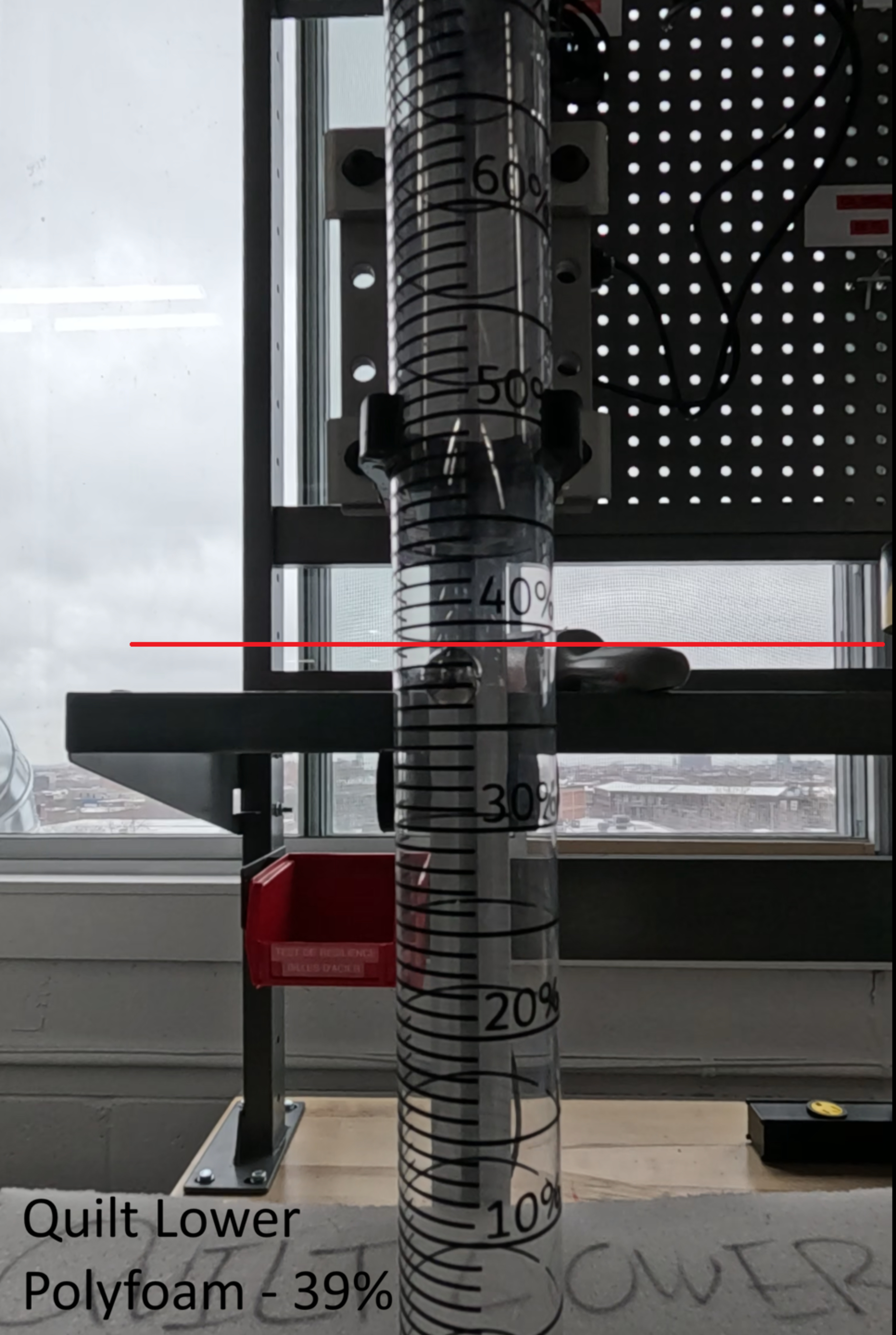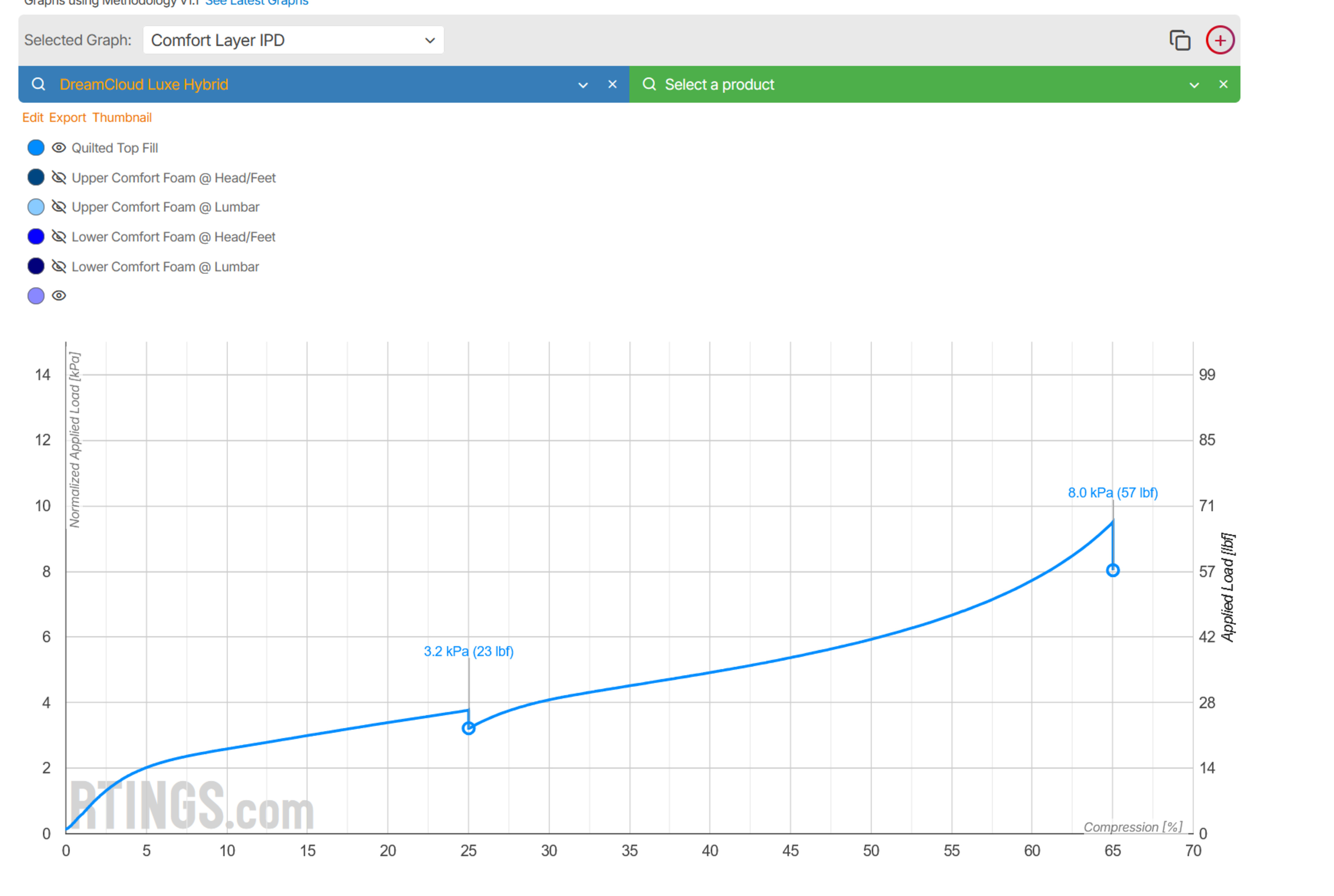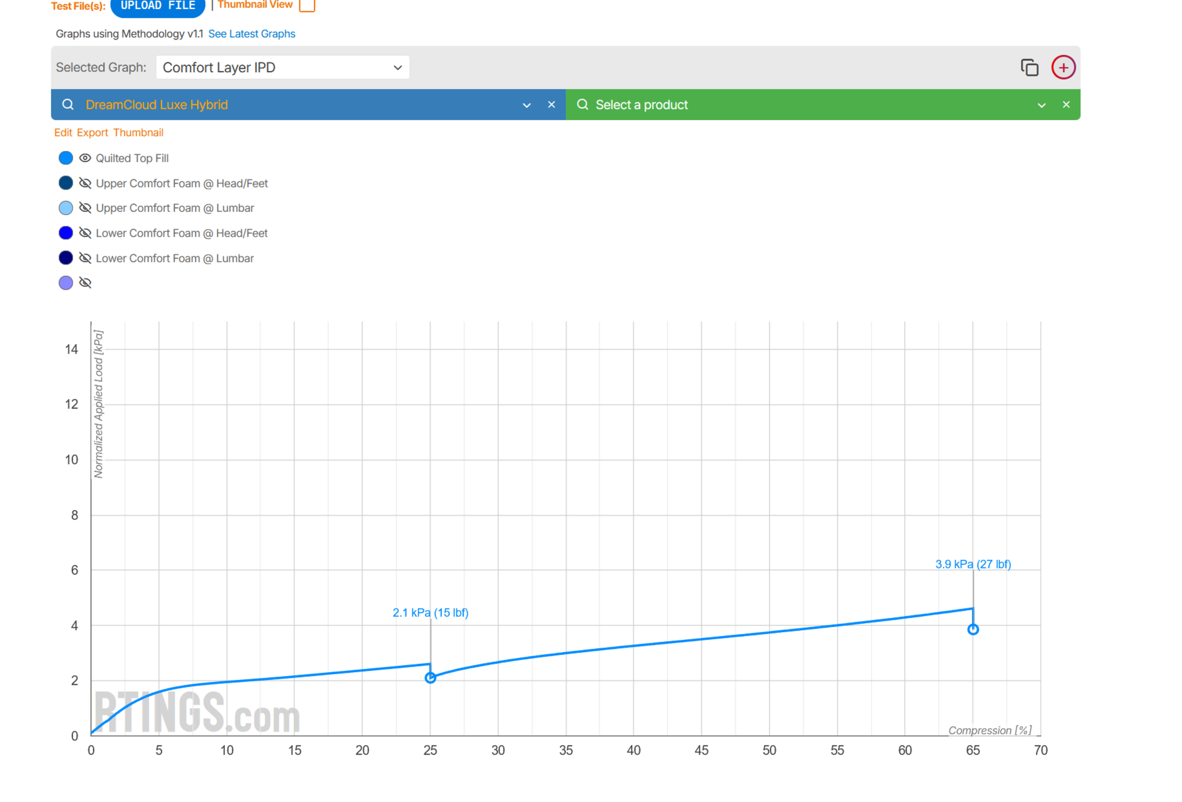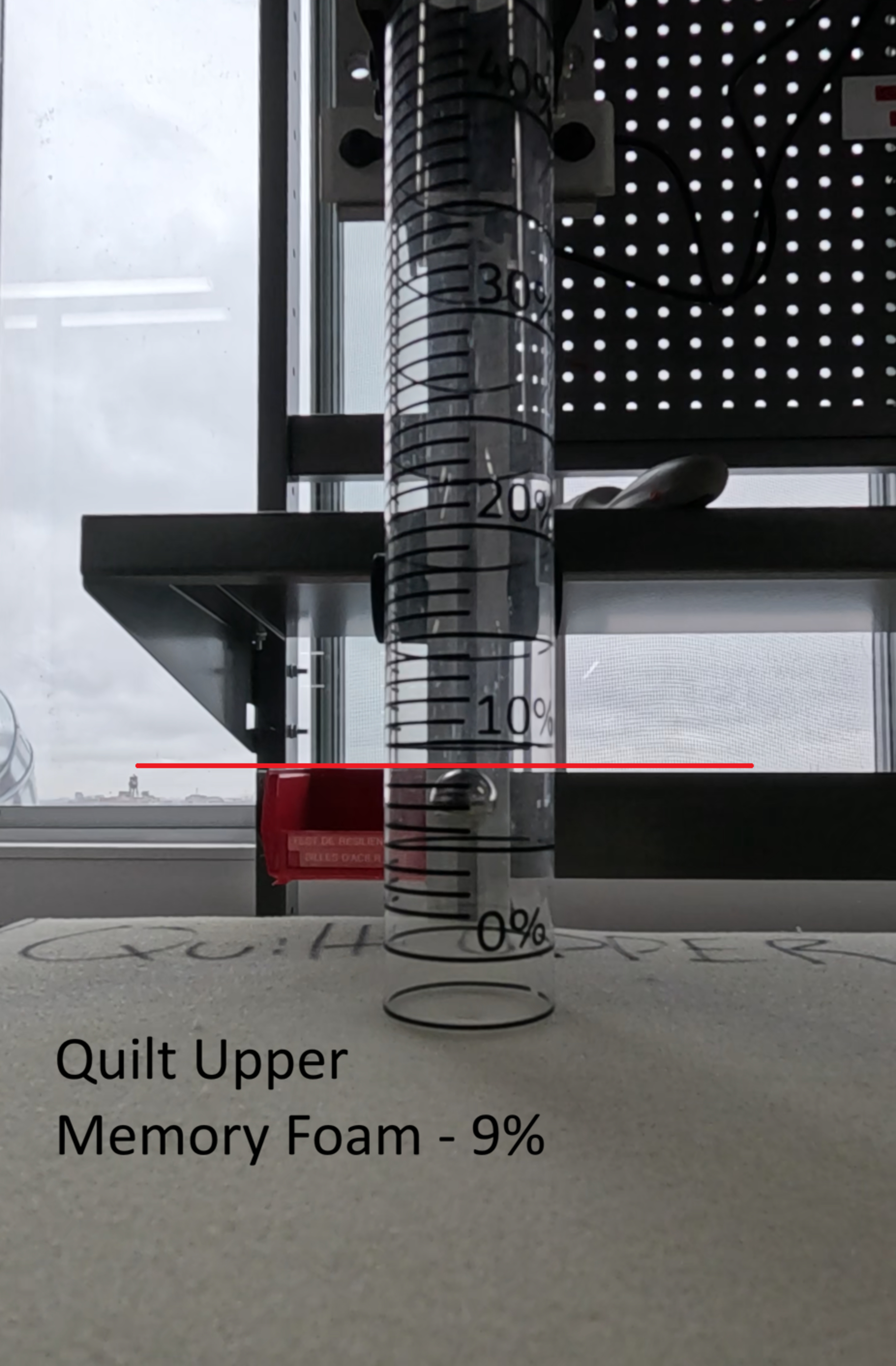 The quilted layer includes a layer of polyfoam and a layer of memory foam. The memory foam has medium firmness, and the polyfoam is medium-firm. Overall, it's slightly firm for a quilted layer, but the memory foam upper comfort layer below is significantly softer, allowing most people to sink into the mattress quite a bit. The transition layer is much firmer, so it'll help add support and distribute your weight over the springs. This is the advertised 'zoned support layer,' and while it doesn't use different foam for different zones, it's perforated at the head and foot. Holes in a foam layer can create a softer feel, but we didn't measure a significant difference between the firmness at the head/foot and lumbar.