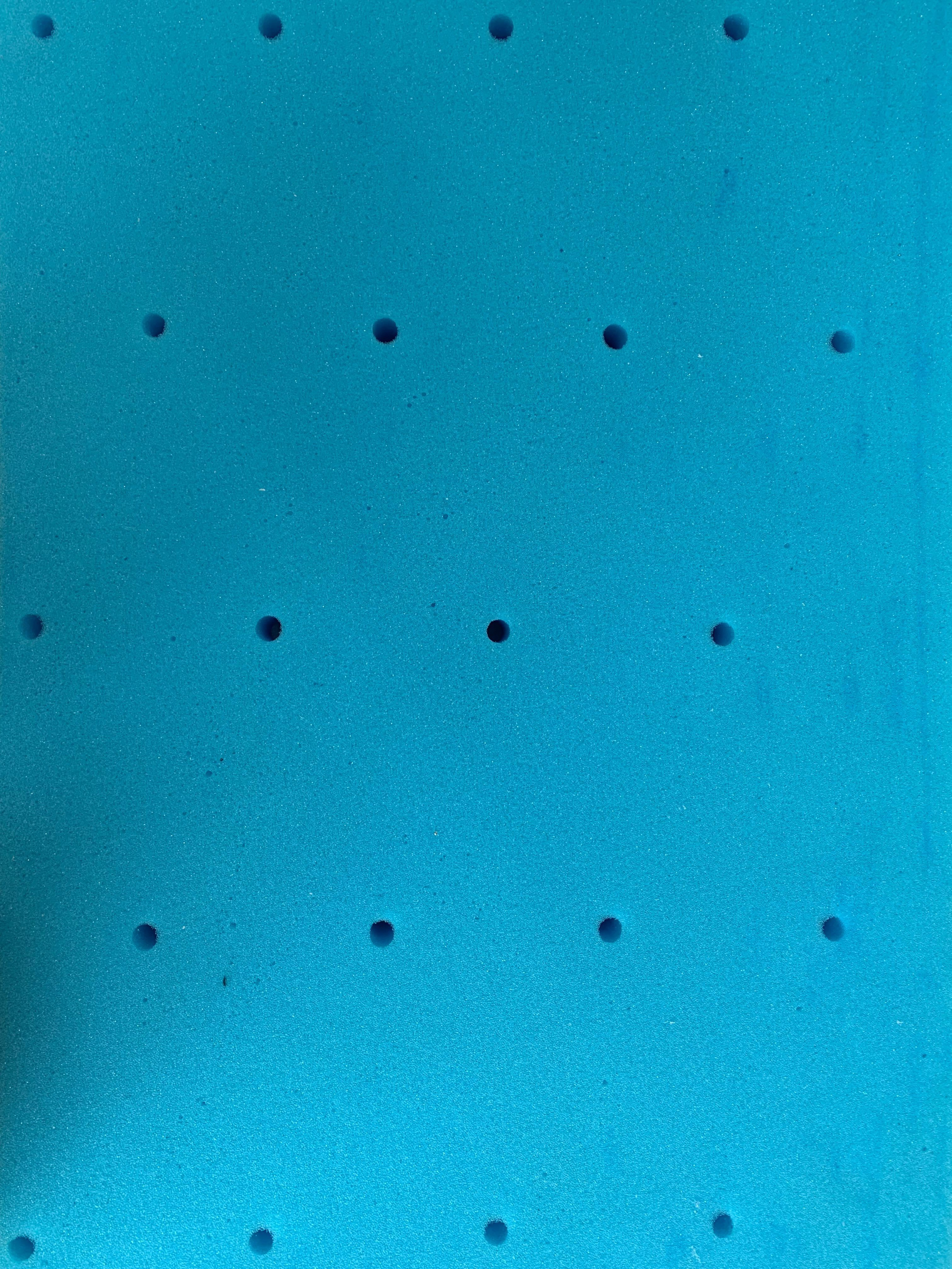 The mattress's quilted top includes a thin layer of fiber fill, a memory foam layer, and a polyfoam layer. The less bouncy memory foam means it's only slightly springy. The upper comfort layer is also made of memory foam with a contouring, unbouncy feel. The manufacturer advertises a 'Dynamic Temperature Control Layer,' which isn't a separate layer, but seems to be a coating on the upper comfort layer that makes it feel cool to the touch. The last foam layer is a polyfoam transition layer. It's advertised as a 'zoned support layer,' and the foam is perforated at the head and foot. This is intended to give the layer a firmer feel in the lumbar area, but it doesn't have a noticeable effect on the mattress's overall firmness.