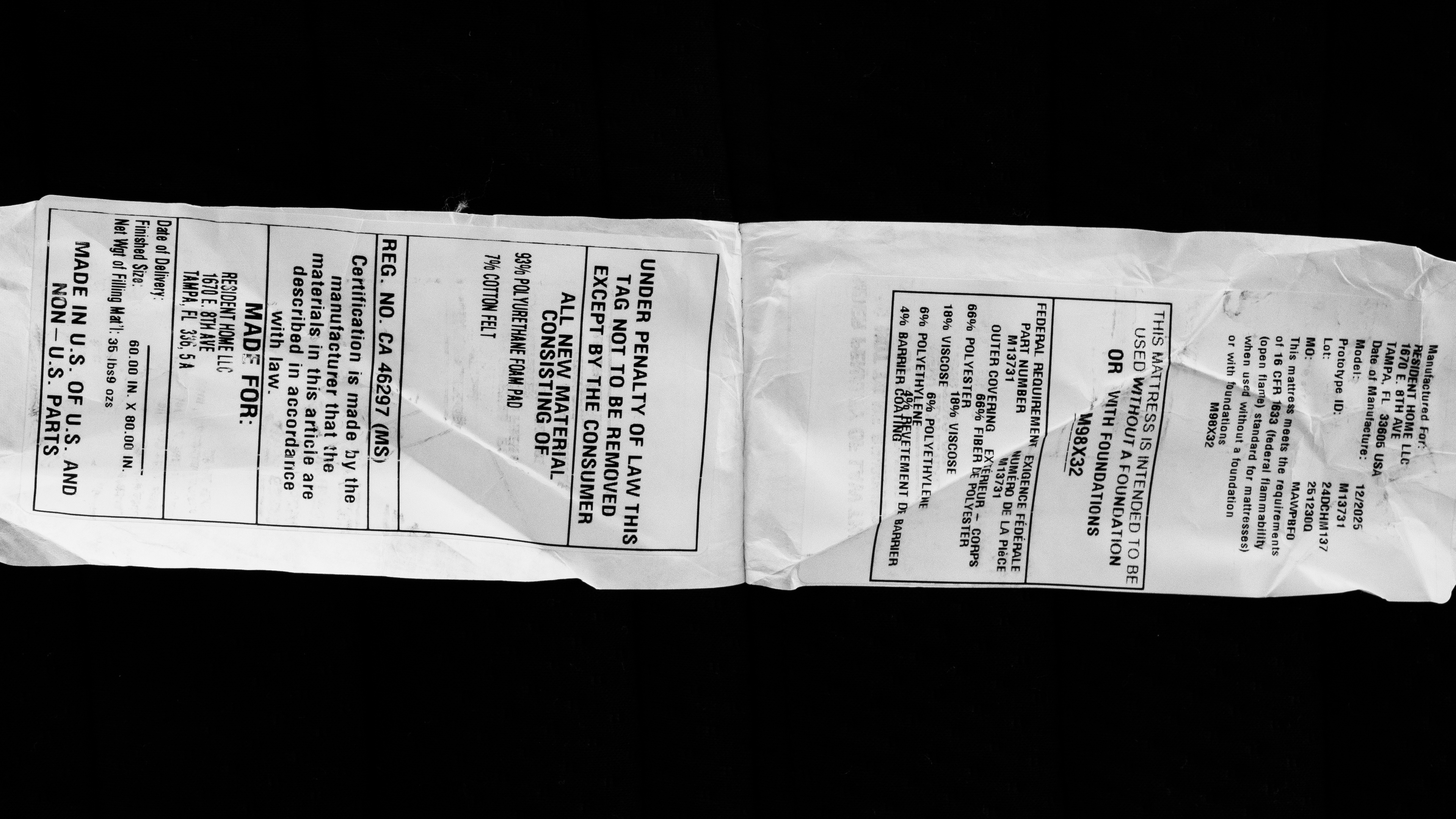 The DreamCloud Luxe Hybrid comes in standard sizes, including Twin, Twin XL, Full, Queen, King, California King, and Split King. We tested a Queen-size mattress, and you can see our unit's label.