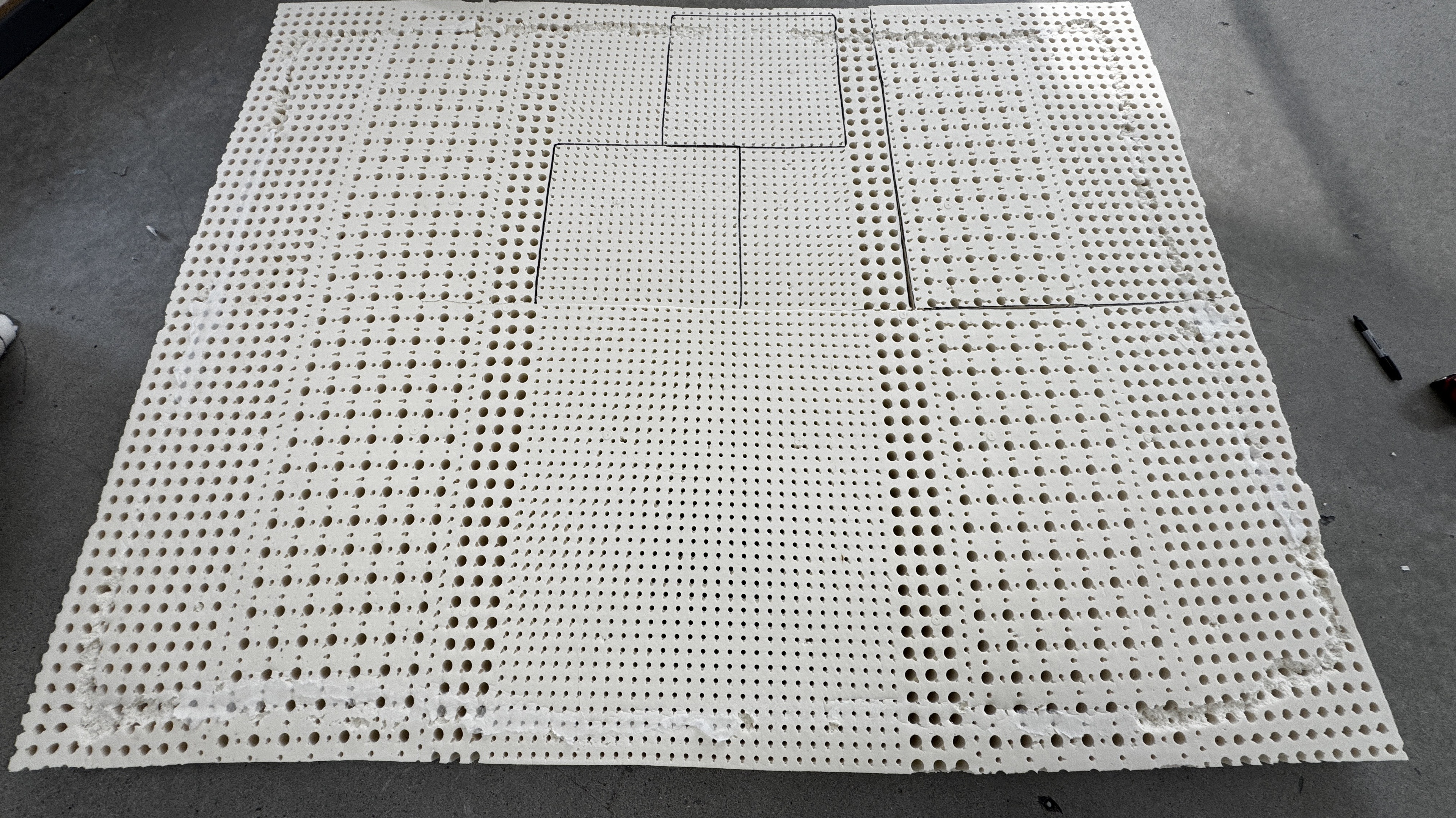 We couldn't test the quilted top because it's made of wool fill and not foam, but it's soft. You'll likely fully compress the wool layer and feel the firmer latex below. The latex layer is slightly firmer in the lumbar area because it has smaller holes in that area, which results in a firmer feel compared with the head/foot sections. Together with the firmer springs, this layer produces a firm mattress overall.