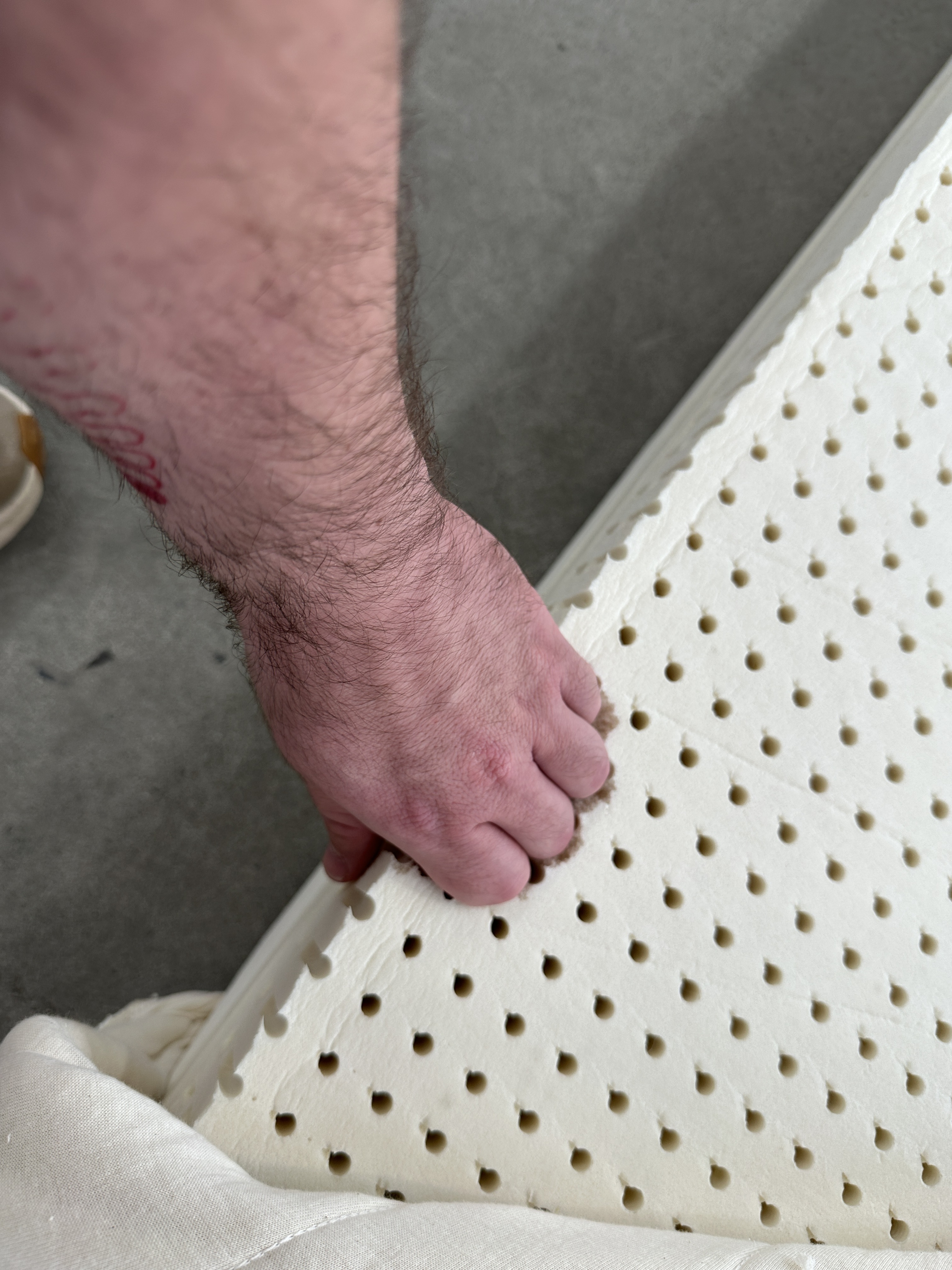 This mattress's layers are all made of dense, high-quality latex, which suggests the mattress will resist sagging or forming indentations for much longer compared to mattresses that use low-quality foams. The foam is denser and more durable than the latex layers found in some other mattresses, such as the Saatva Latex Hybrid, which includes a layer of good-quality, but not high-quality, latex.