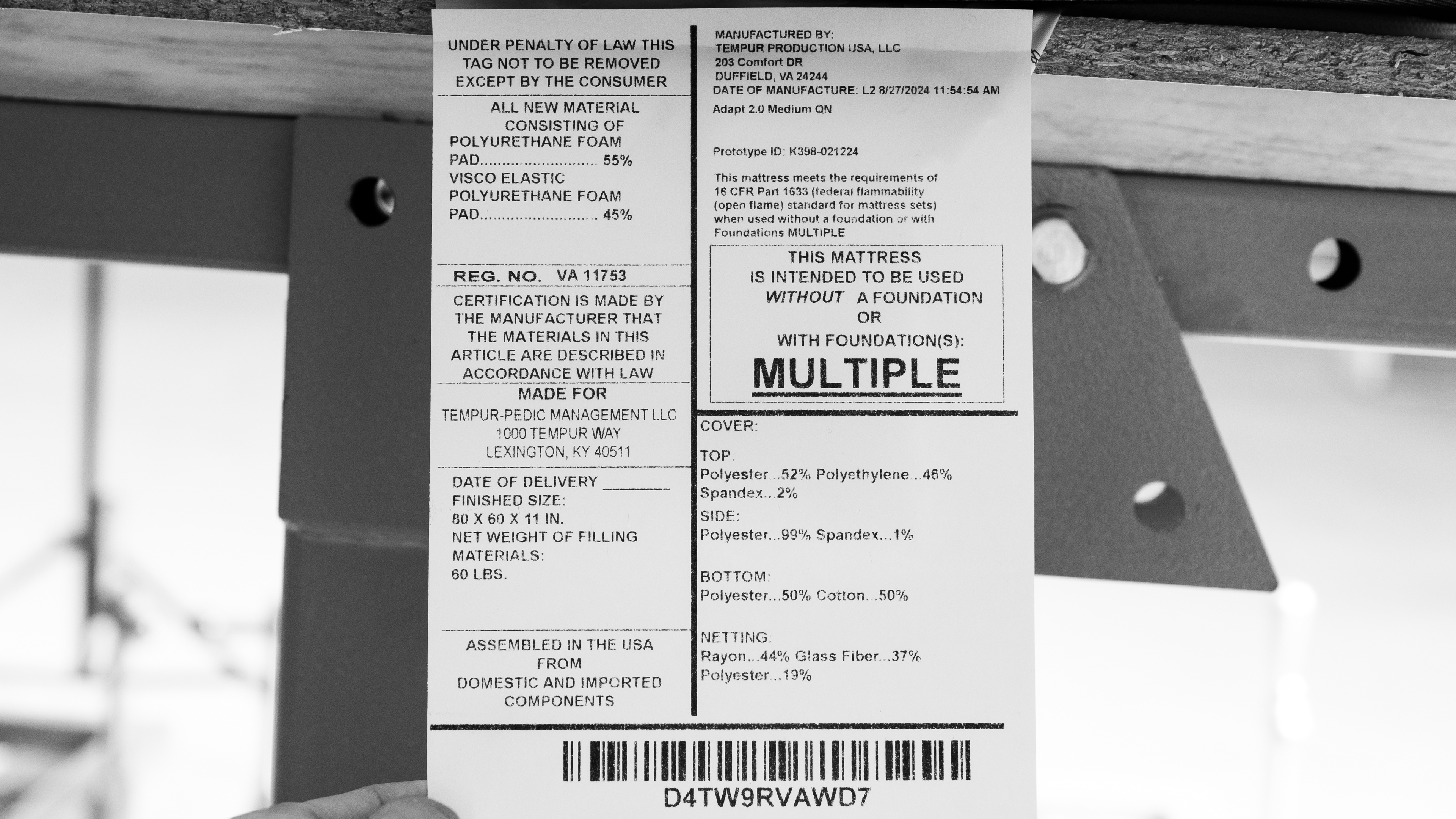 The Tempur-Pedic TEMPUR-Adapt comes in Twin, Twin Long, Full, Queen, King, Split King, California King, and Split California King size options. The manufacturer considers the all-foam model to have a 'Medium' firmness and sells a 'Medium-Firm' hybrid mattress with the same model name. We tested the all-foam model in the Queen size, and you can see a picture of the label. Our results are only valid for that variant, as others may perform differently.