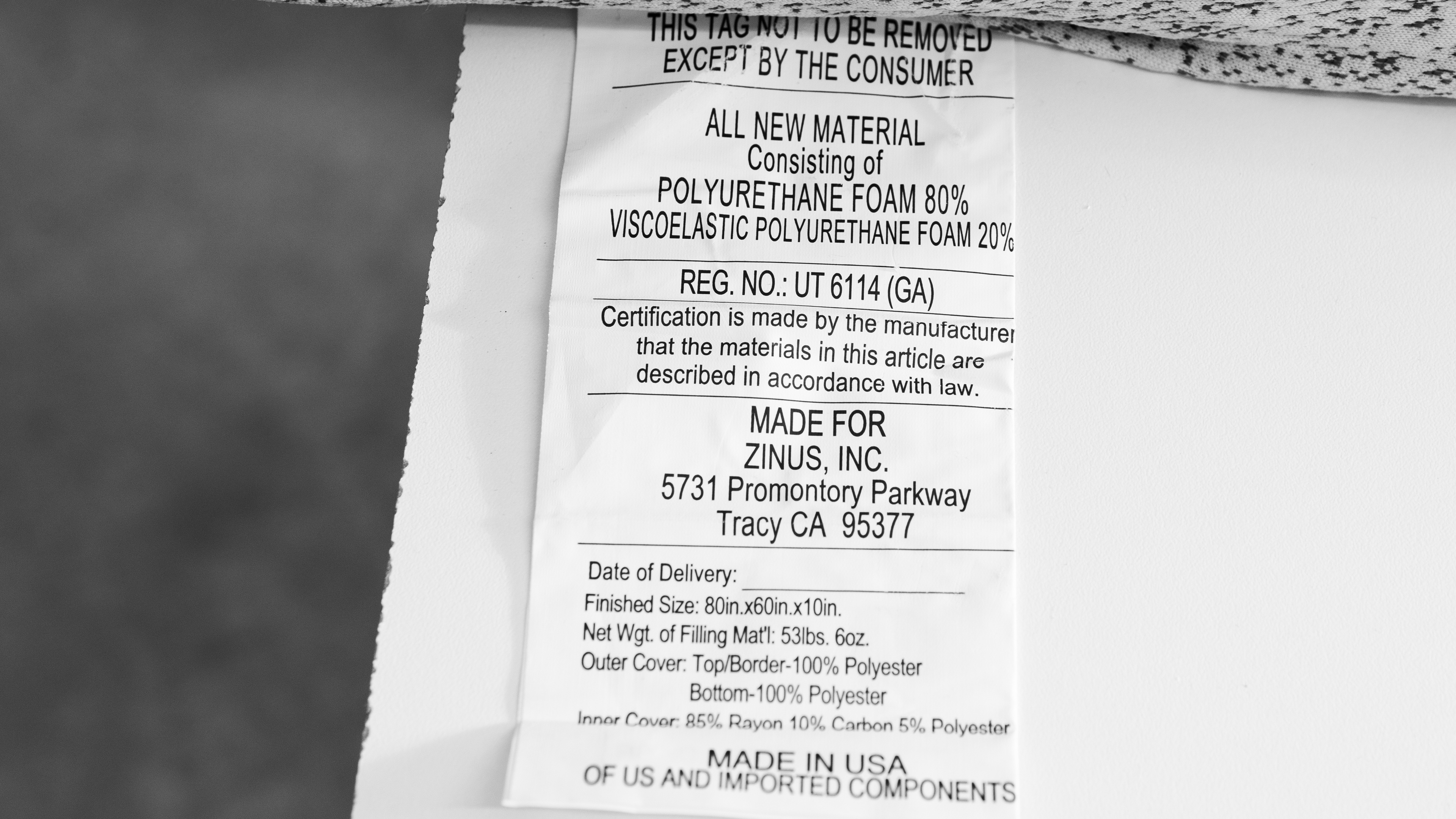 Our unit is a queen-sized 'Original Green Tea' mattress, and other sizes and variants may perform differently. Here's a picture of our unit's label.