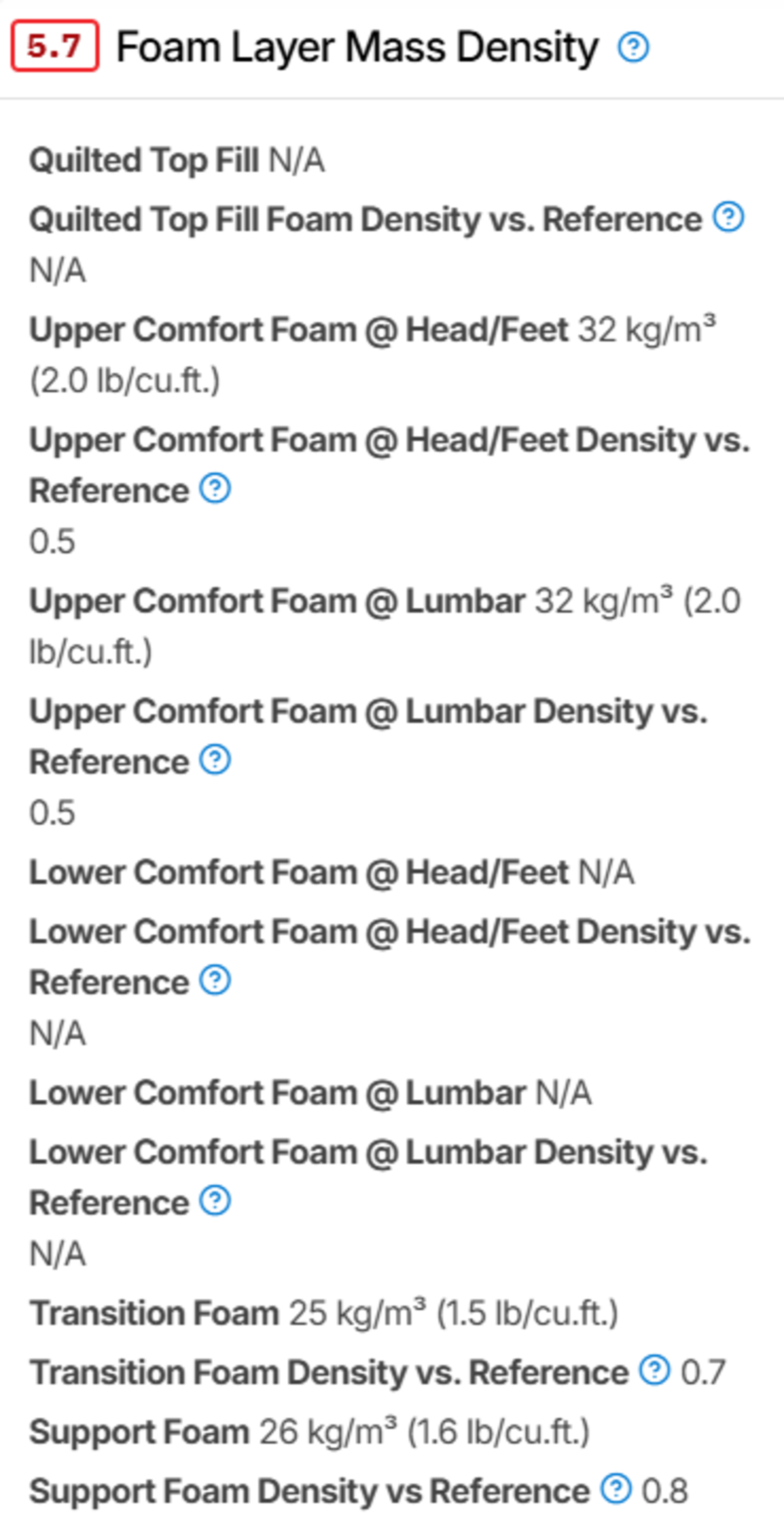 We already test the density of each foam layer in each mattress as part of our components testing. The score is now calculated by comparing the layer's foam density to a reference for good-quality polyfoam, memory foam, or latex: