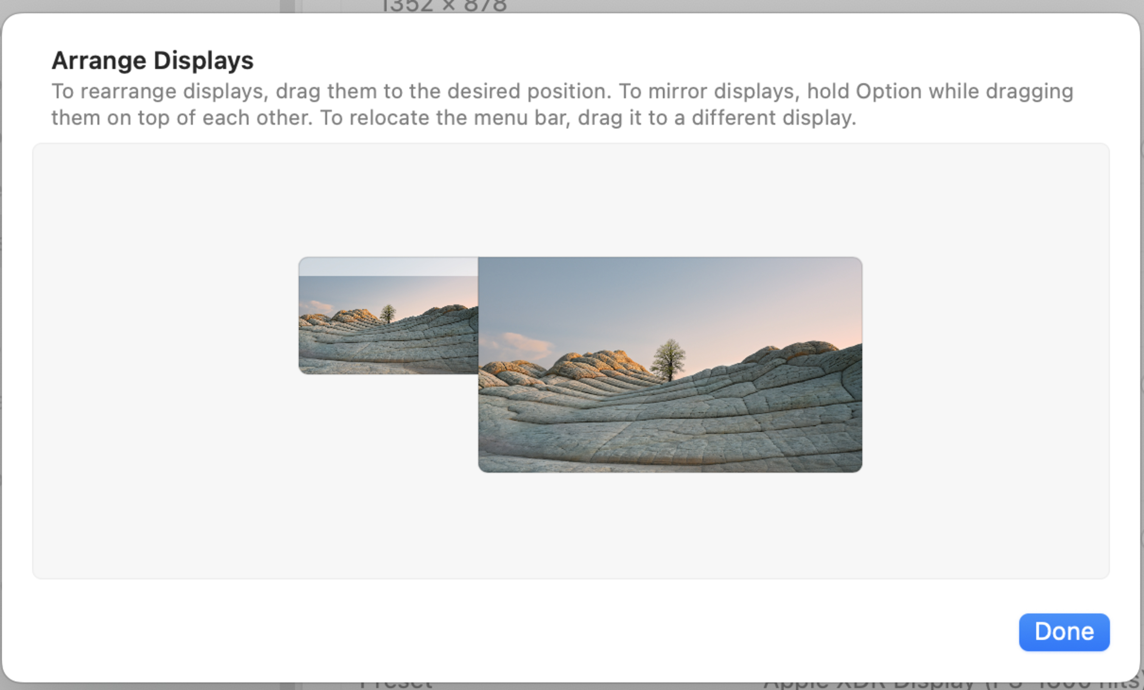 The process is similar with a Mac. In the Settings, you go to the Displays tab to change settings and configurations for each monitor. Similar to Windows, you can arrange the screens to reflect how they're set up so your mouse moves properly between them. Like on Windows, you can also select to have all the screens display their own thing or mirror one another.