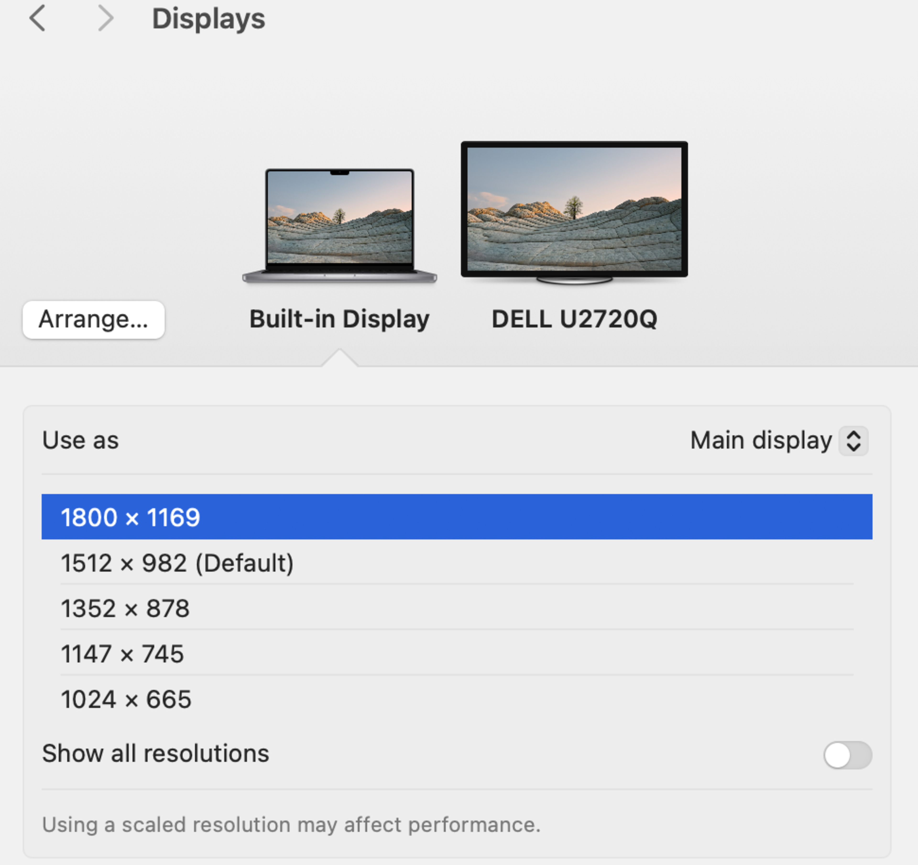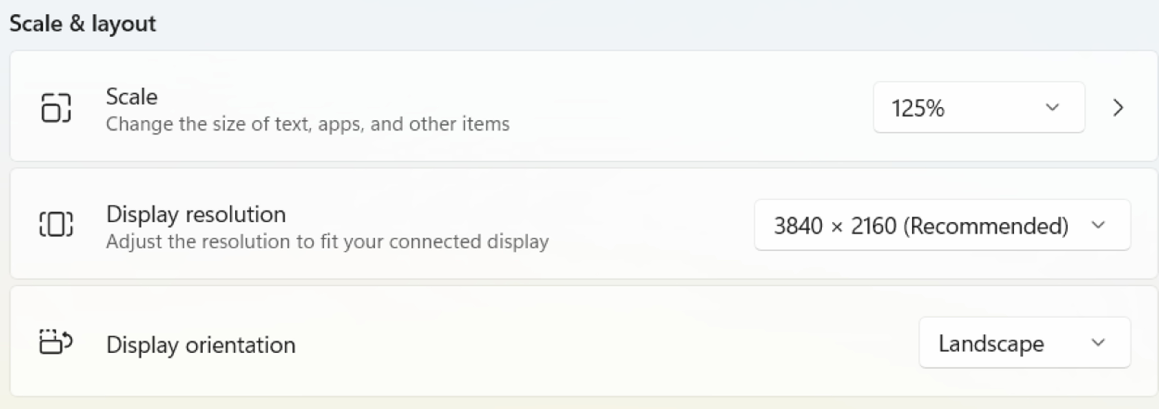 You can also change display settings directly from this page, like if you want to change the resolution, scaling, and orientation. Keep in mind that computers can display different resolutions on various displays, so you don't need to use the same resolution on multiple screens.